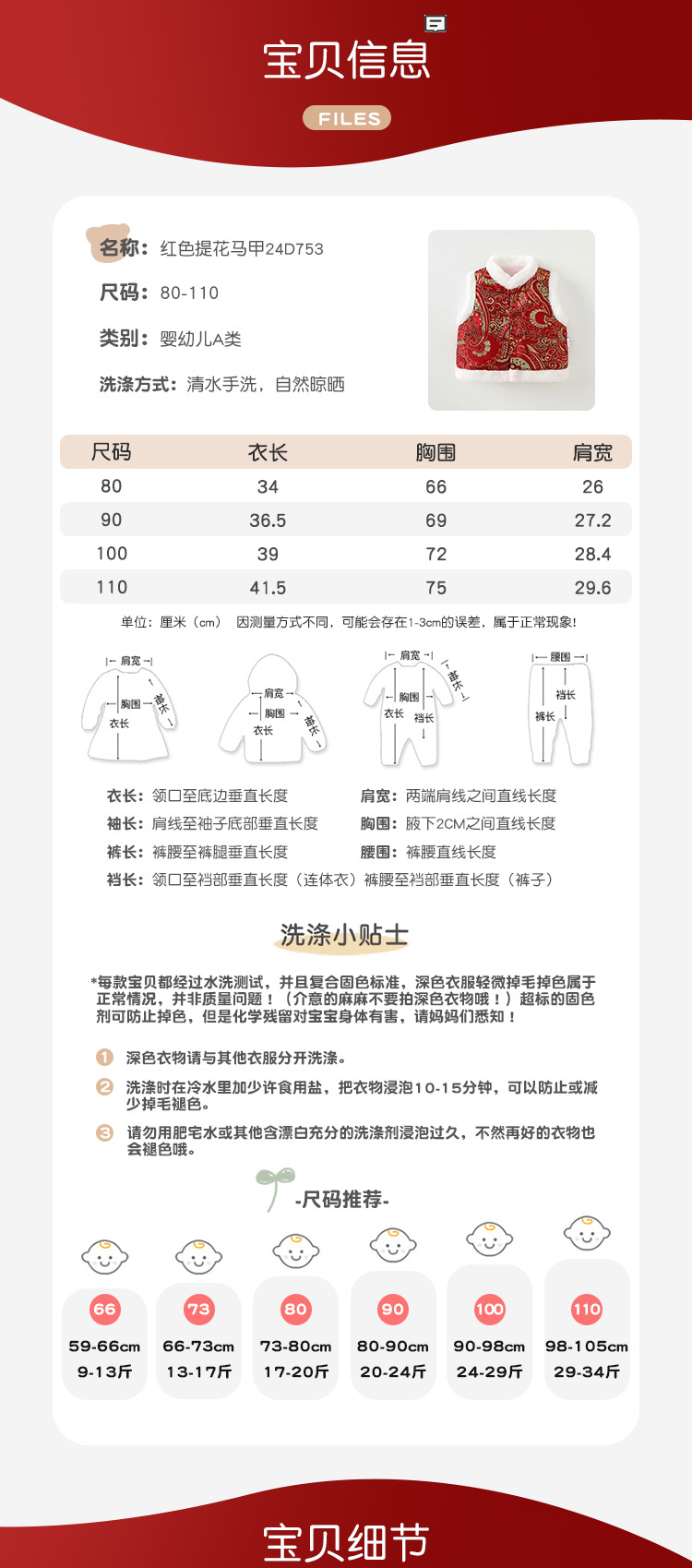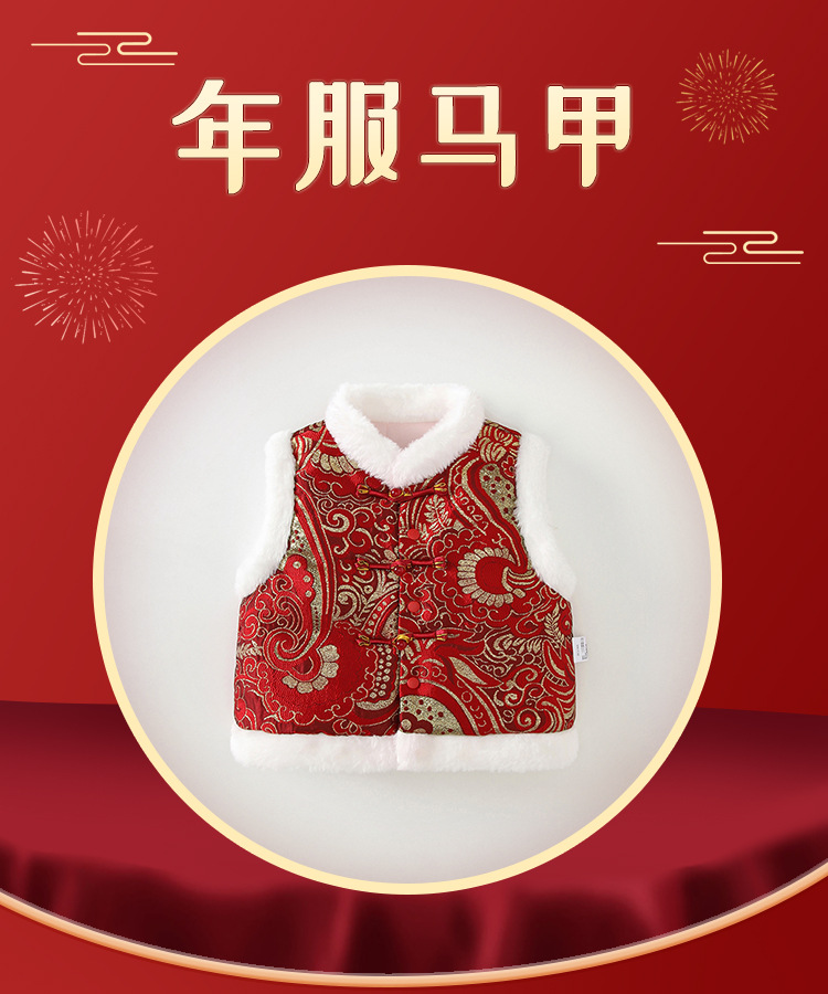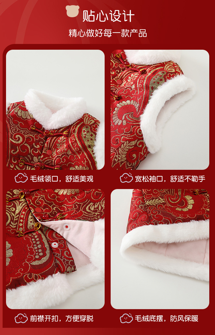 여자 조끼 겨울 어린이 면 패딩 두꺼운 조끼 붉은 축제 따뜻한 새해 코트 아기 조끼