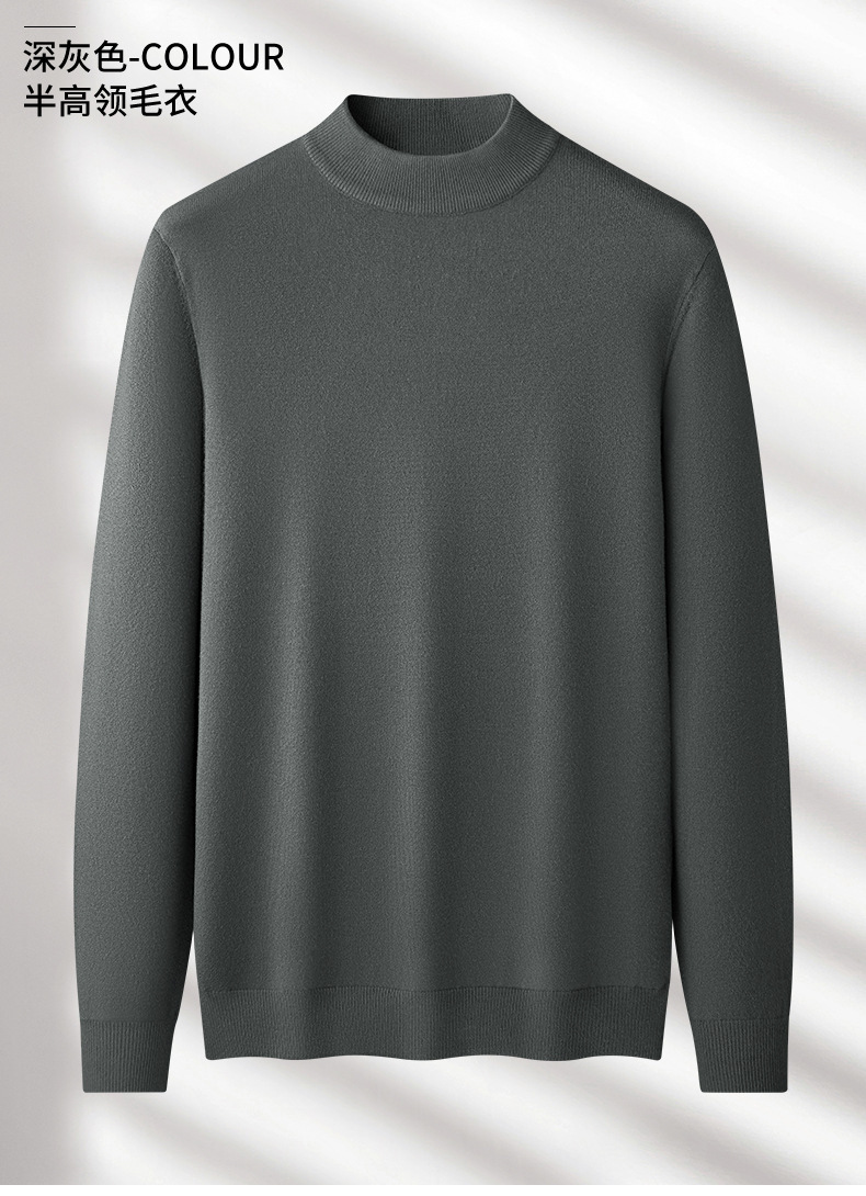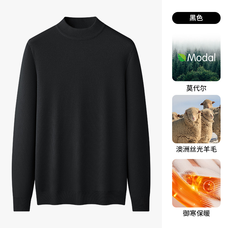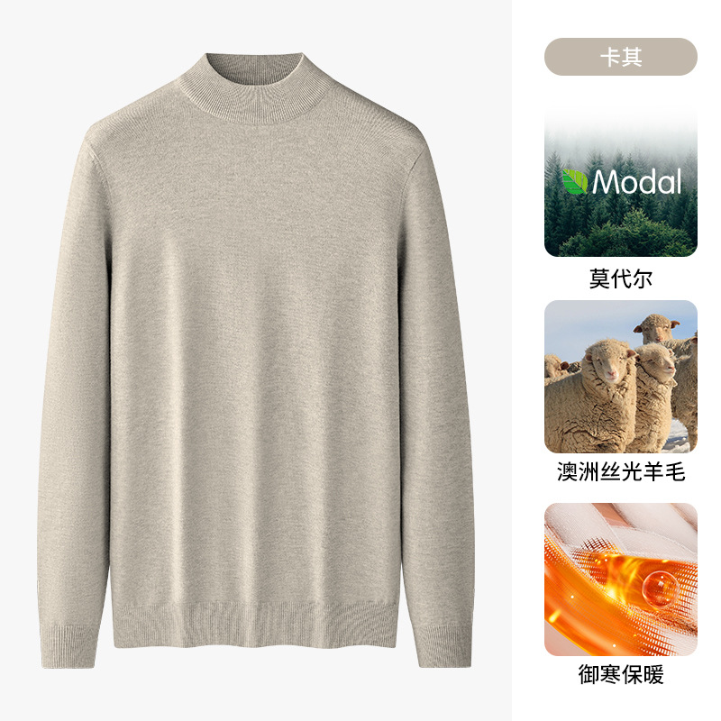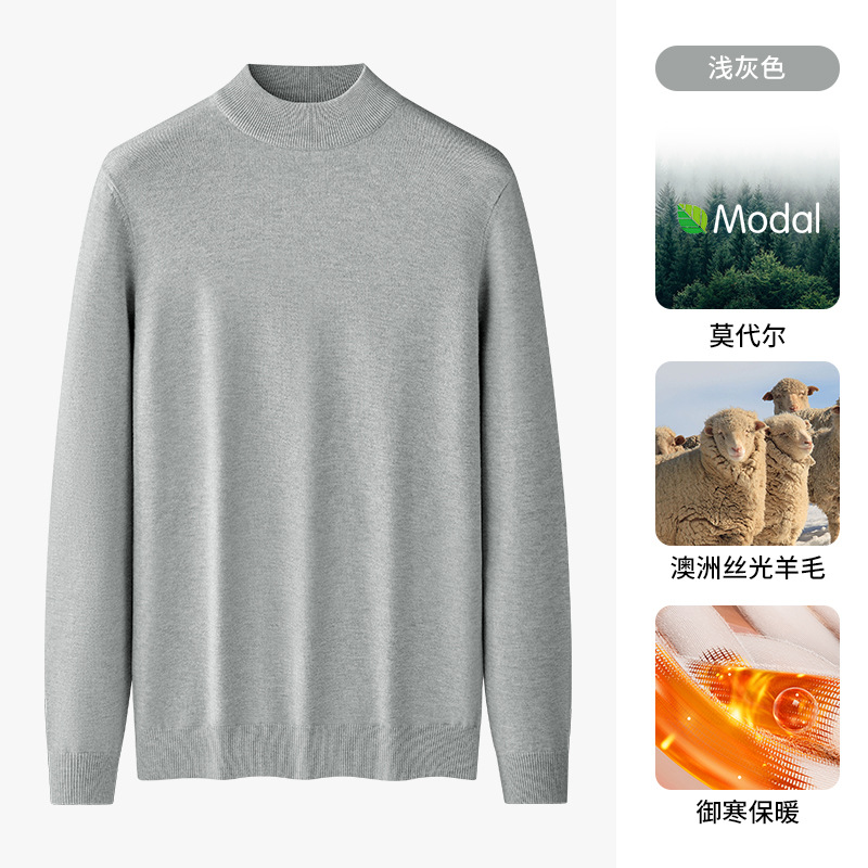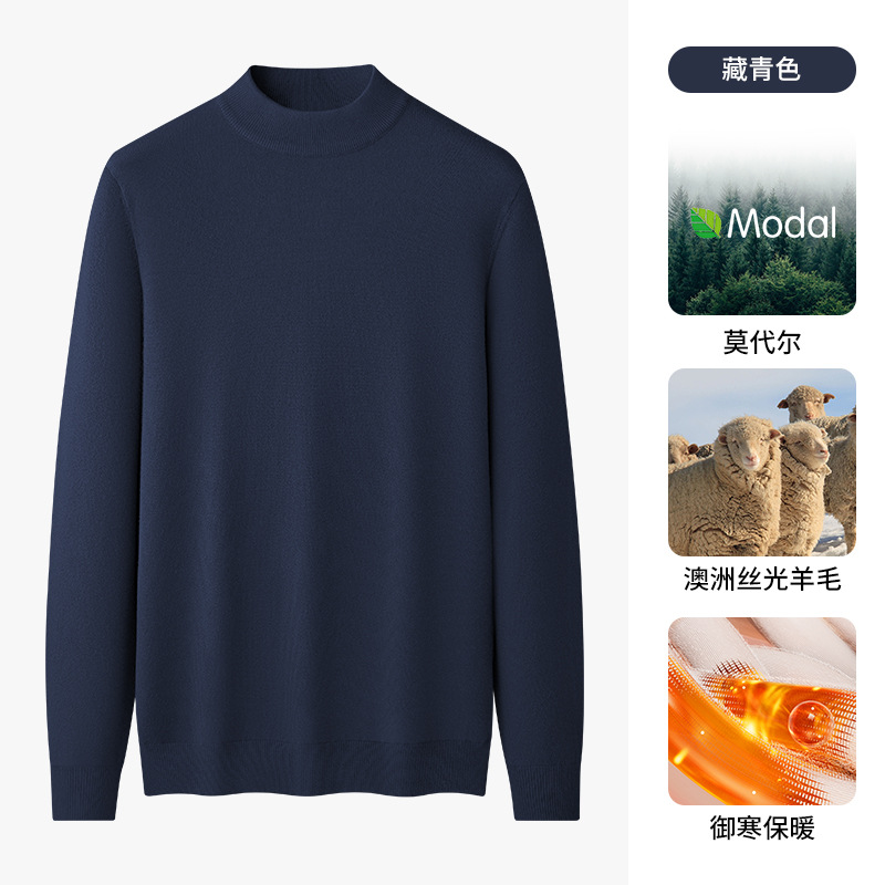 따뜻한 모달 양모 혼합 스웨터 하프 터틀넥 스웨터 남성베이스 셔츠 단색 미드 칼라 긴 소매 가을과 겨울스토어 가기