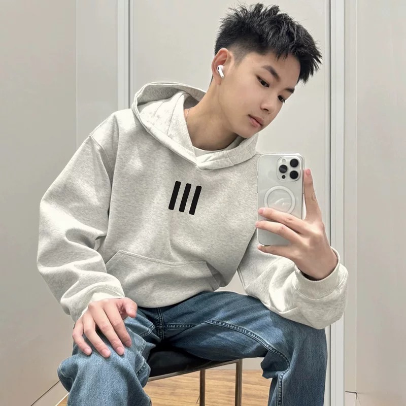 FOG CRAZY Main Line ESSENTIALS Joint Three Bar Hoodie Cotton 느슨한 커플 스웨터스토어 가기