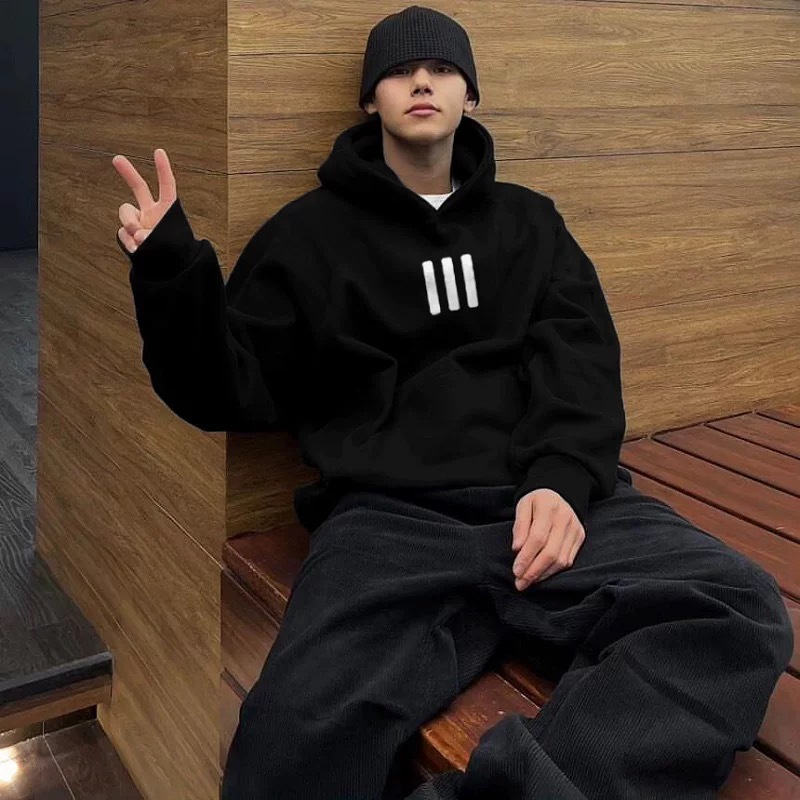 FOG CRAZY Main Line ESSENTIALS Joint Three Bar Hoodie Cotton 느슨한 커플 스웨터