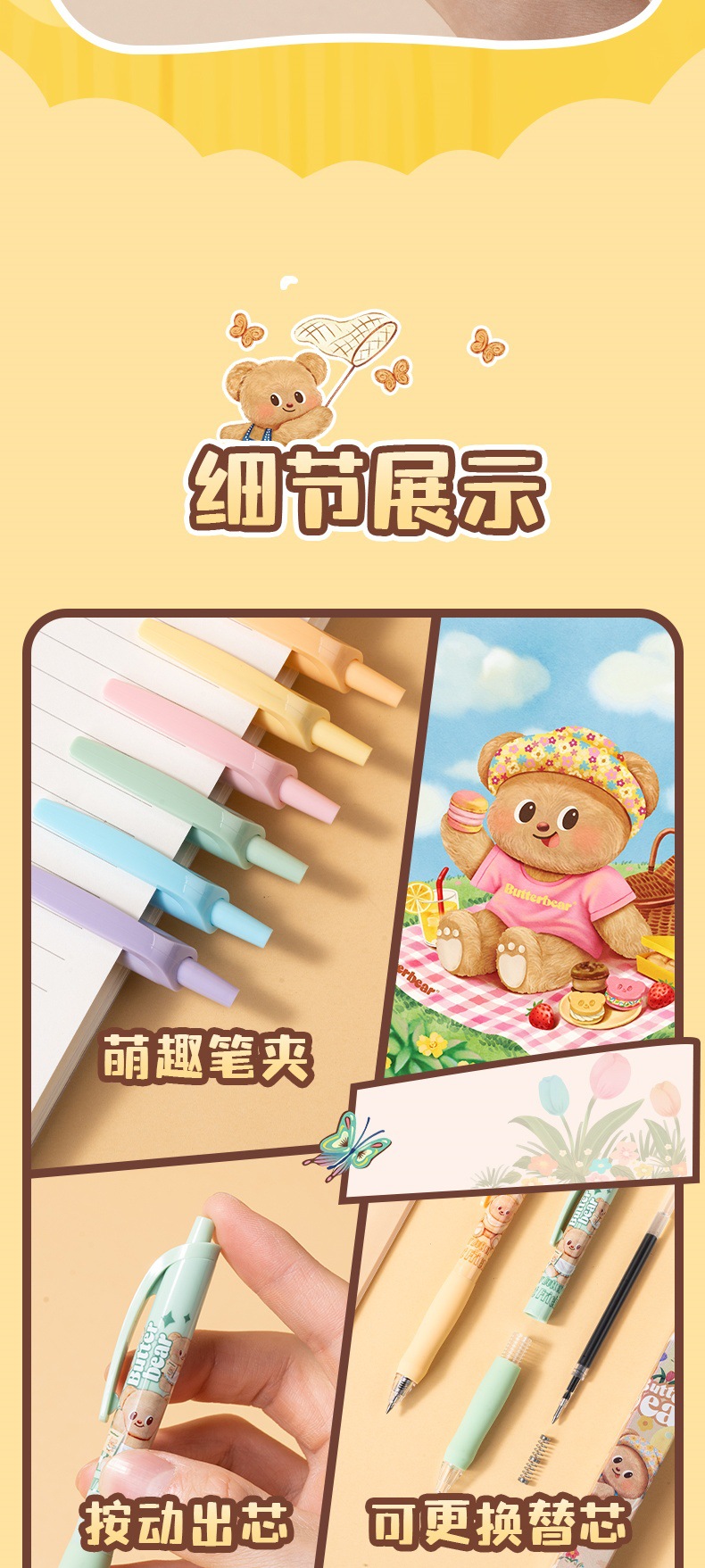 델리 HY003 버터 베어 젠 스무스 프레스 학생 블라인드 박스 젤 펜 퀵 드라이 프레스 0.5mm 총알