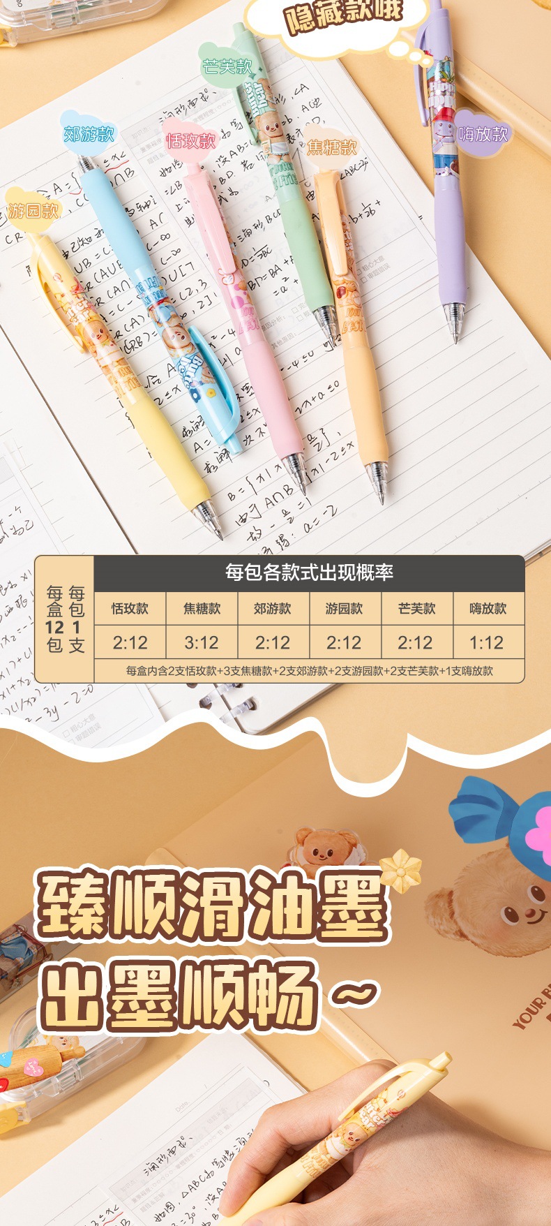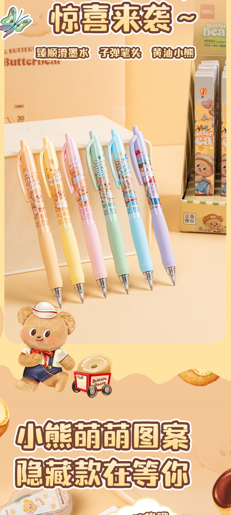 델리 HY003 버터 베어 젠 스무스 프레스 학생 블라인드 박스 젤 펜 퀵 드라이 프레스 0.5mm 총알스토어 가기
