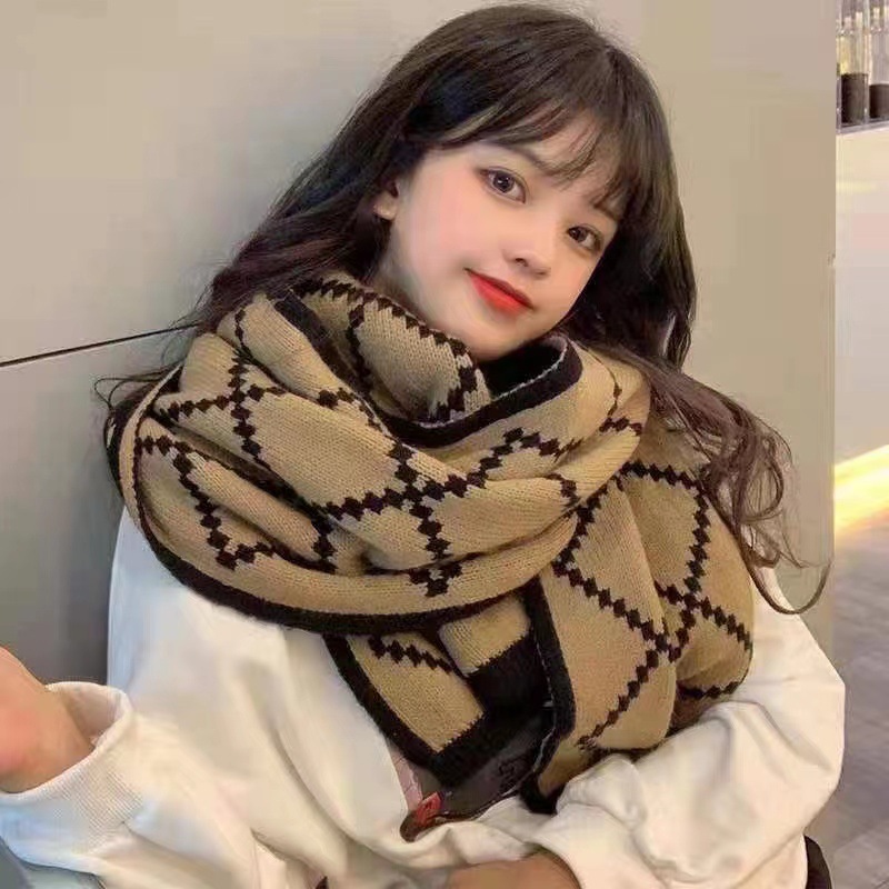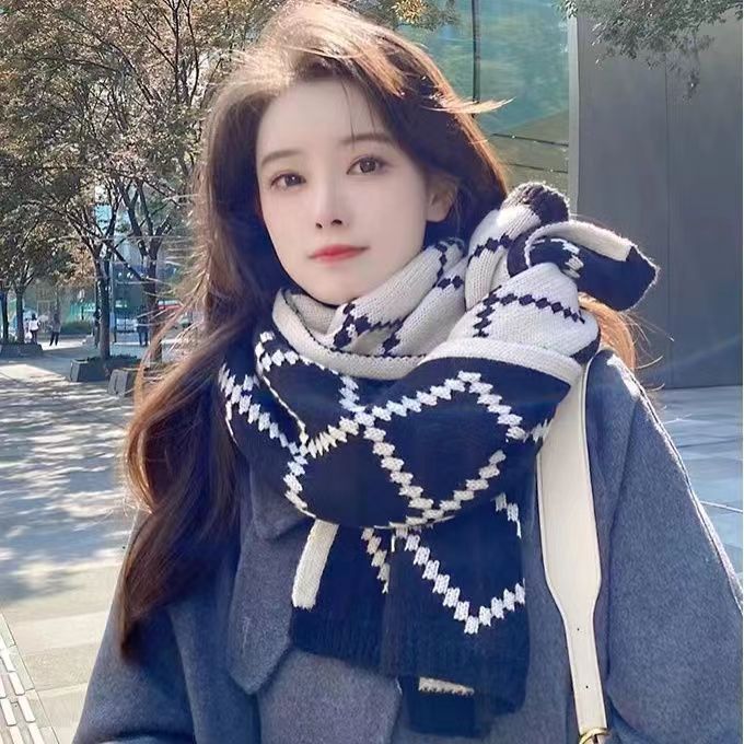 2023 다이아몬드 격자 무늬 스카프 여자 겨울 일본 스타일 복고풍 양면 양모 스카프 두꺼운 따뜻한 올매치 목도리