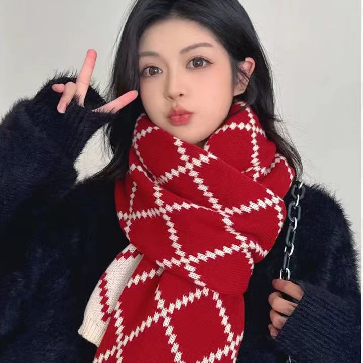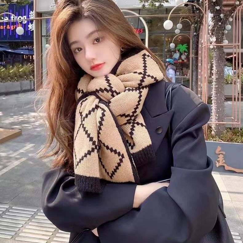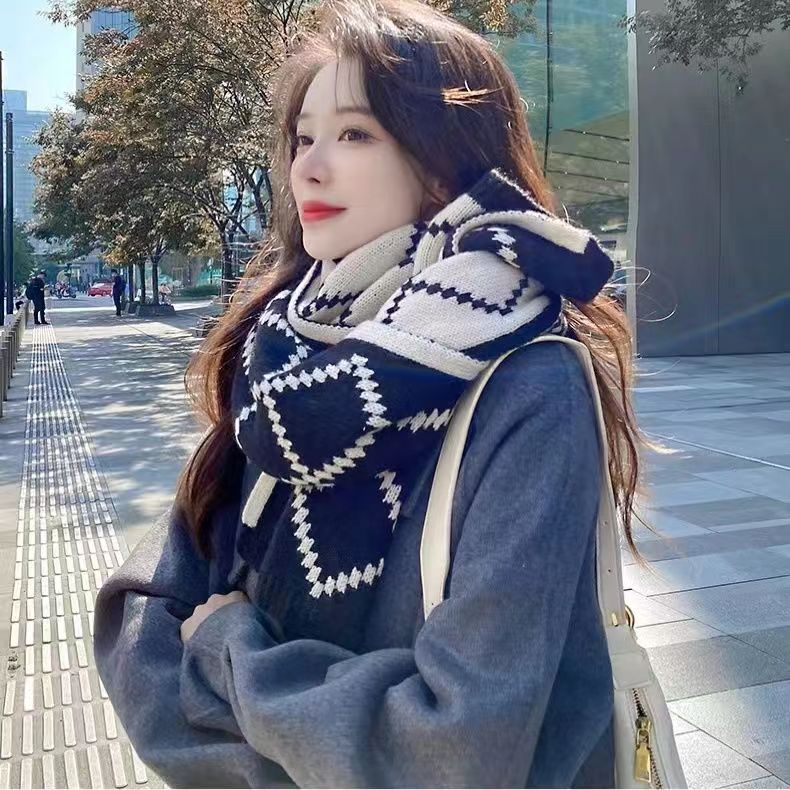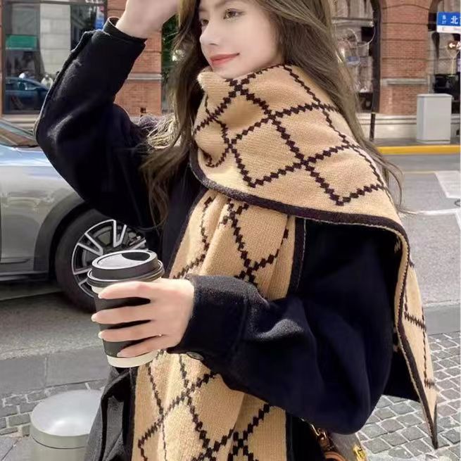 2023 다이아몬드 격자 무늬 스카프 여자 겨울 일본 스타일 복고풍 양면 양모 스카프 두꺼운 따뜻한 올매치 목도리스토어 가기