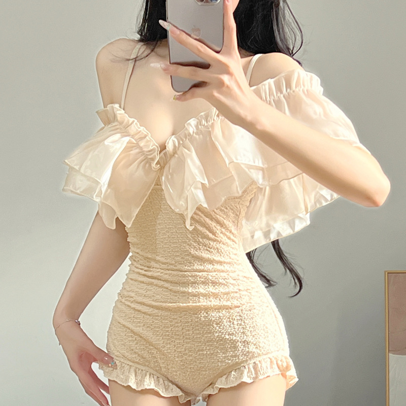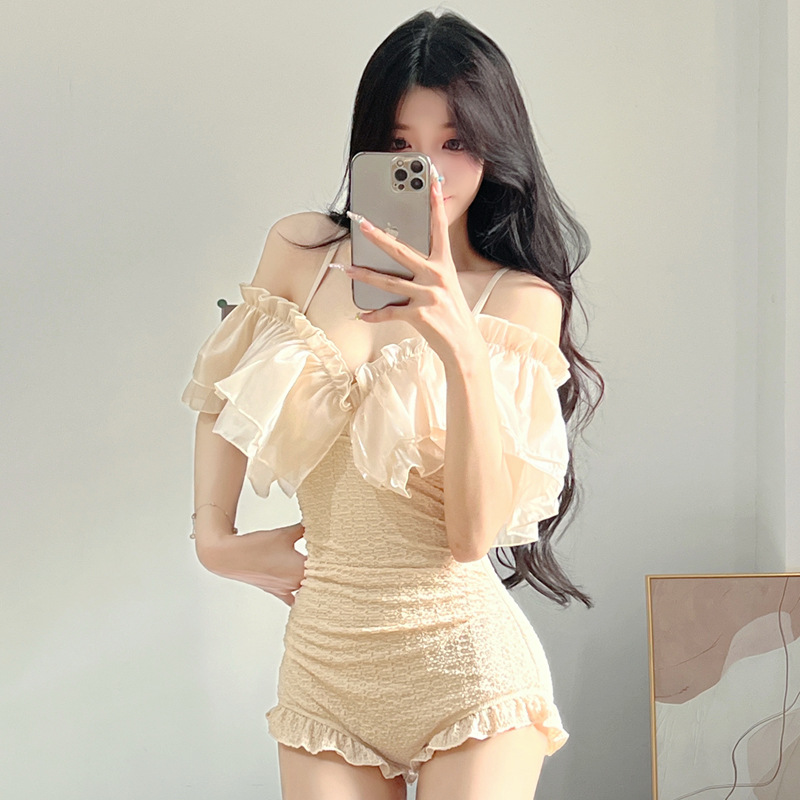 2024 새로운 소녀의 중공 수영복 여성의 작은 가슴 강철 브래킷, 보수적 인 육체 덮개 슬리밍 온천 수영복스토어 가기