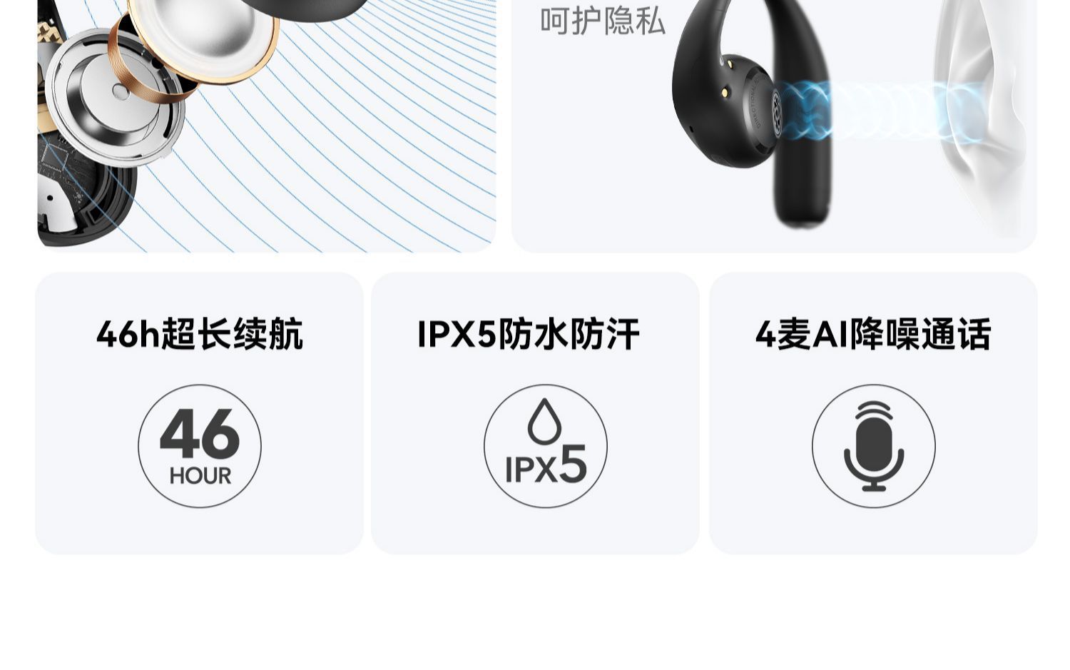 달리기 및 승차를위한 사운드 와이드 도약 라인 AeroFitPro 오픈 무선 블루투스 헤드셋