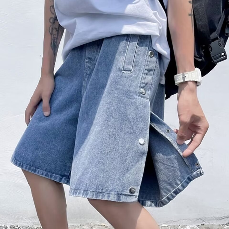 2024 남자 데님 반바지 스트레이트 한국 패션 여름 새로운 바지 조수 브랜드 5 점 바지 5 점 바지 도매스토어 가기