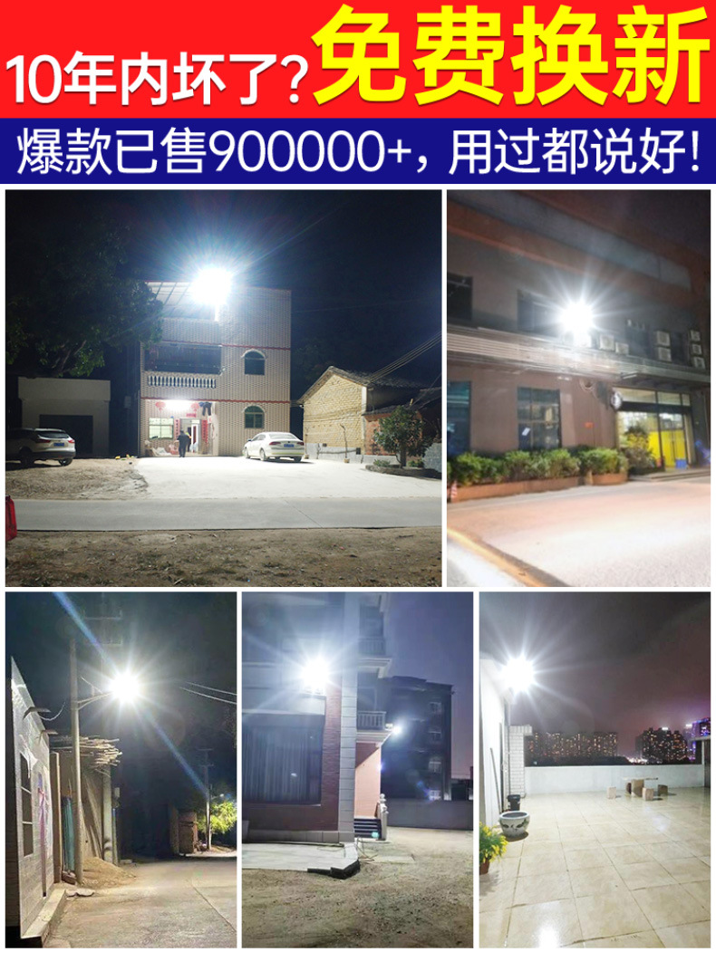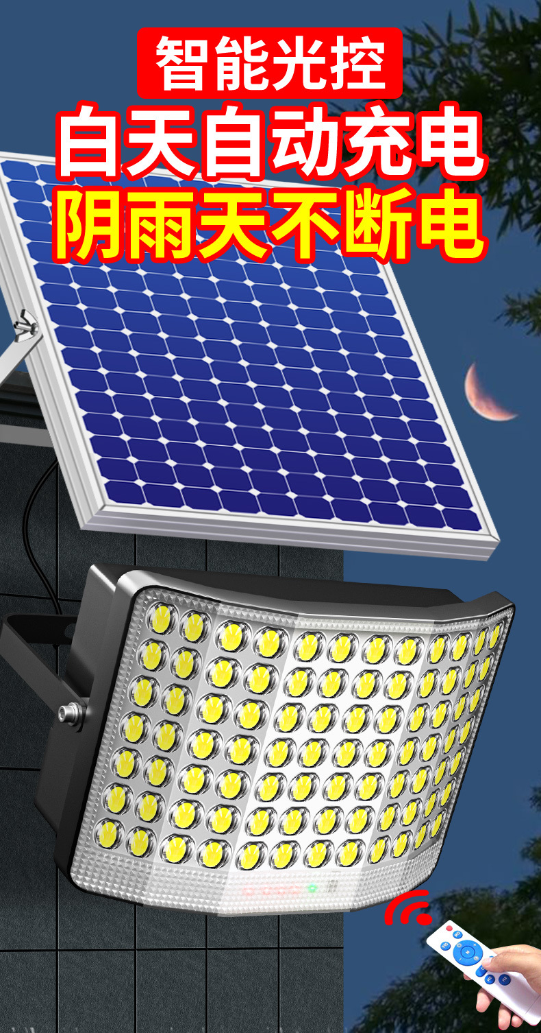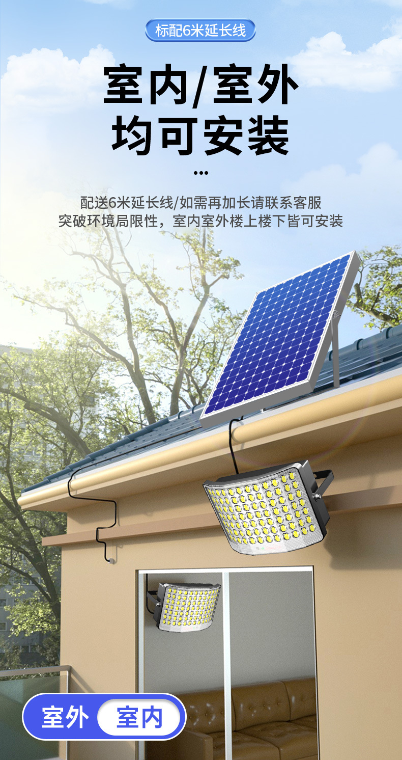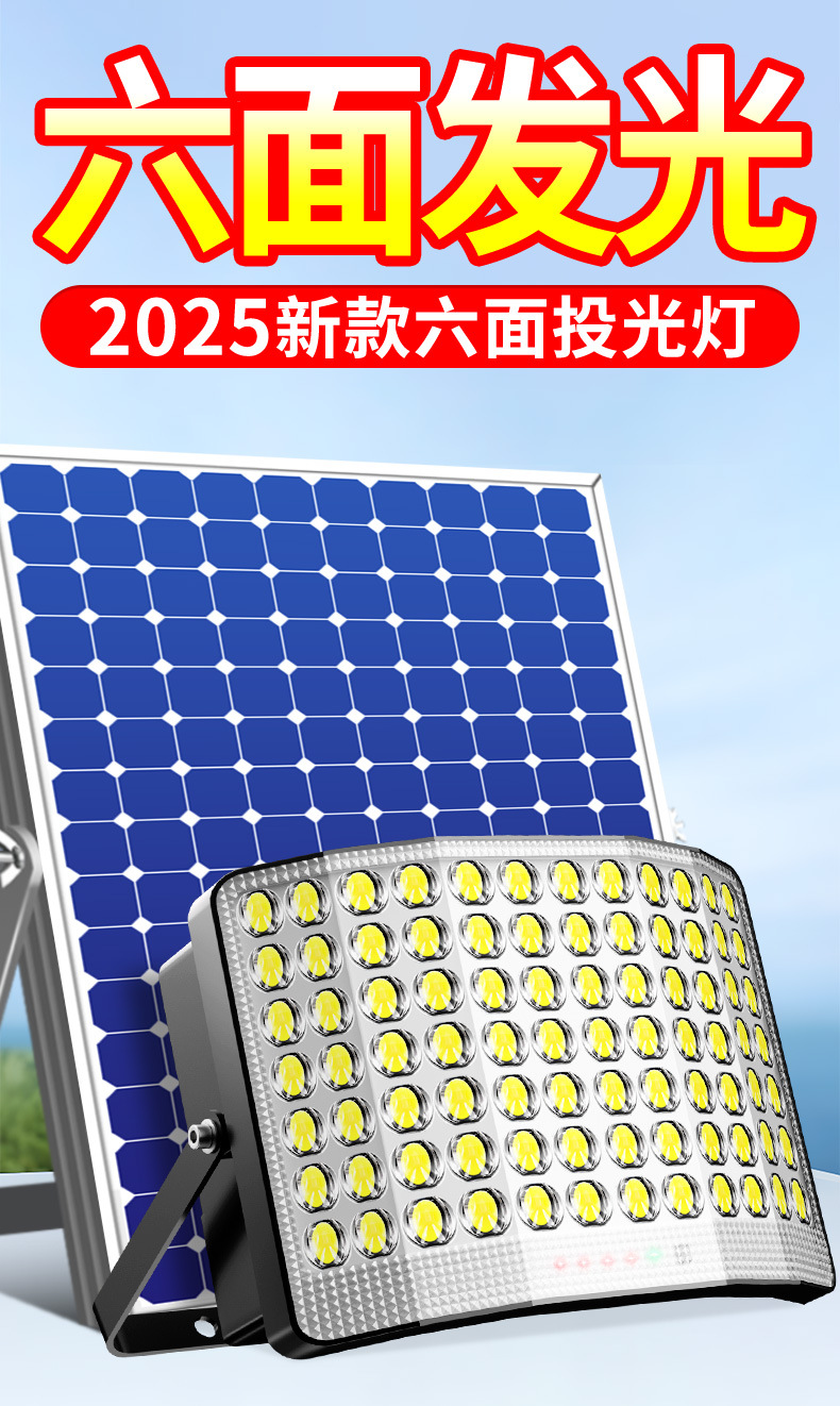 태양 광 야외 정원 조명 6 면 가정용 실내 방수 슈퍼 밝은 LED 새로운 2024 농촌 홍수 조명