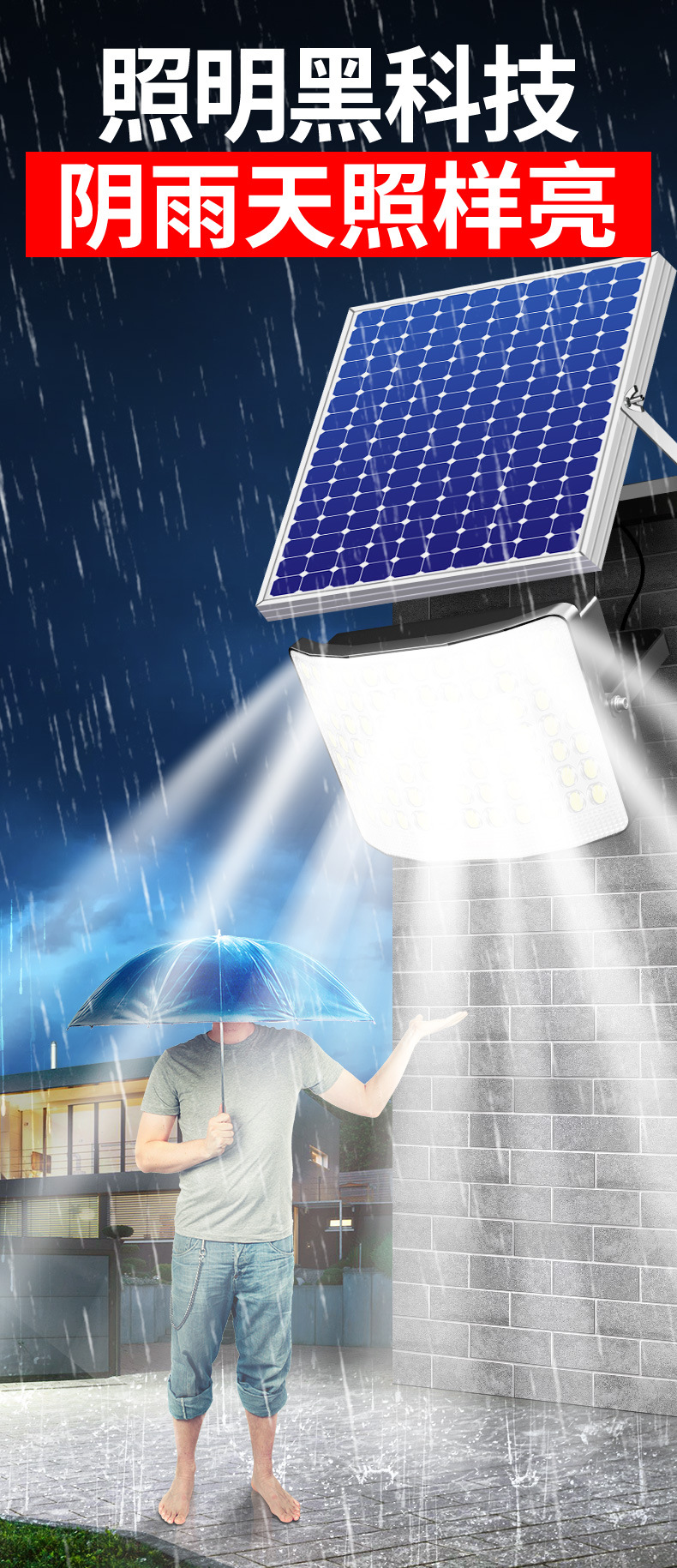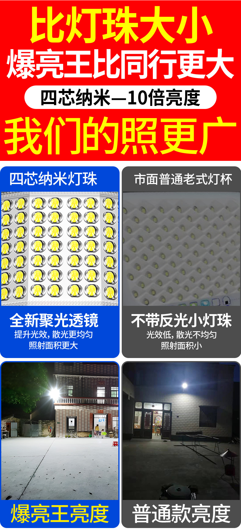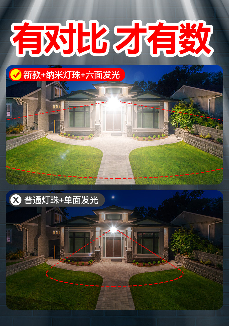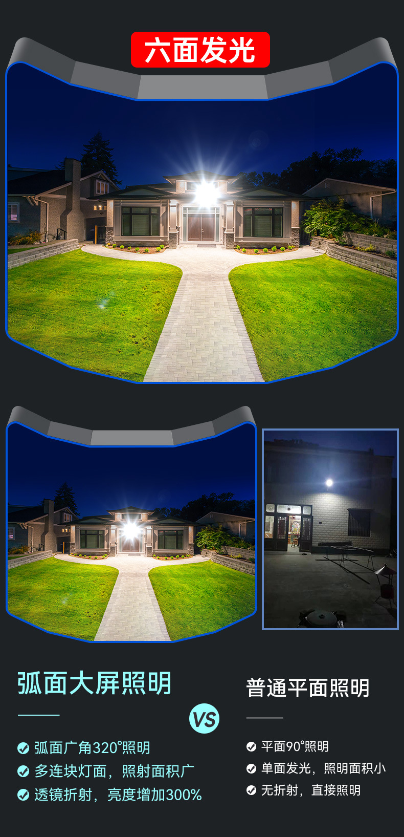 태양 광 야외 정원 조명 6 면 가정용 실내 방수 슈퍼 밝은 LED 새로운 2024 농촌 홍수 조명
