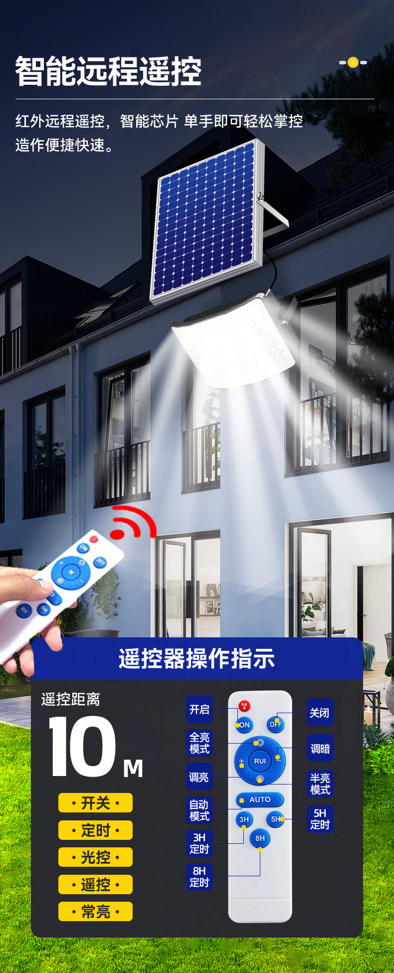 태양 광 야외 정원 조명 6 면 가정용 실내 방수 슈퍼 밝은 LED 새로운 2024 농촌 홍수 조명스토어 가기