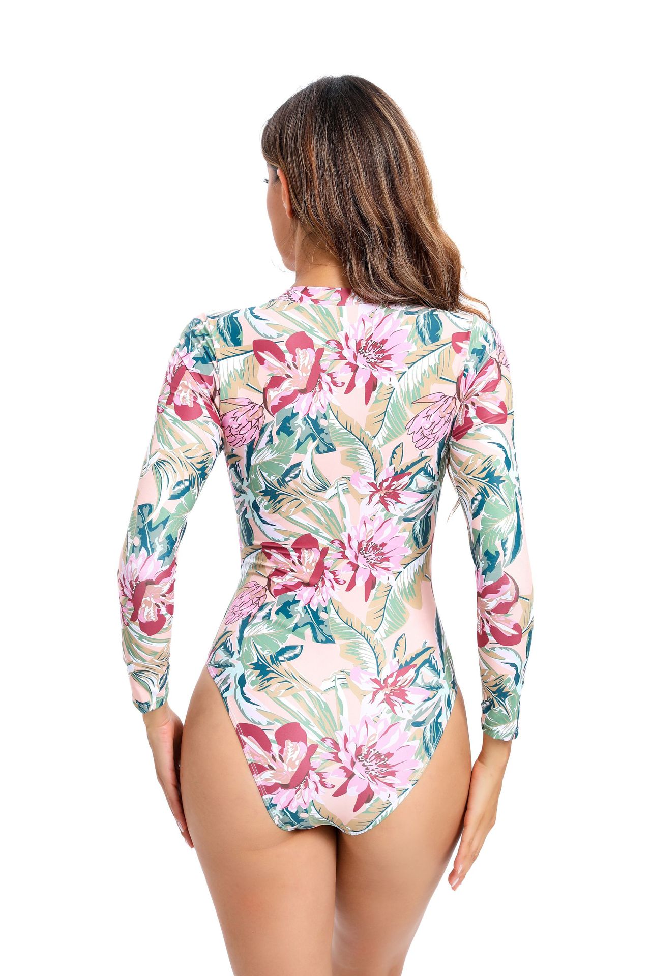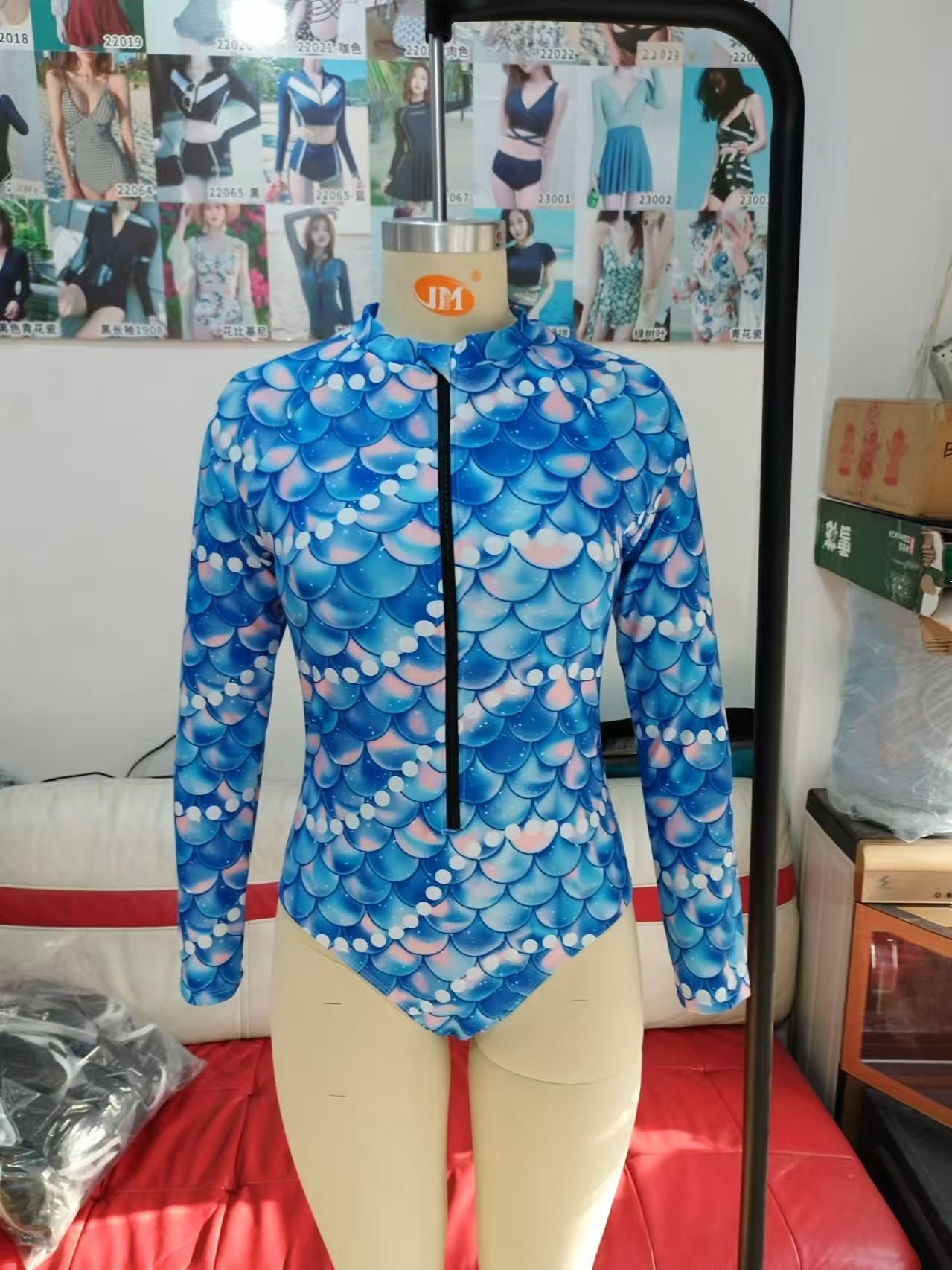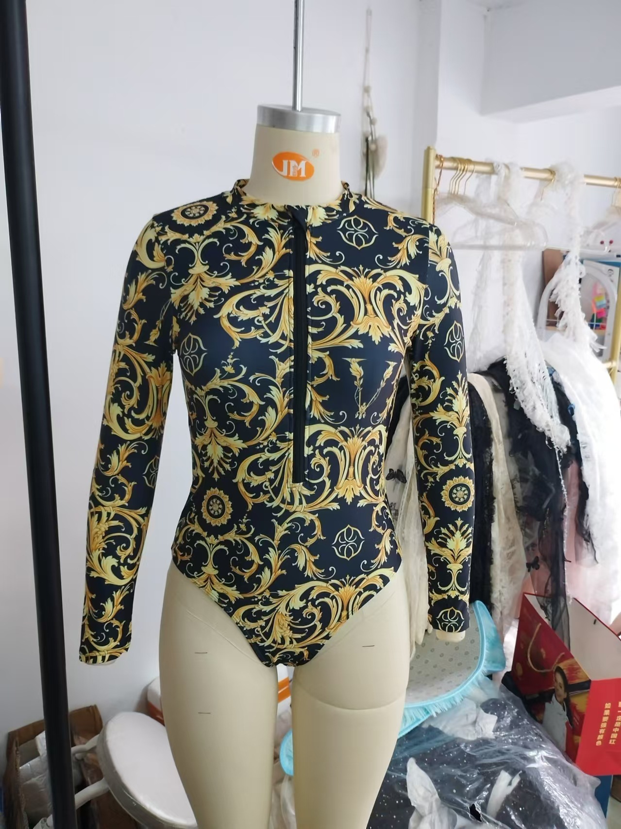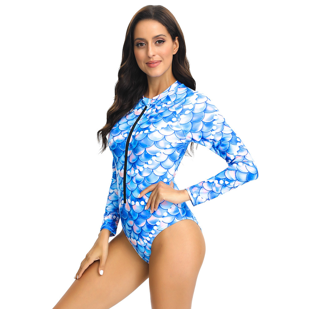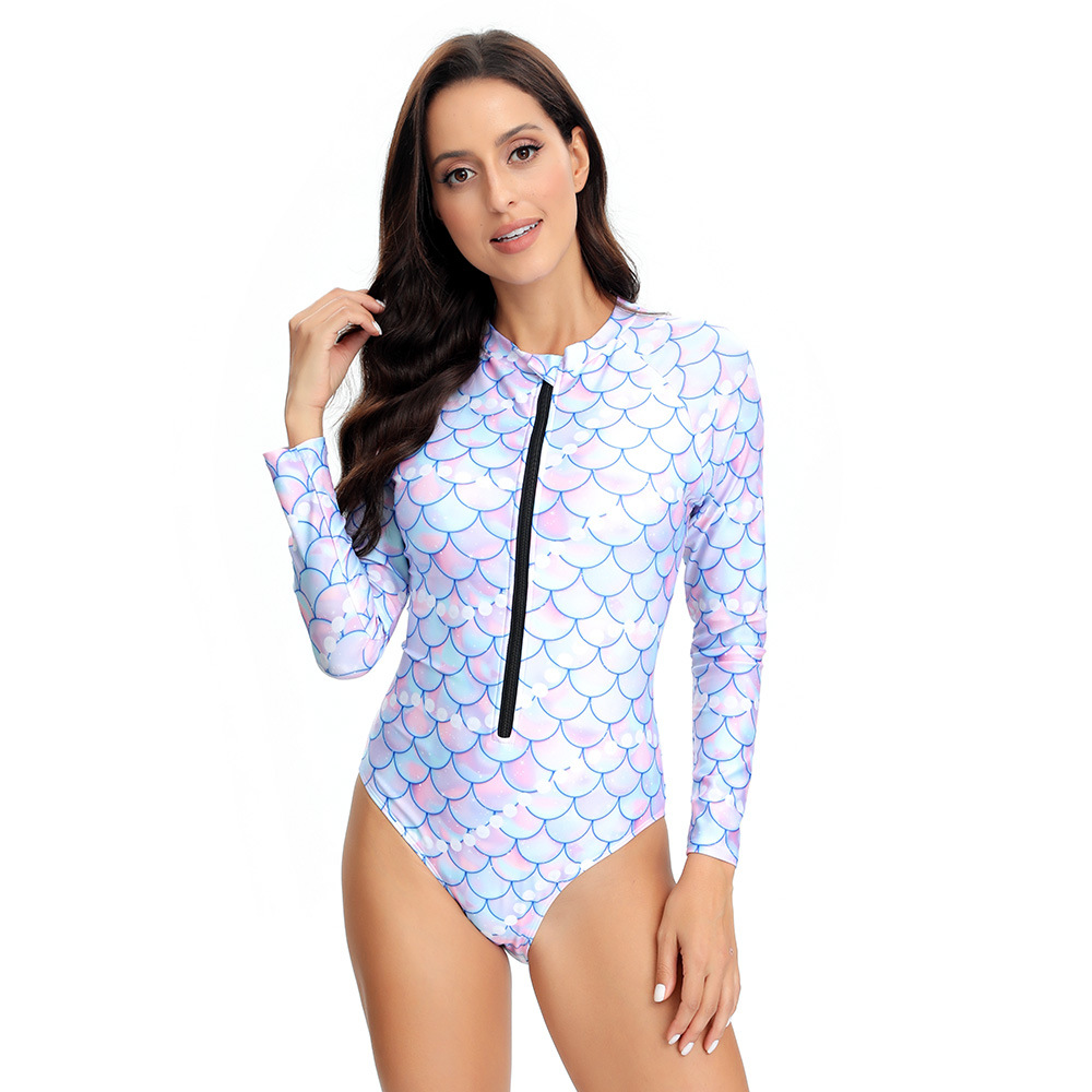[아마존 뉴] 지퍼 긴소매 패션 인쇄 원피스 브리프 타이트한 유럽과 미국의 대외 무역 경주 수영복
