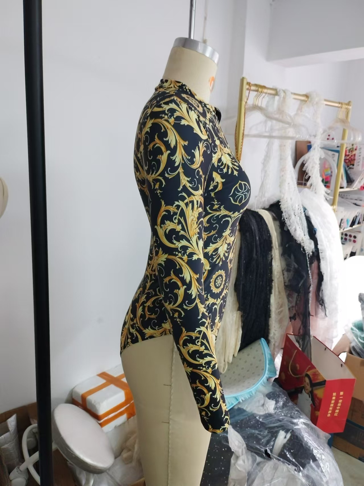 [아마존 뉴] 지퍼 긴소매 패션 인쇄 원피스 브리프 타이트한 유럽과 미국의 대외 무역 경주 수영복스토어 가기