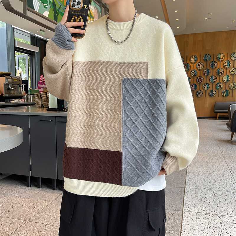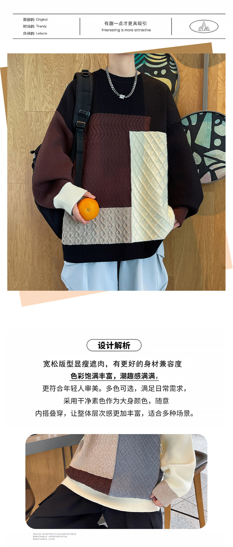 NASA 콘트라스트 컬러 스웨터 남자의 가을과 겨울 2024 둥근 목 느슨한 플러스 사이즈 지방 캐주얼 게으른 스타일 스웨터
