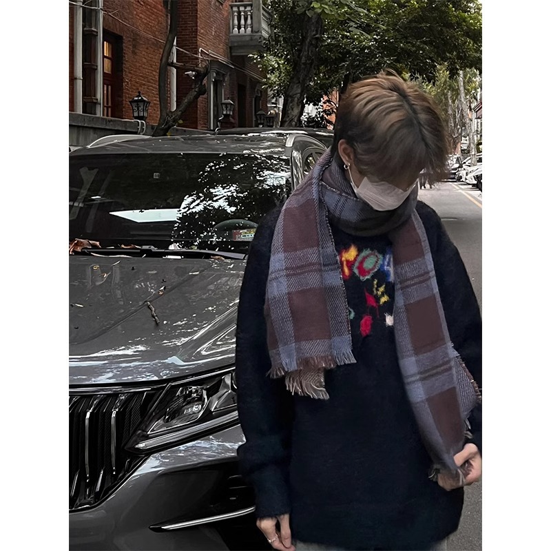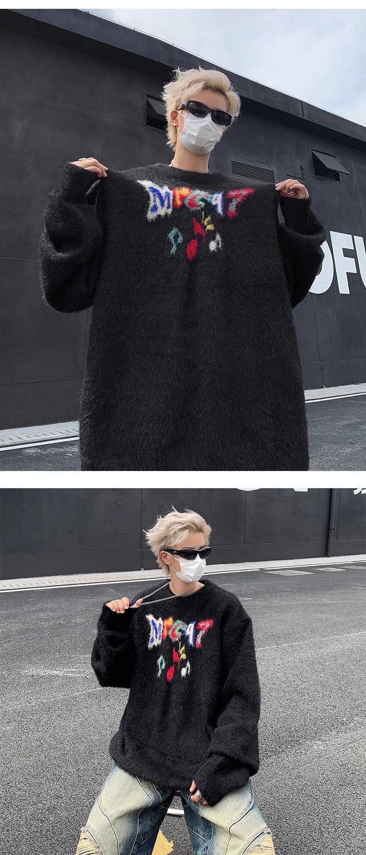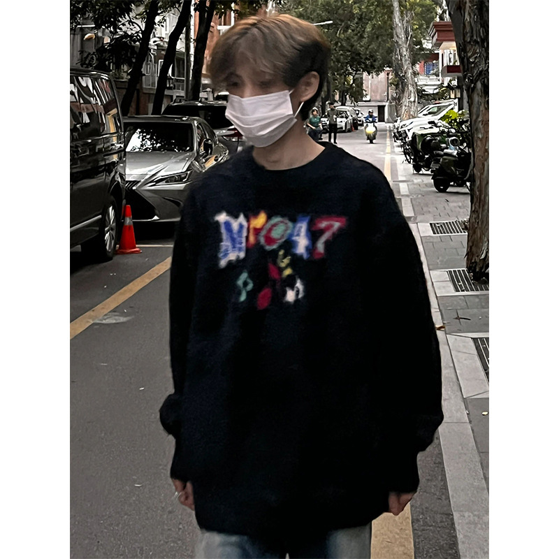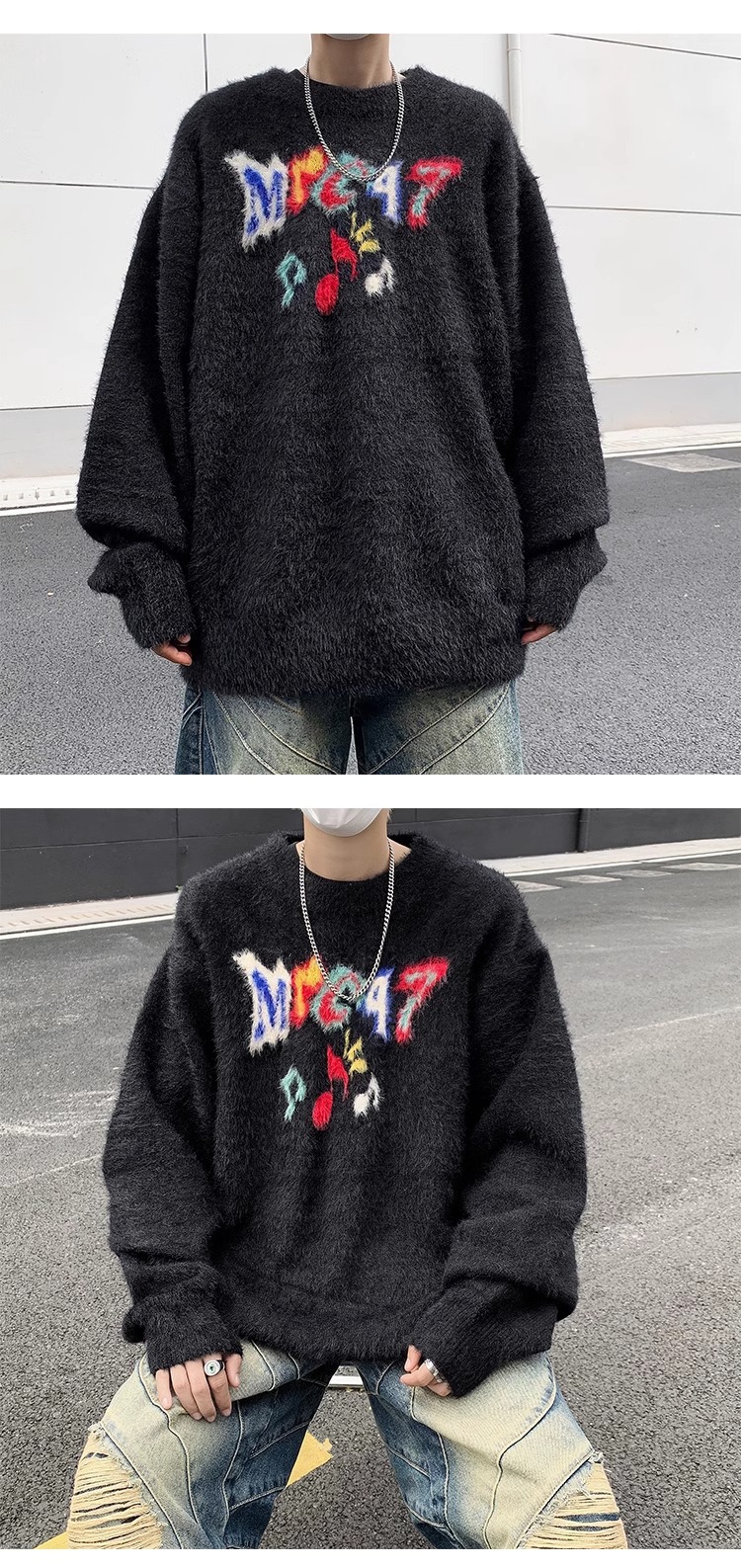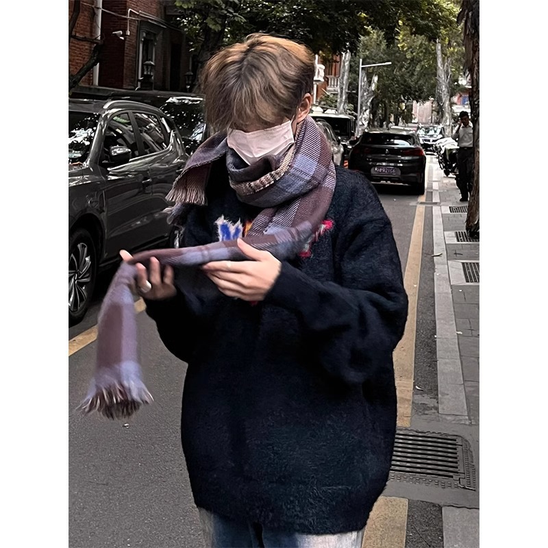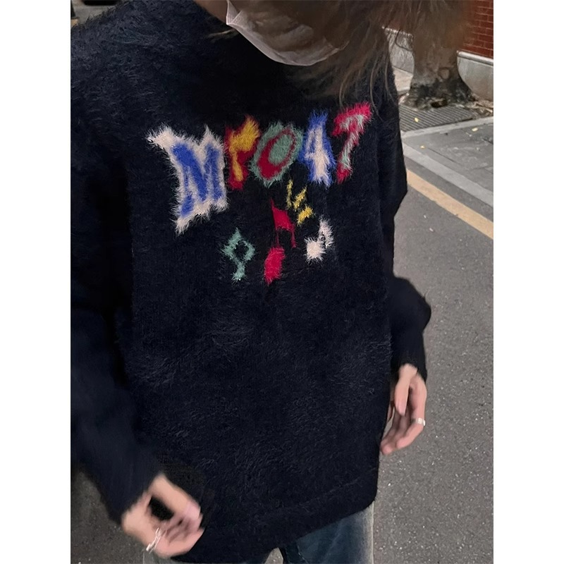 2024 컬러 레터 자카드 크루 넥 스웨터 남자 겨울 아메리칸 스타일 게으른 스타일 느슨한 니트 스웨터 유럽과 미국 코트스토어 가기