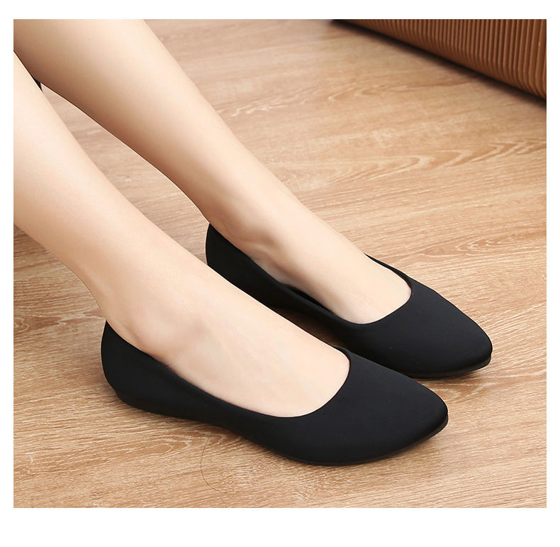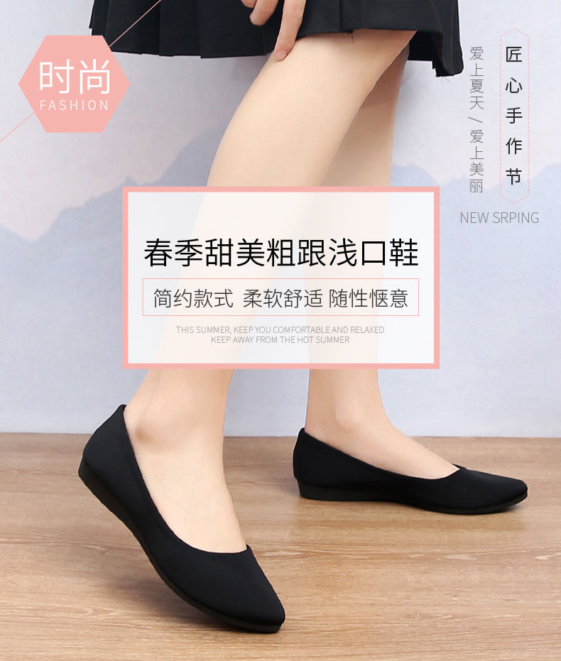 부드러운 바닥 얕은 입 포인팅 작업 신발 헝겊 표면 싱글 레이어 신발 2024 여름 새로운 패션 어머니 신발 편안한 통기성 콩 신발스토어 가기