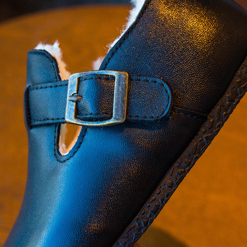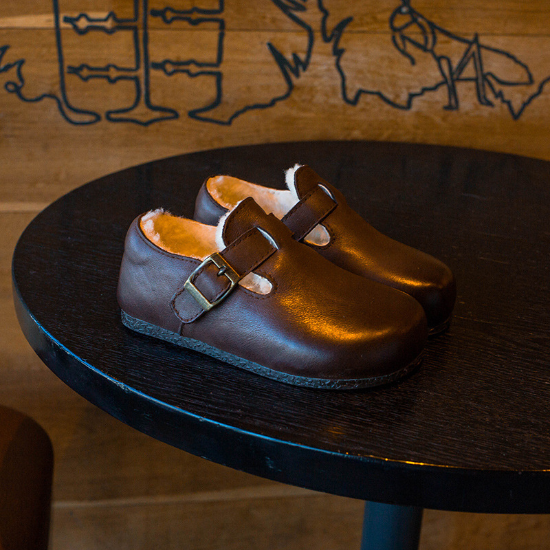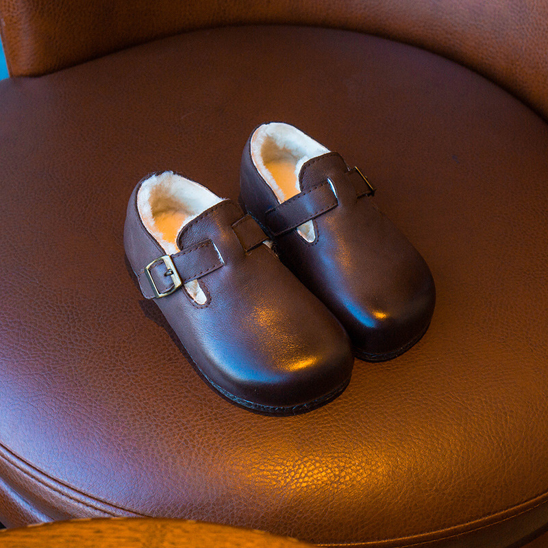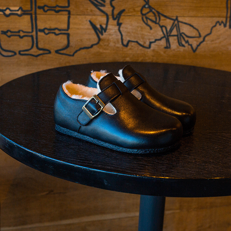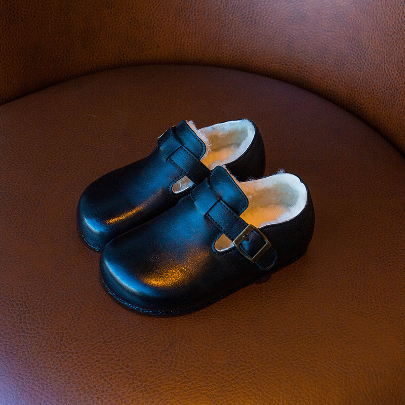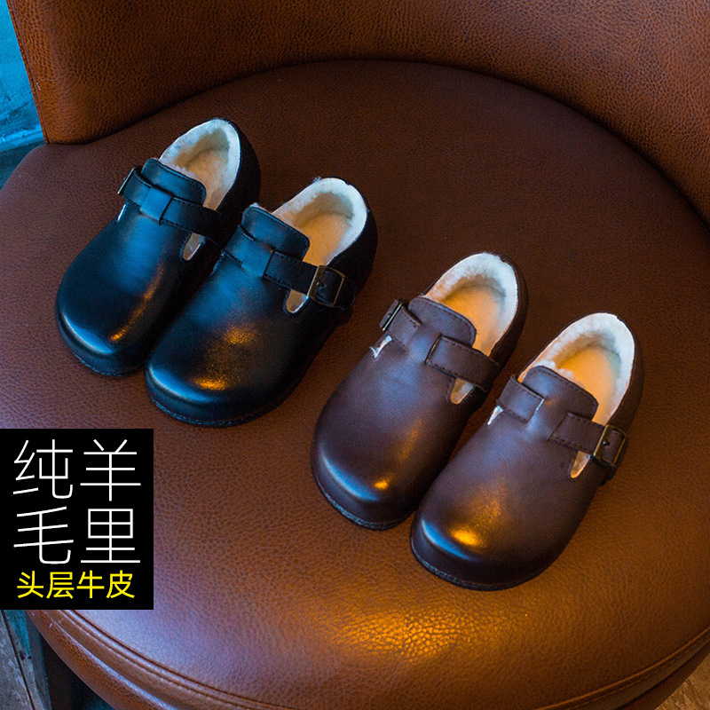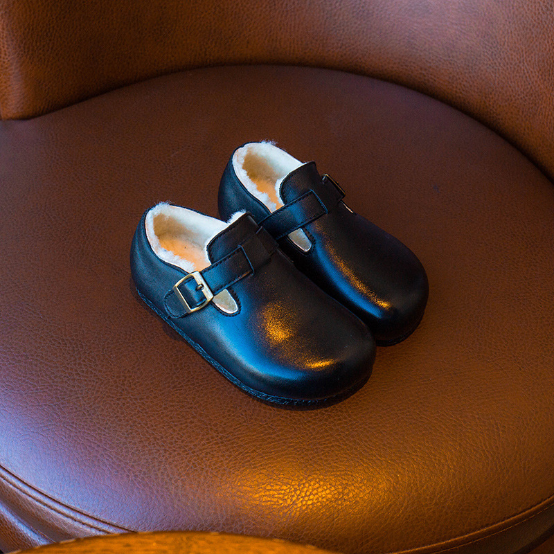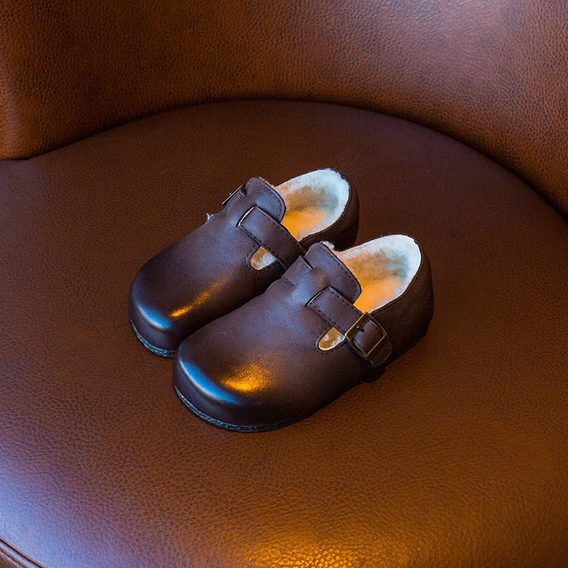 Birkenneth 신발 어린이 가죽 코튼 신발 2024 겨울 새로운 미끄럼 방지 콩 신발 기모 따뜻한 로퍼