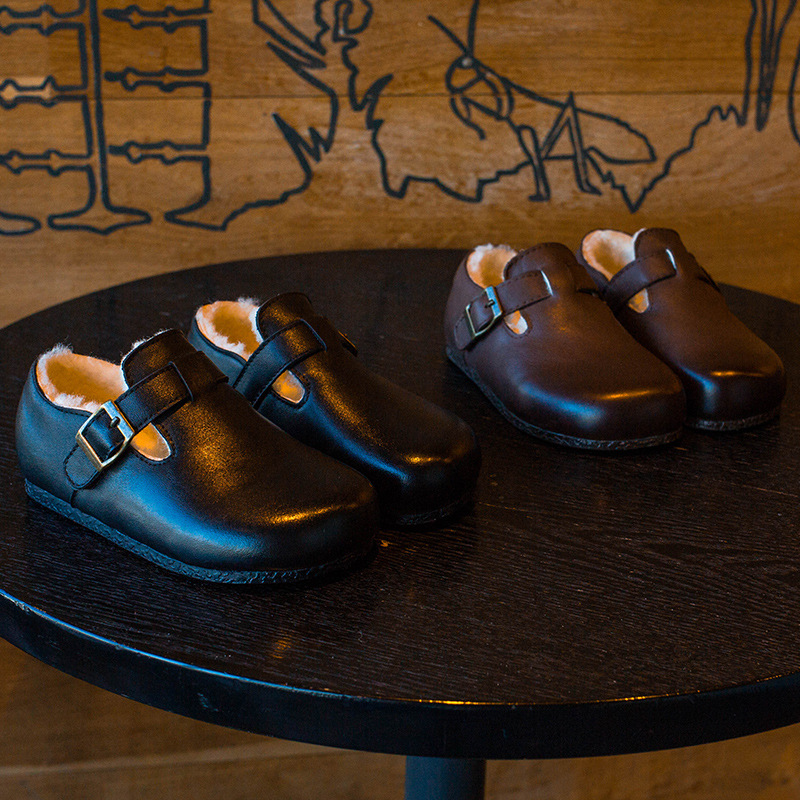 Birkenneth 신발 어린이 가죽 코튼 신발 2024 겨울 새로운 미끄럼 방지 콩 신발 기모 따뜻한 로퍼스토어 가기