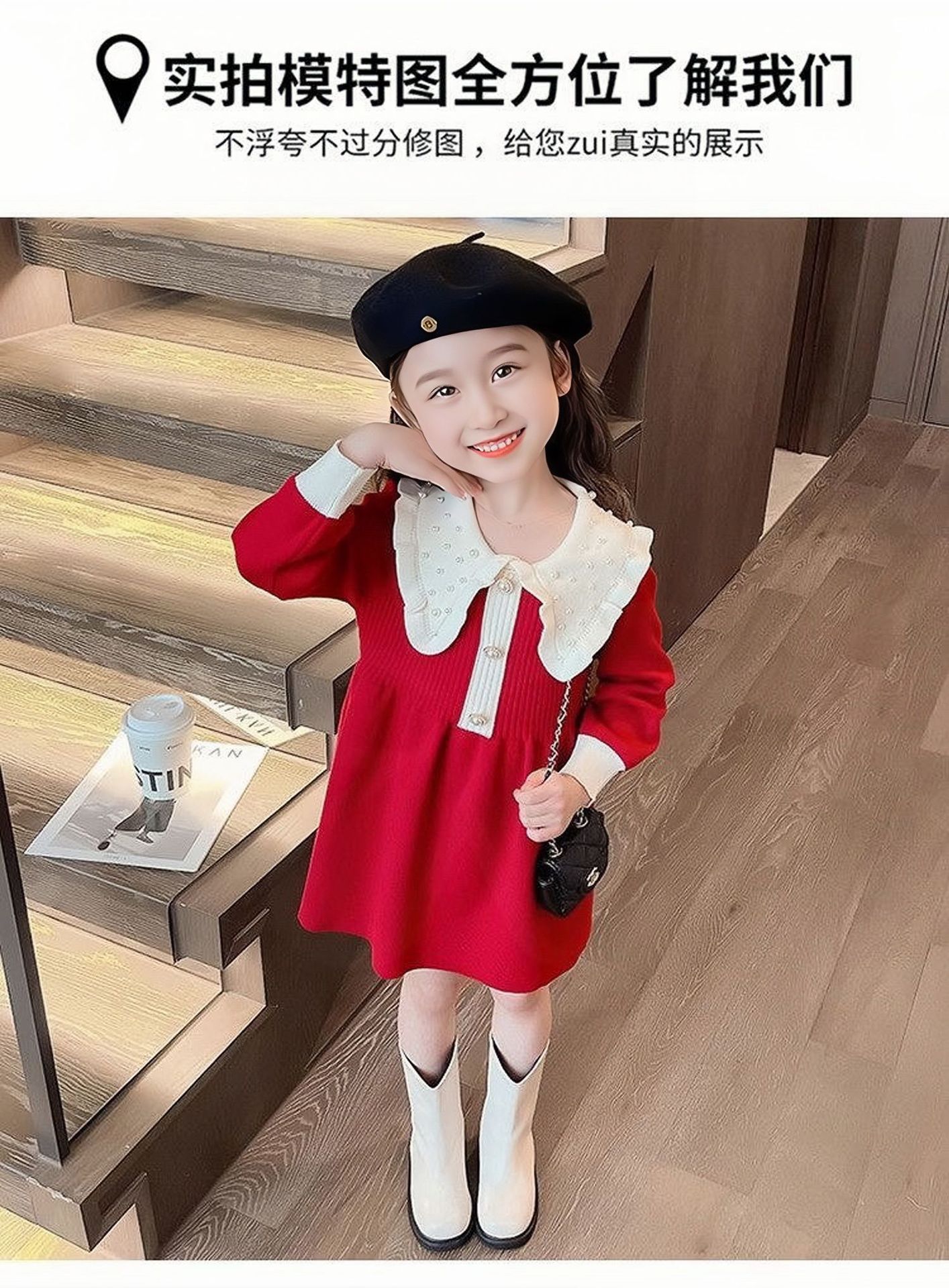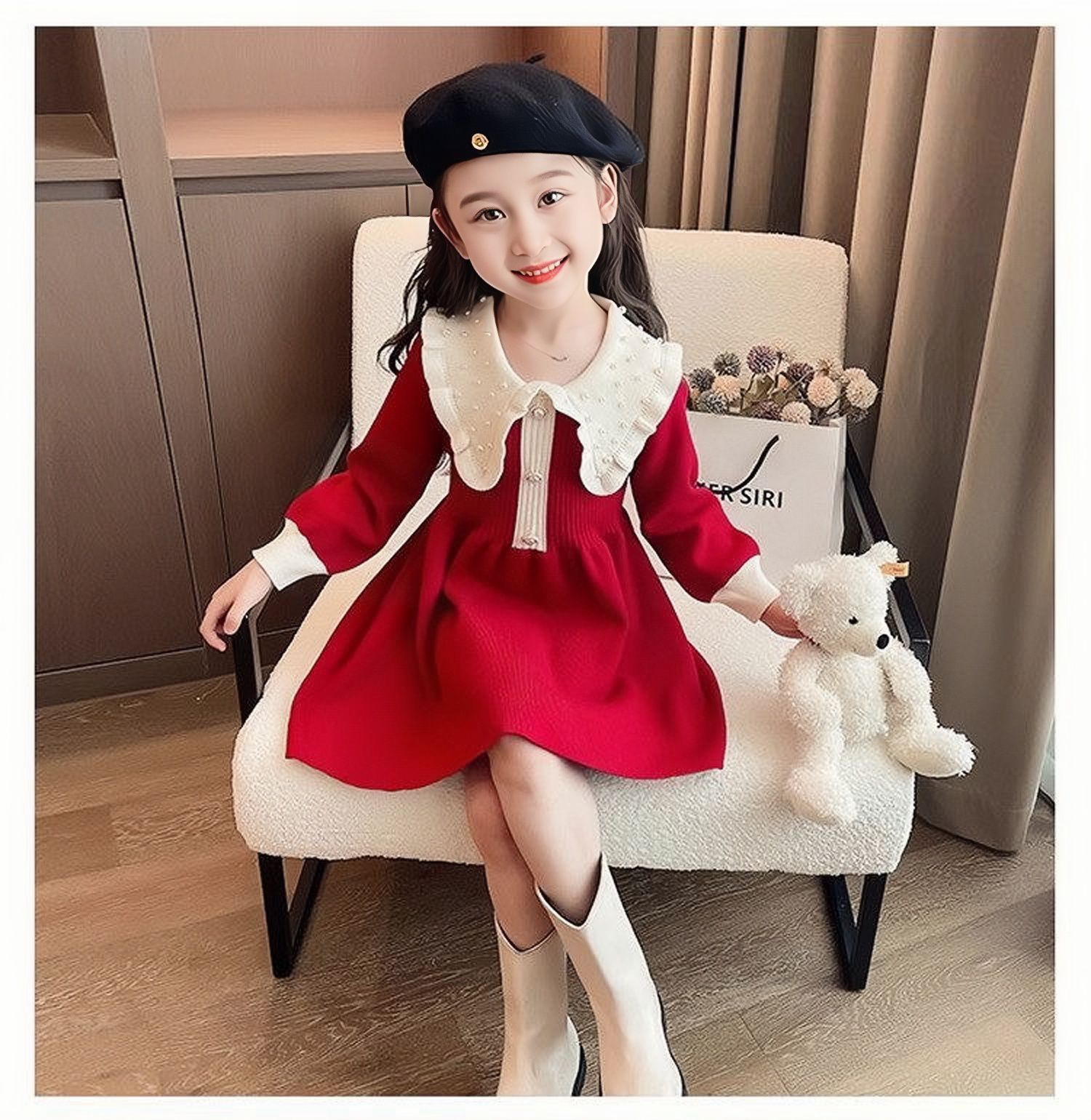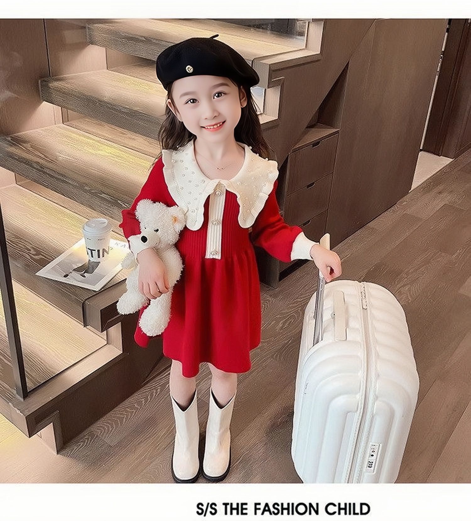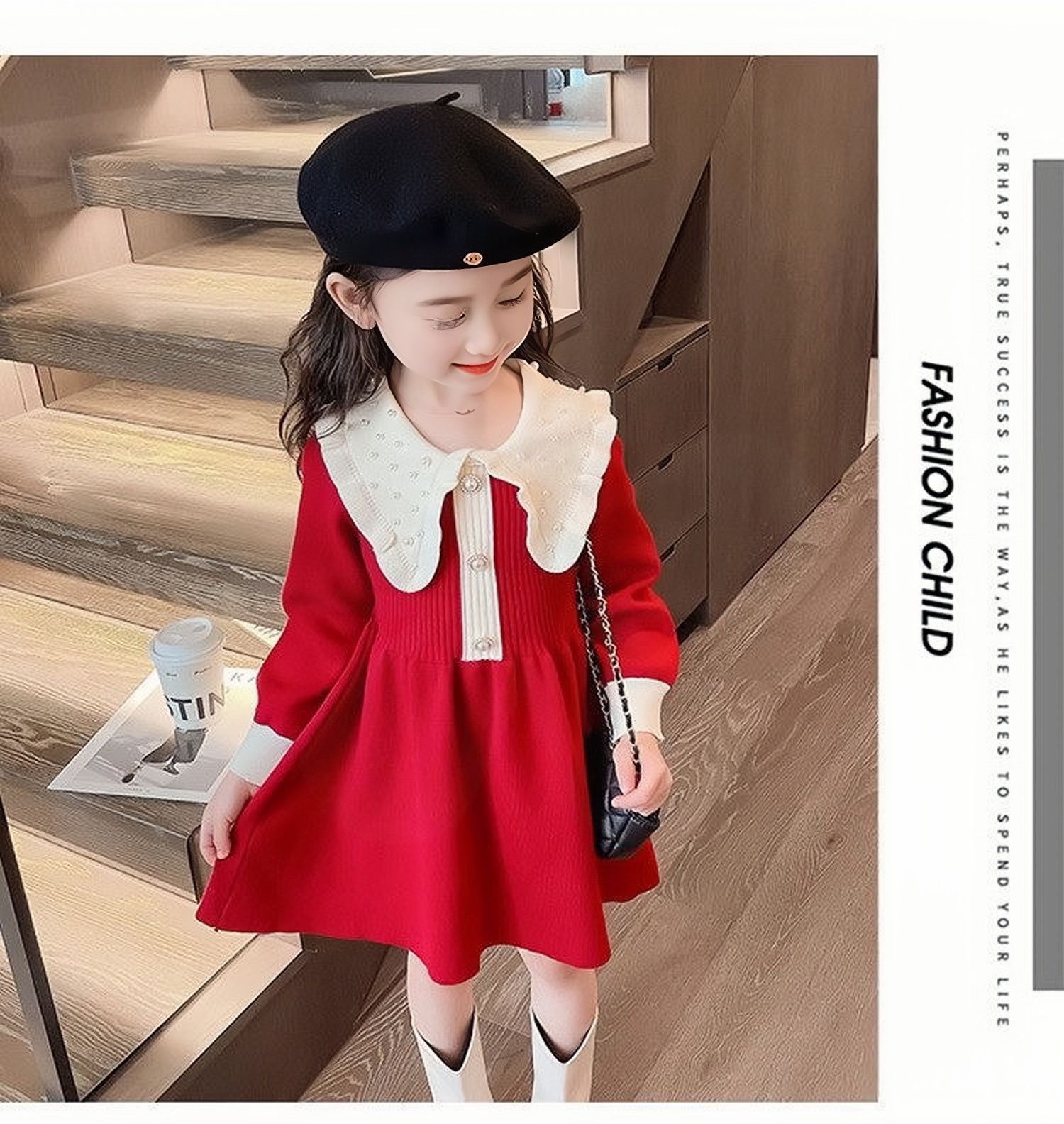 소녀 가을과 겨울 새로운 진주 원피스 어린이 서양 스타일 올 매치 귀여운 유행 원피스 레드 원피스스토어 가기