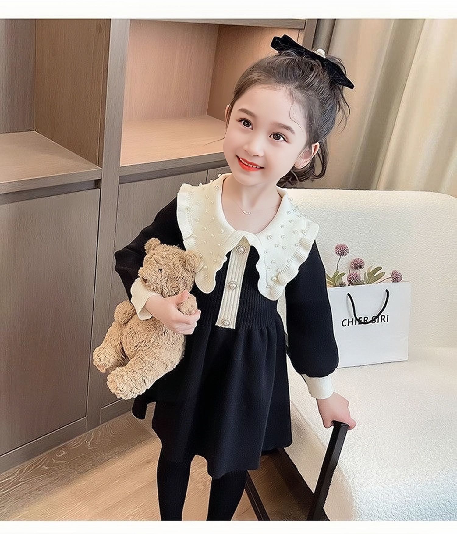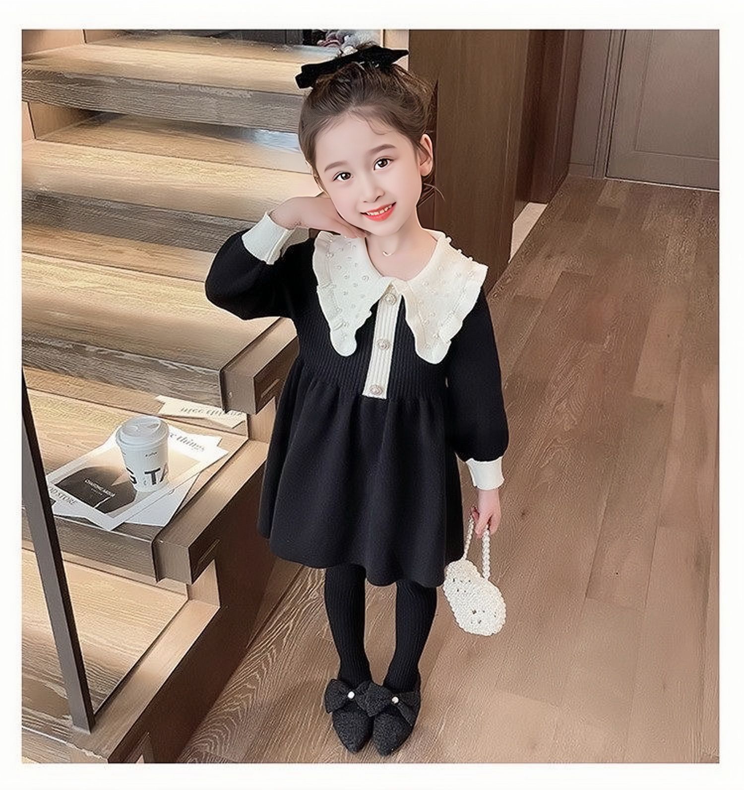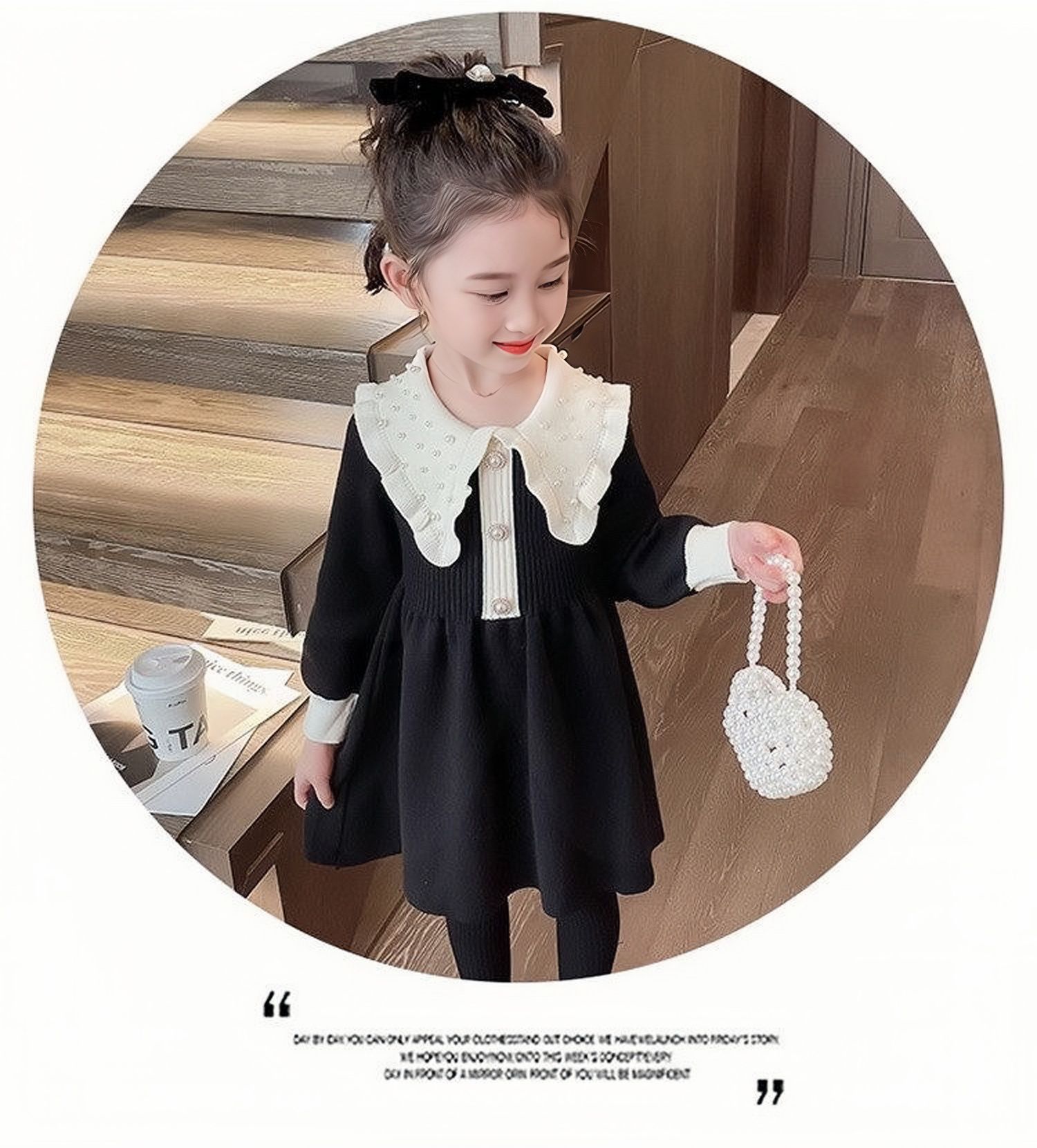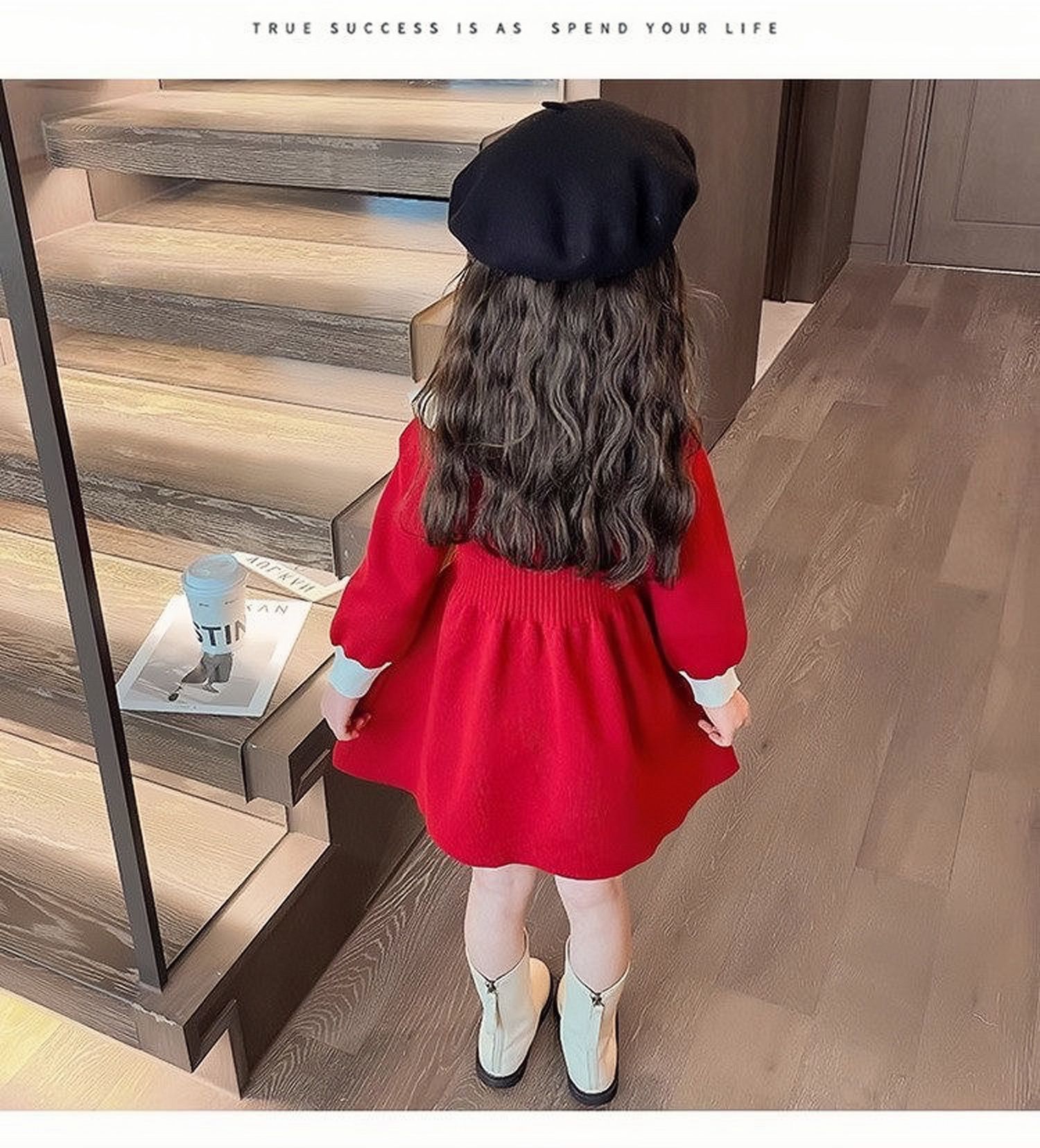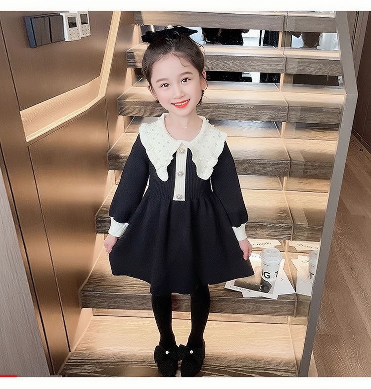 소녀 가을과 겨울 새로운 진주 원피스 어린이 서양 스타일 올 매치 귀여운 유행 원피스 레드 원피스스토어 가기