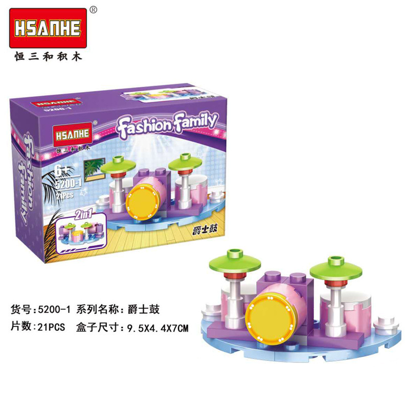 Heng San 및 5200 호환 레고 작은 입자 블록 조각 재즈 드럼 소녀 공주 Yi Zhi 조립 장난감