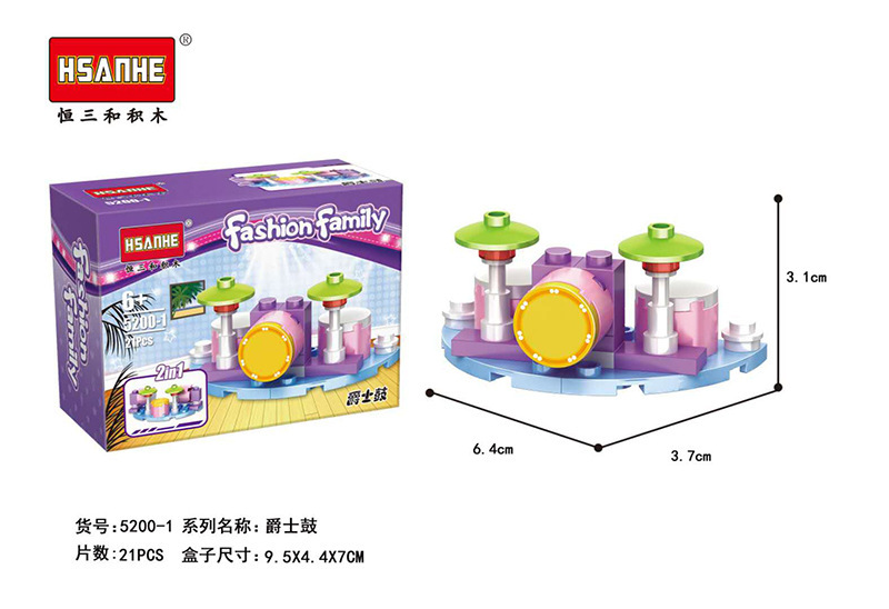 Heng San 및 5200 호환 레고 작은 입자 블록 조각 재즈 드럼 소녀 공주 Yi Zhi 조립 장난감스토어 가기
