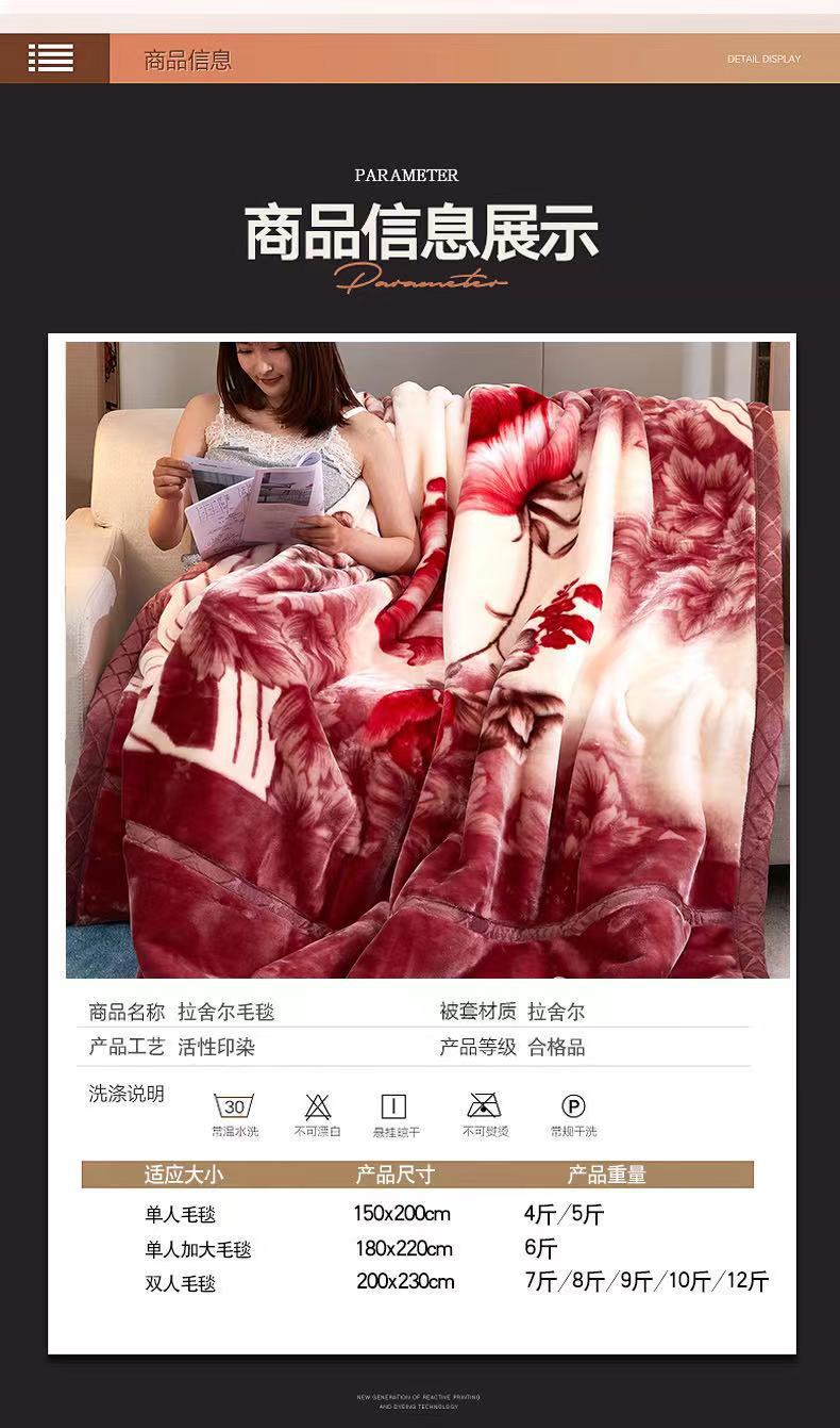 라셀 담요 더블 두꺼운 겨울 담요 웨딩 레드 담요 낮잠 담요 따뜻한 담요 선물 담요 도매스토어 가기
