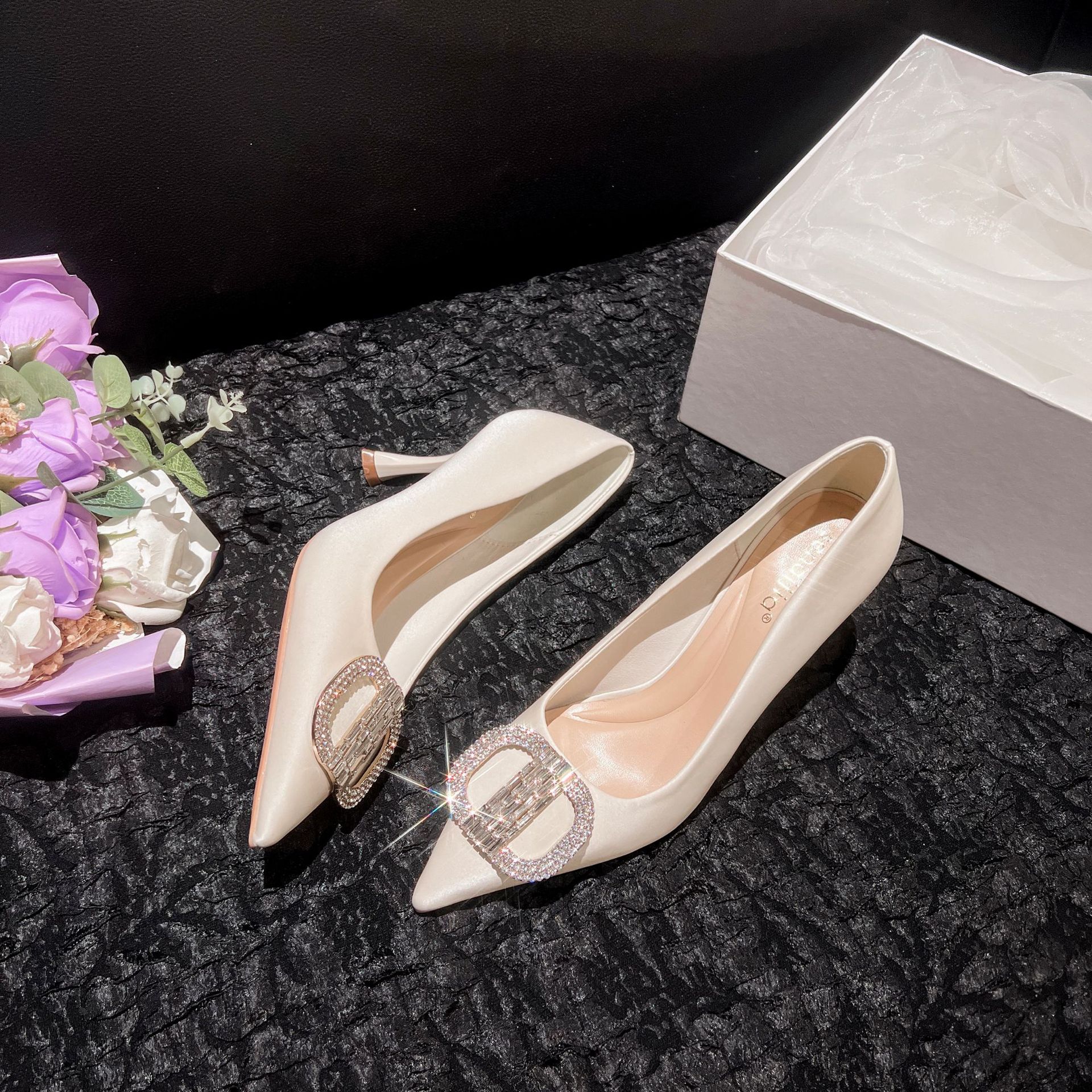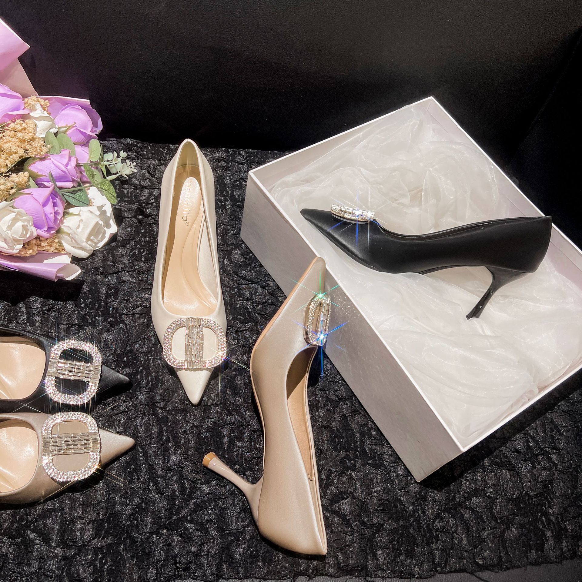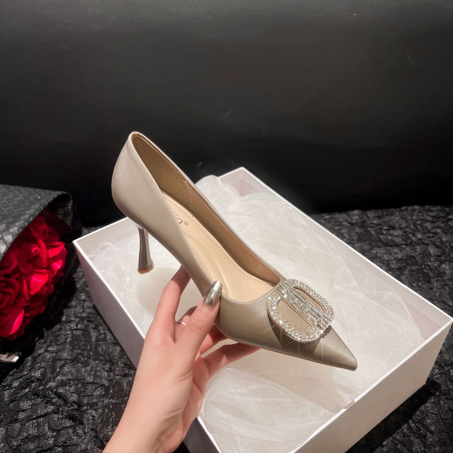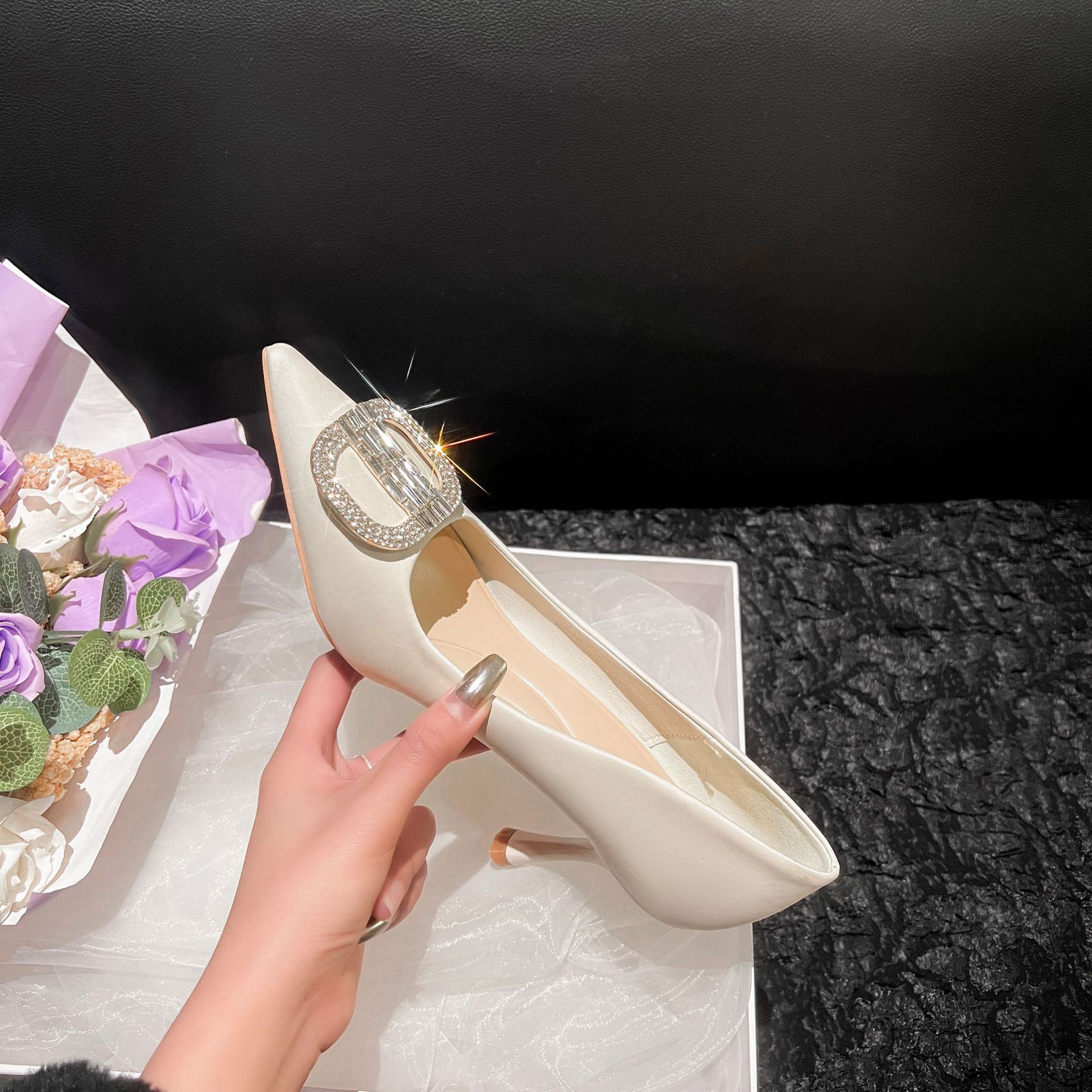 A555-21 하이힐 슈즈 여성용 2024 새로운 통근 스타일 작은 스퀘어 다이아몬드 버클 슈즈 올매치 우아한 포인팅 슈즈스토어 가기