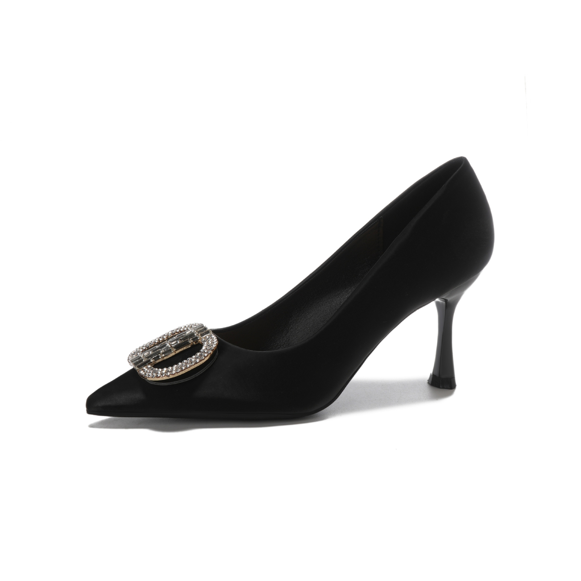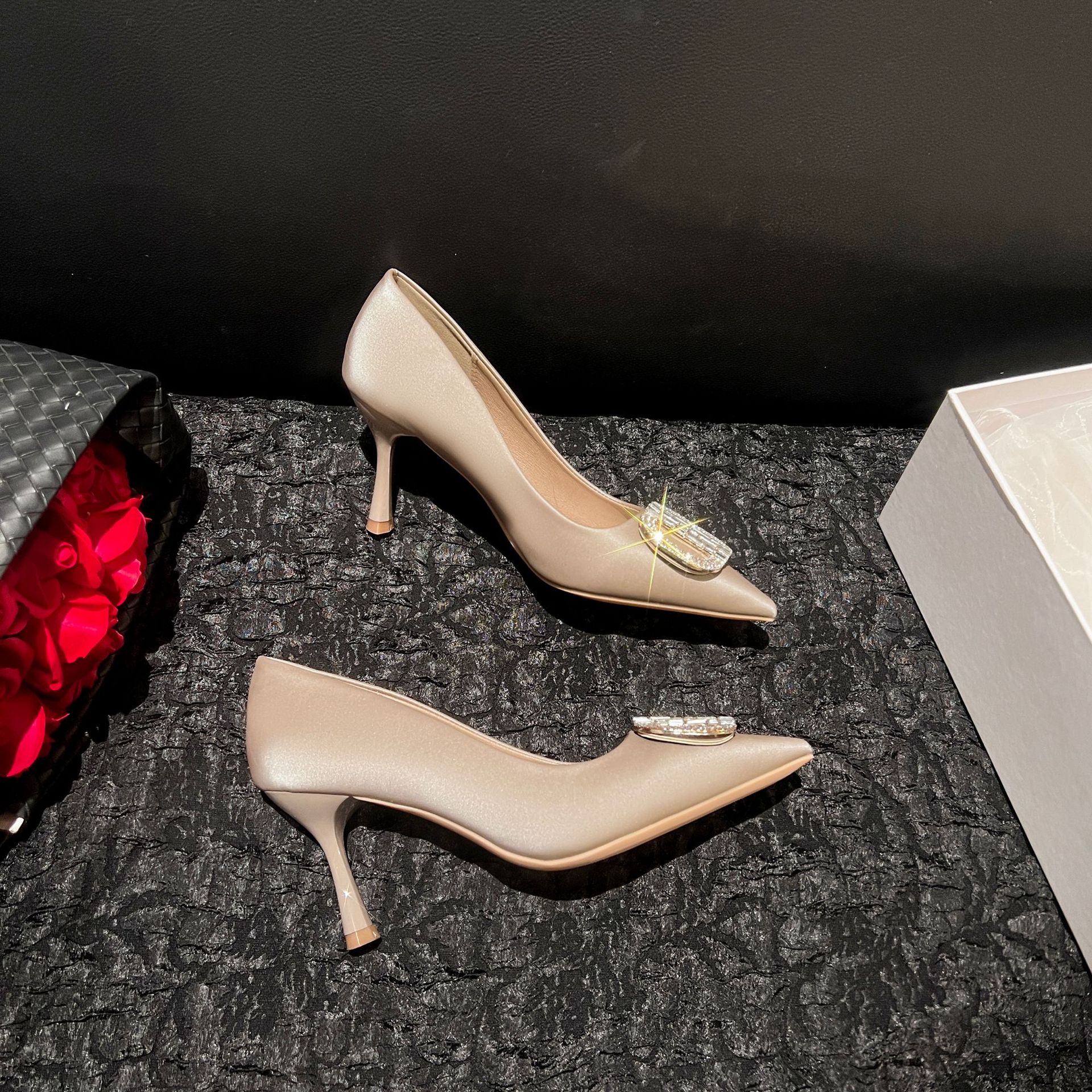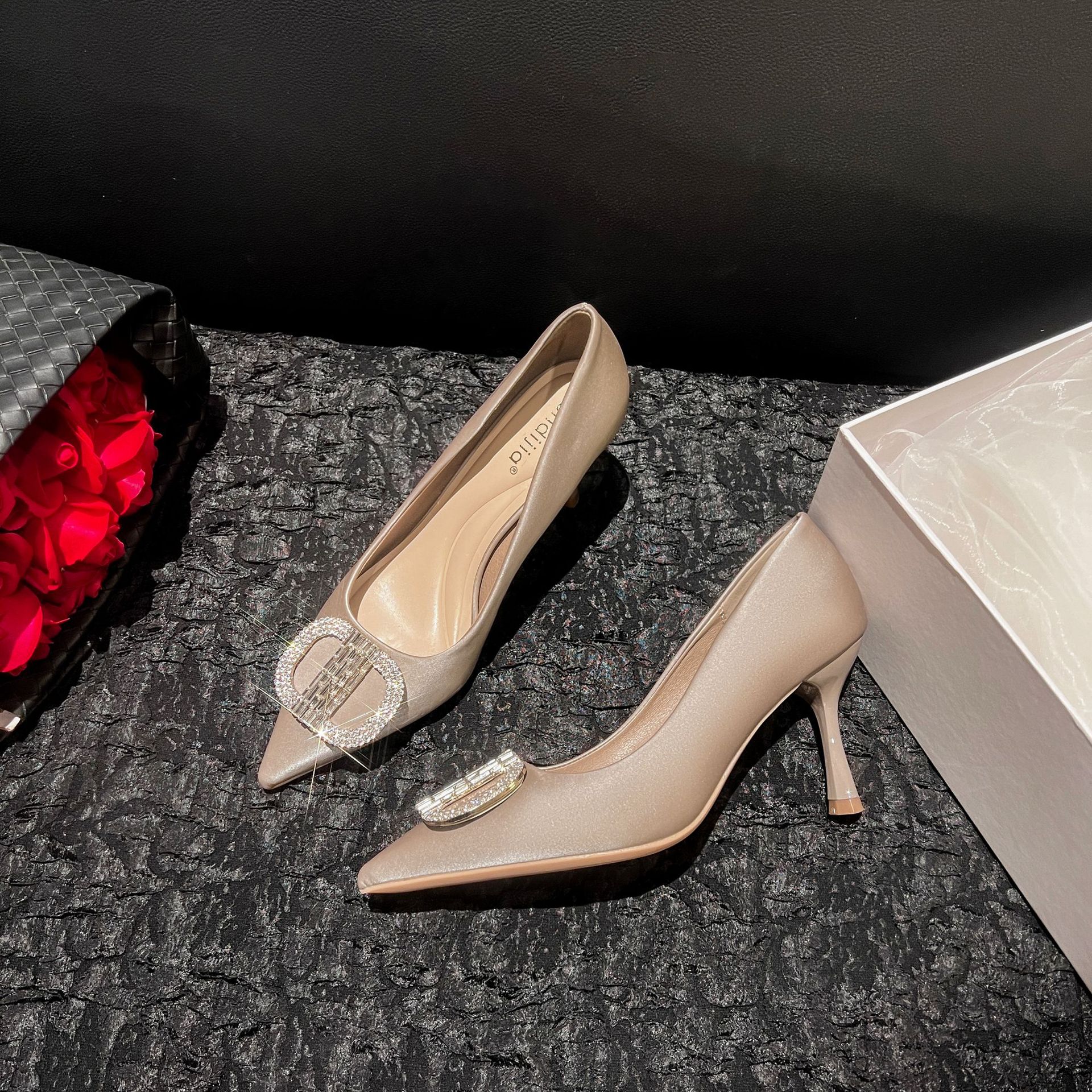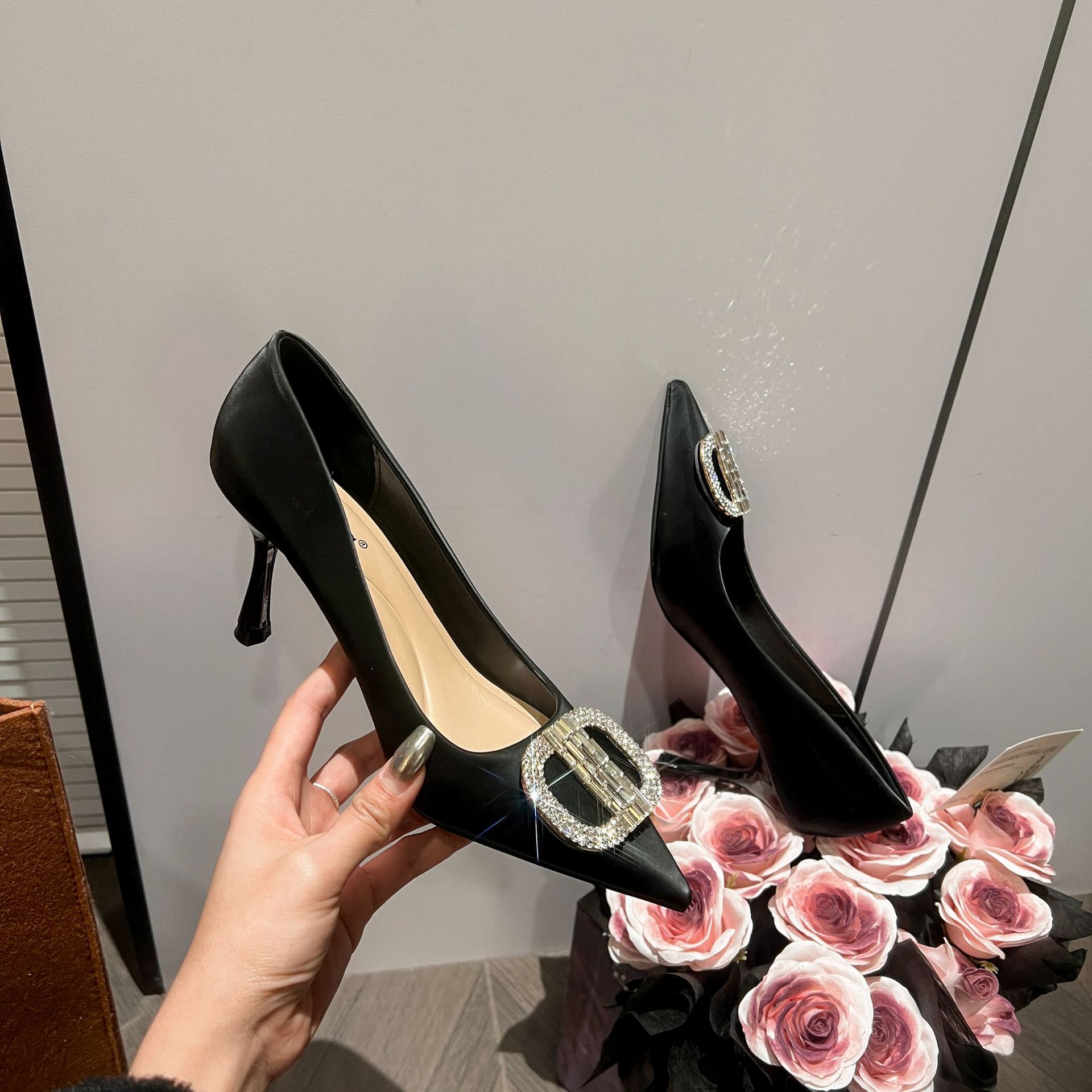 A555-21 하이힐 슈즈 여성용 2024 새로운 통근 스타일 작은 스퀘어 다이아몬드 버클 슈즈 올매치 우아한 포인팅 슈즈스토어 가기