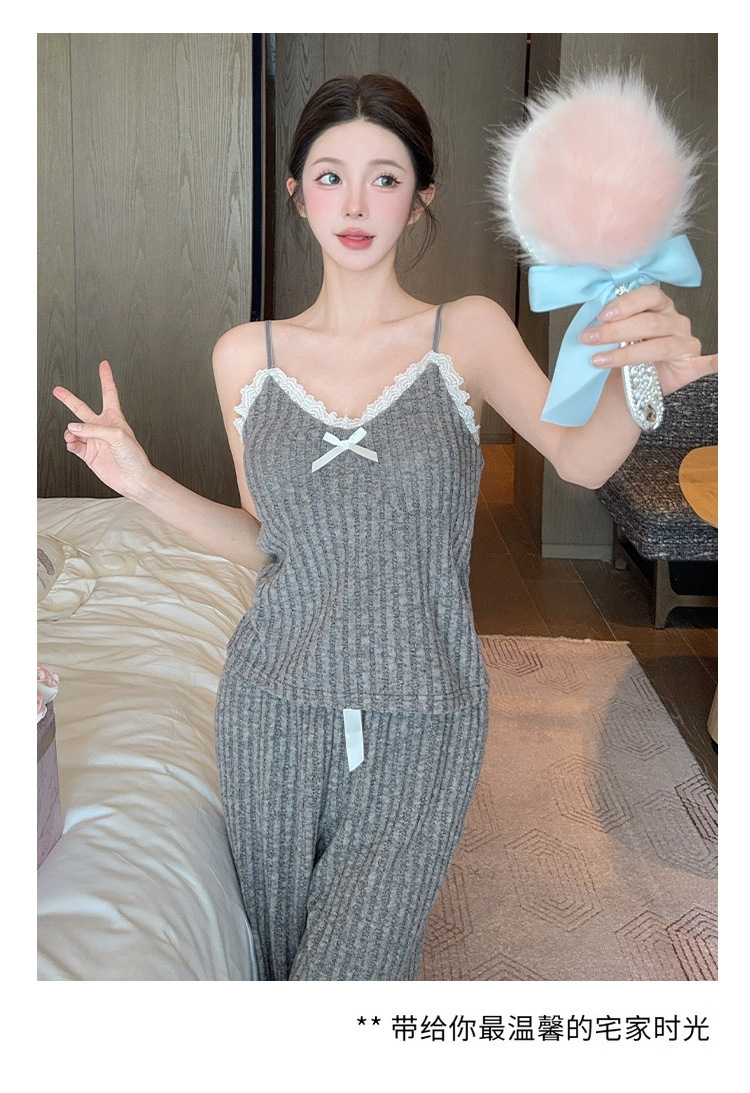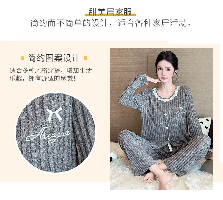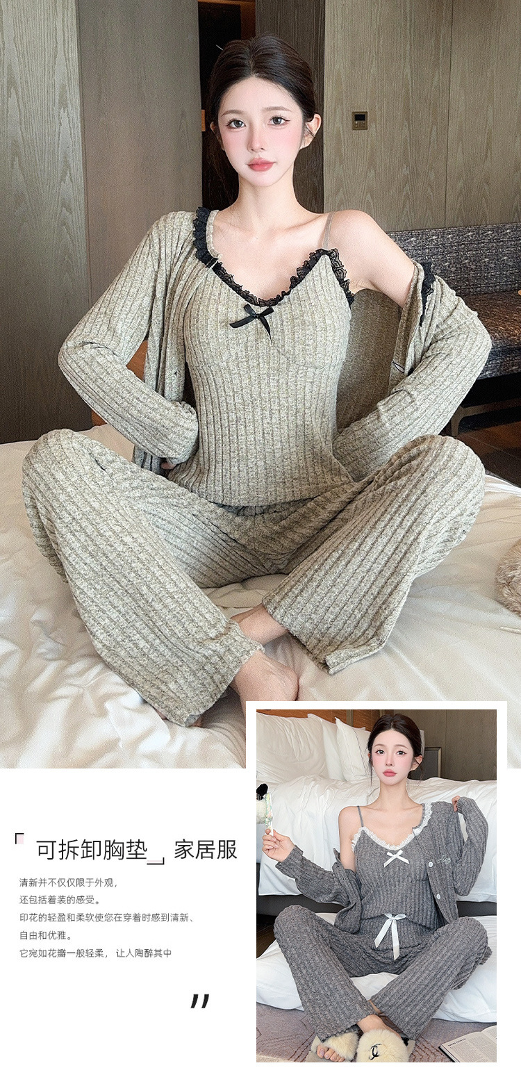가을과 겨울 파자마 여성용 캐시미어 가슴 패드 달콤한 섹시한 활 슬링 긴팔 홈 의류 3 종 세트스토어 가기