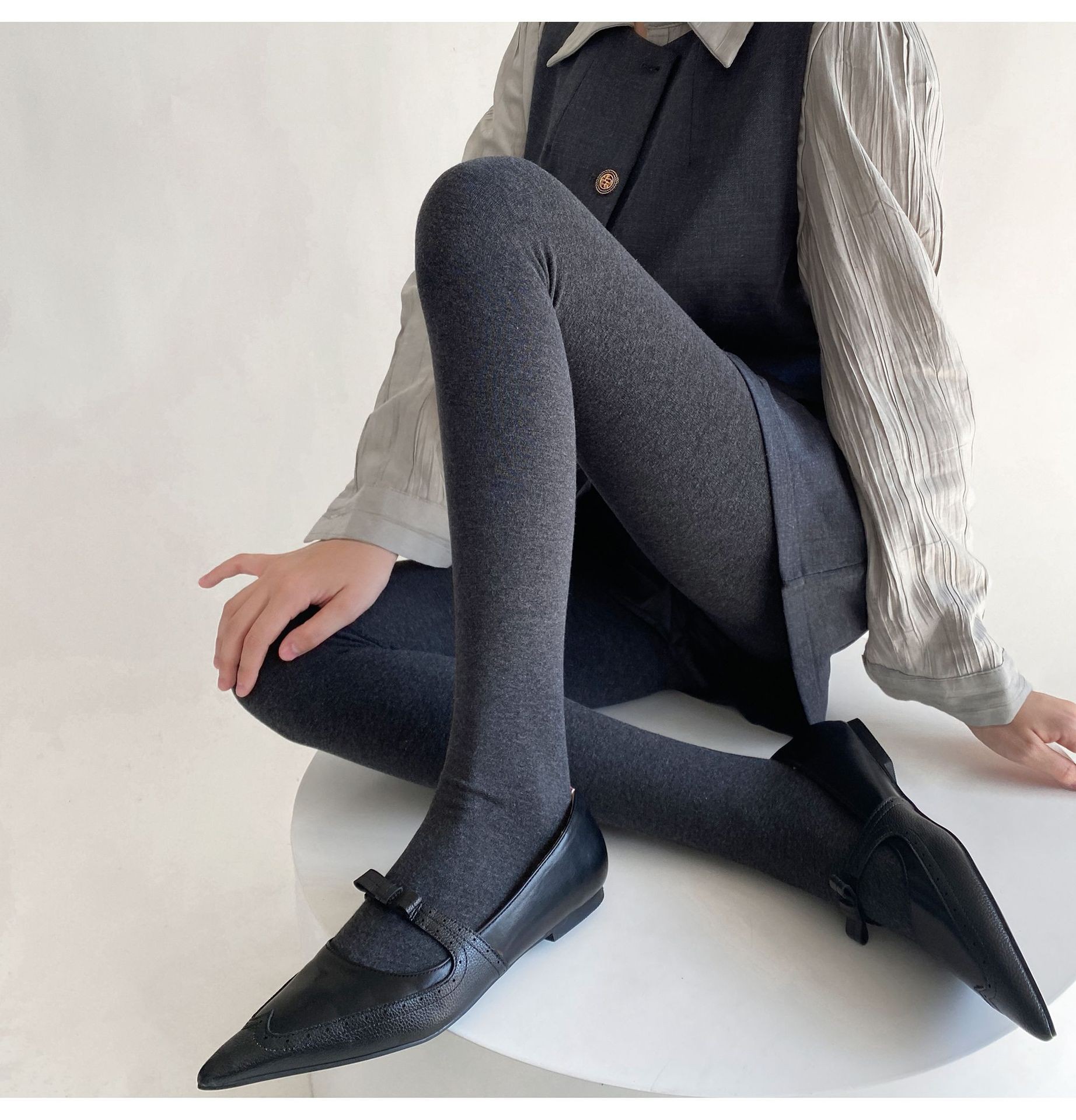 가을과 겨울 회색 슬리밍 레깅스 양말 여성의 가을과 겨울 면화 플랫 파운데이션 올 매치 따뜻한 슬리밍 기모 양말스토어 가기