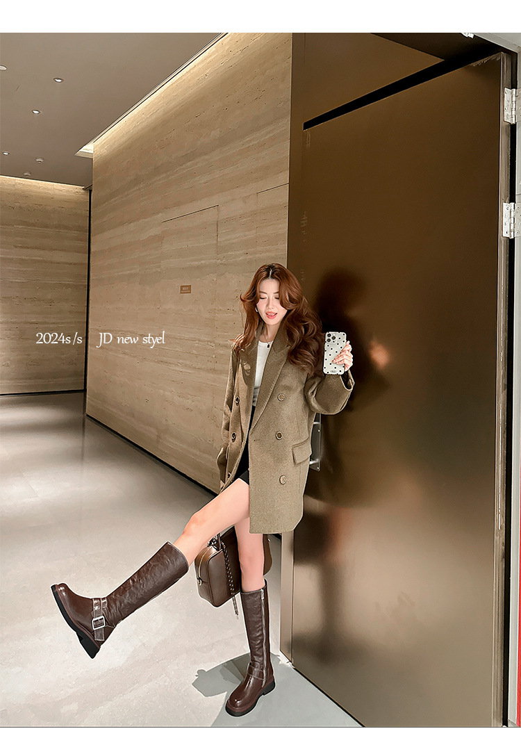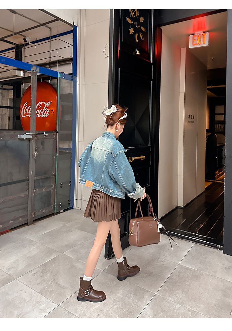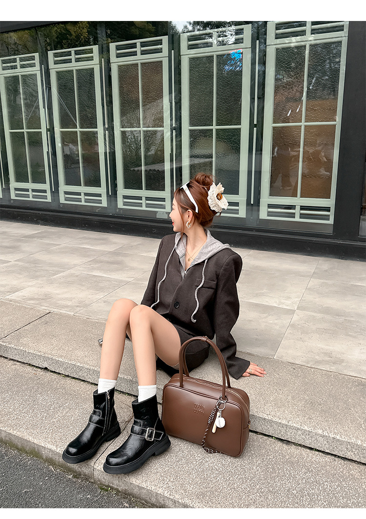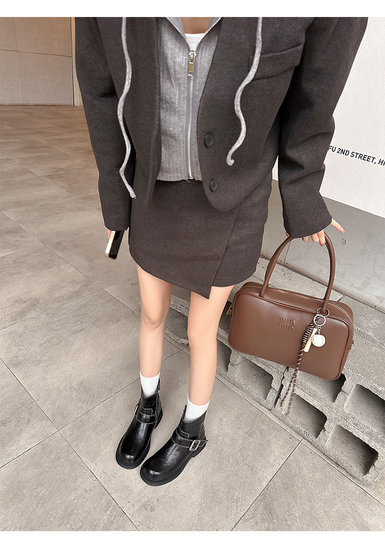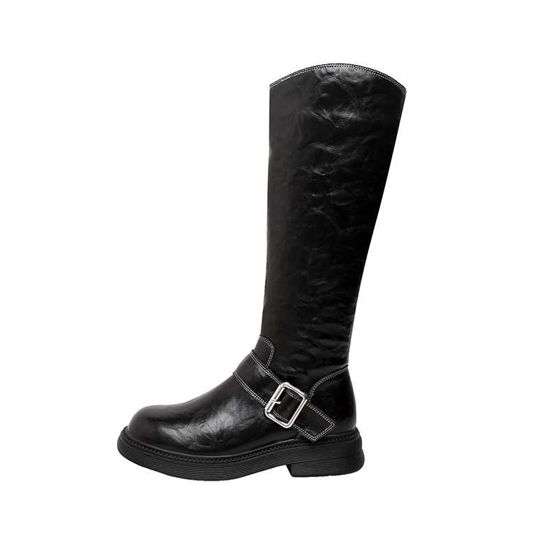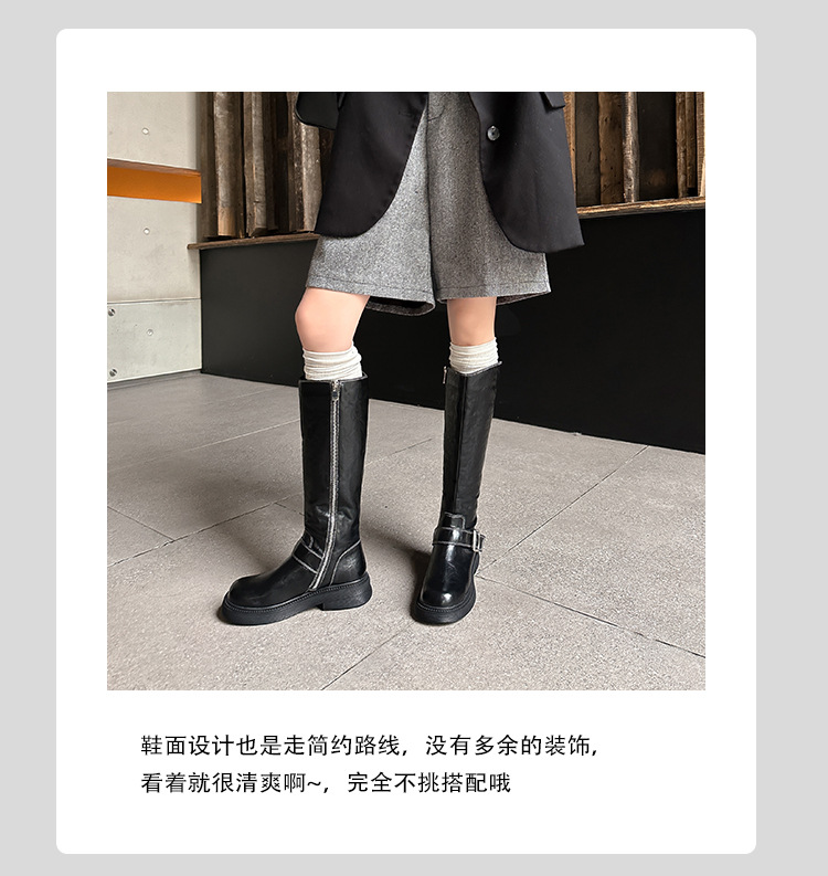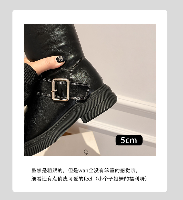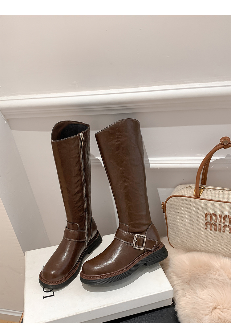 부드러운 소가죽! 다크 브라운 라운드 발가락 두꺼운 힐 오토바이 부츠 여성 가을 및 겨울 벨트 버클 Maillard 빈티지 플랫폼 마틴 부츠스토어 가기