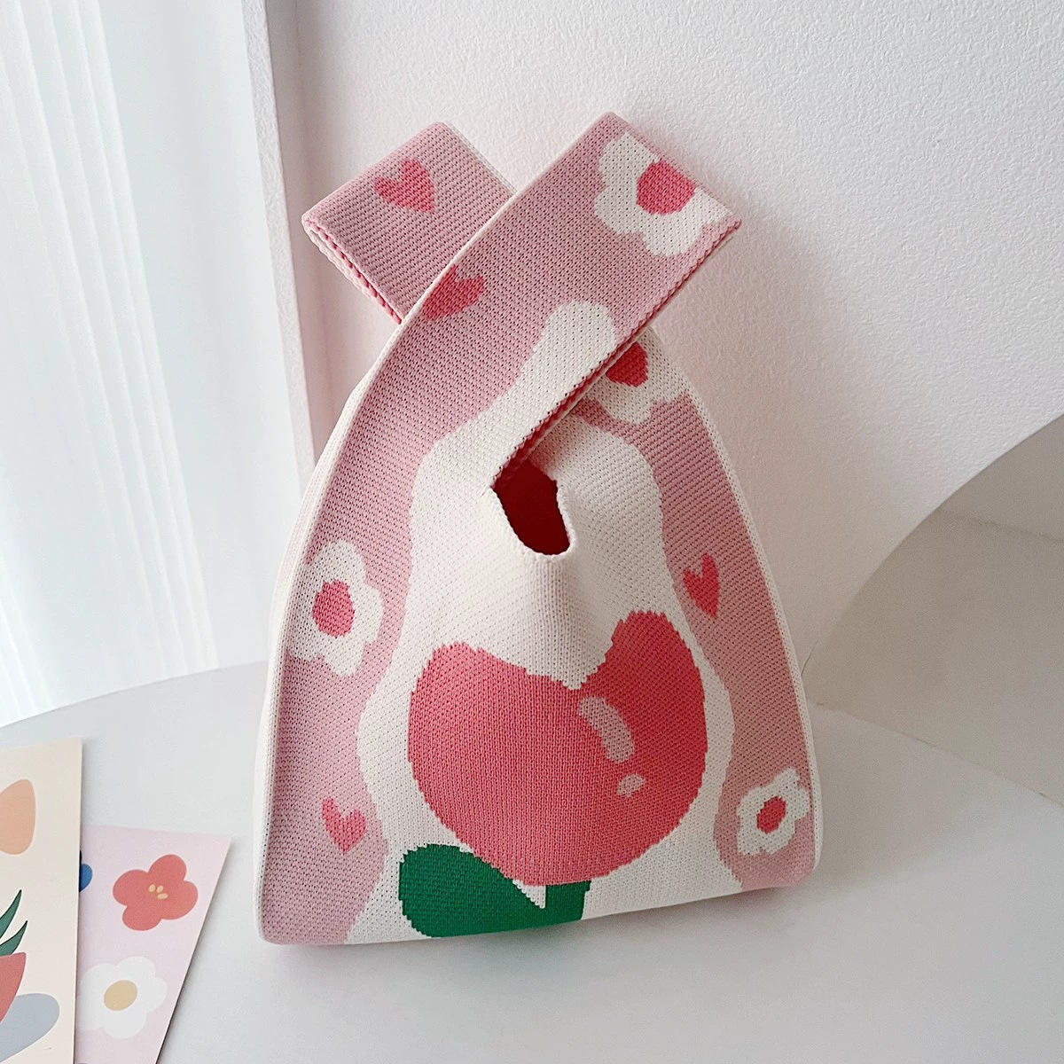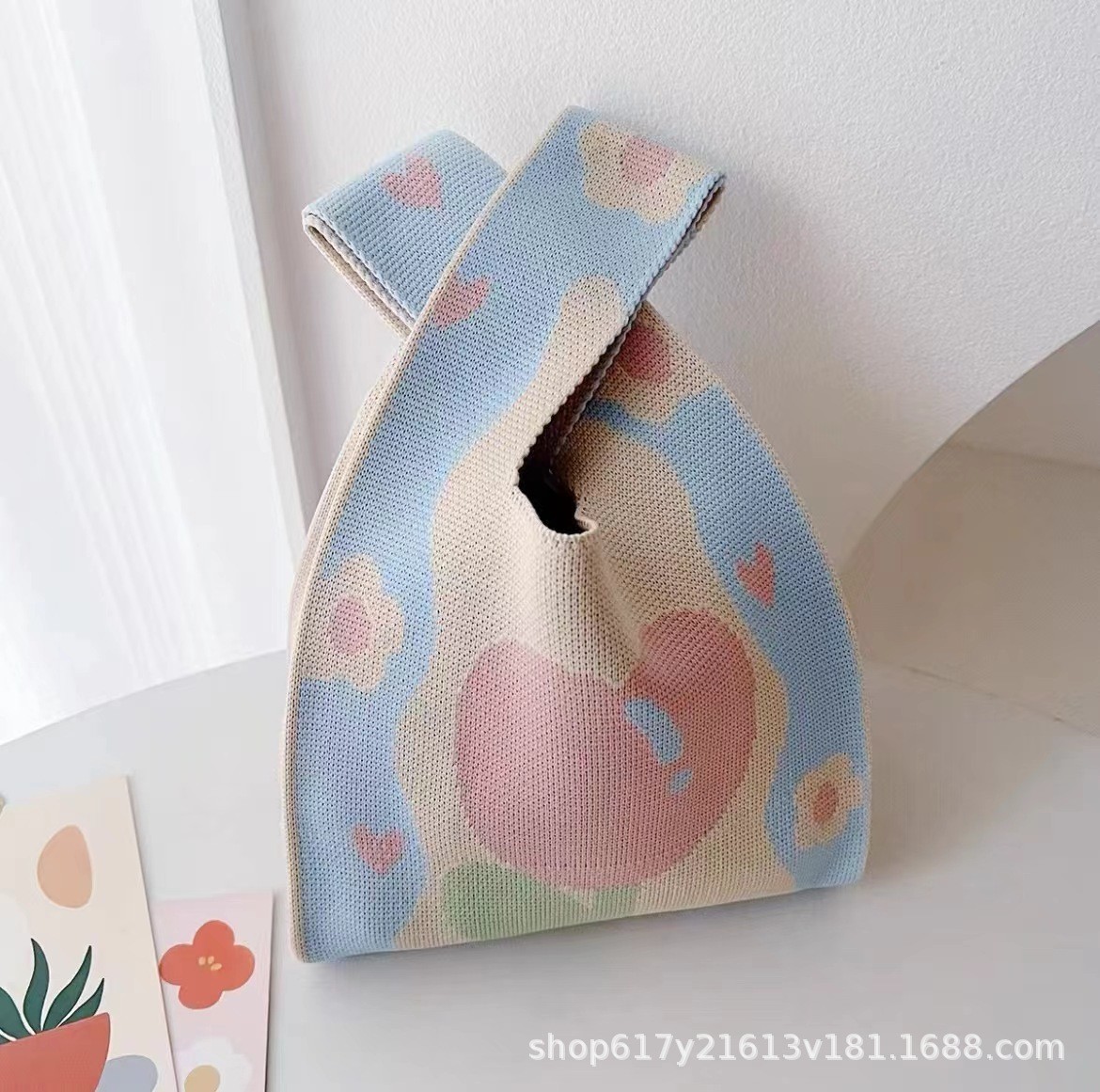 사이버 축하 현야 스타일 신선한 스타일 핸드백 휴일 여성 니트 꽃 손목 가방 결혼식 동반식 올매치스토어 가기