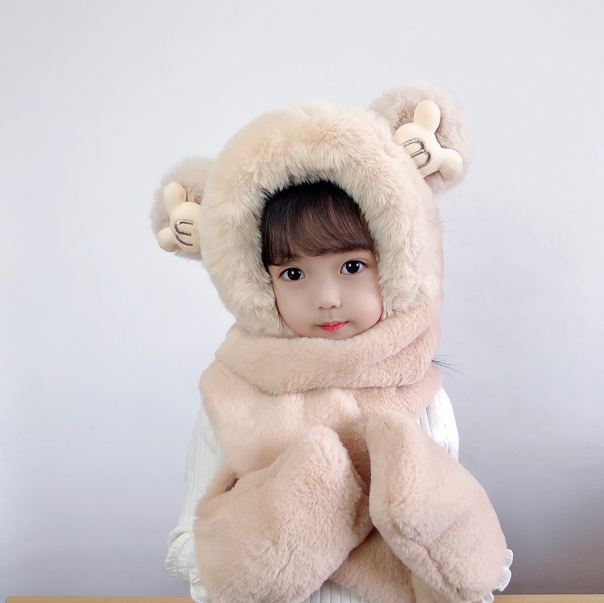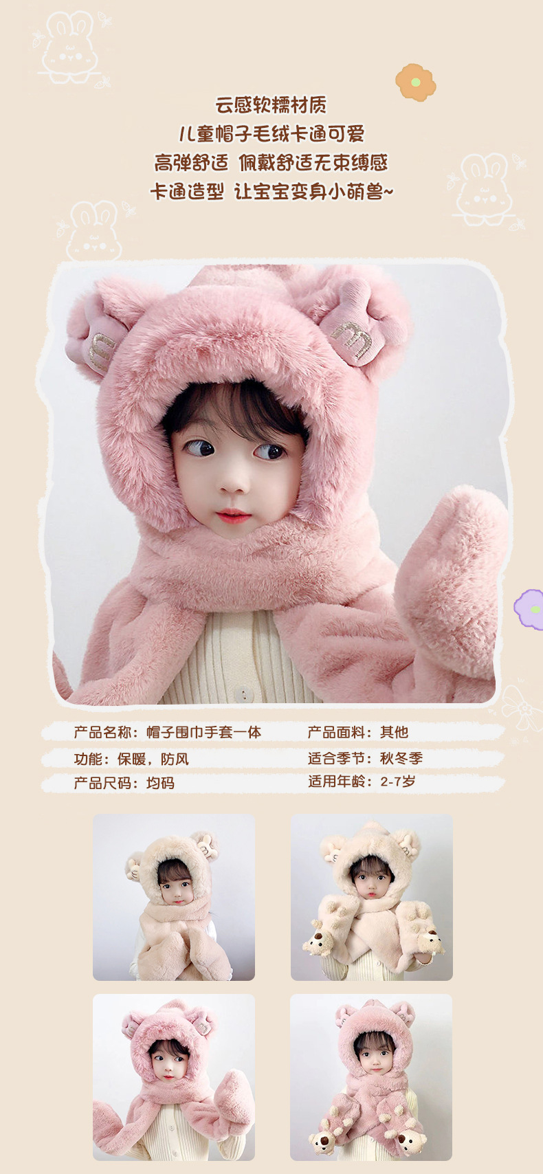 새로운 가을과 겨울 아기 어린이 귀 보호 기모 아기 모자 스카프 장갑 겨울 슈퍼 귀여운 귀여운