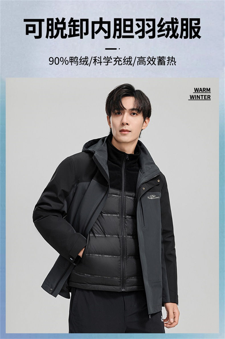 2024 두꺼운 따뜻한 남자 겨울 남자 3 대 1 테이크 오프 라이너 다운 재킷 90 덕 다운 캐주얼 컬러 블록 재킷스토어 가기