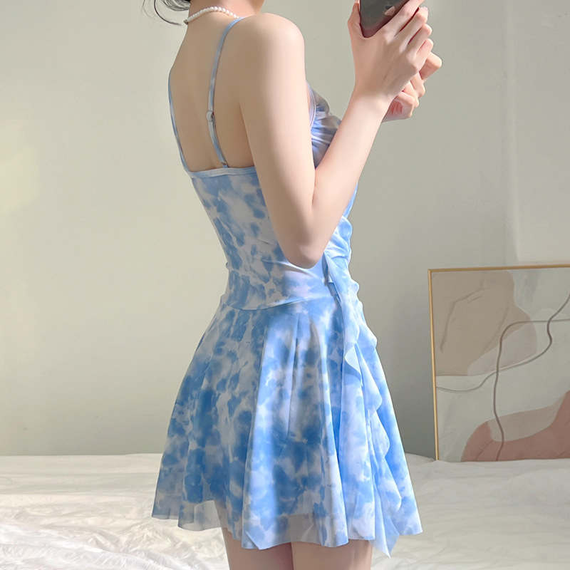 3353 국경 간 대외 무역 여성 의류 도매 동남아시아 섹시한 메쉬 인쇄 러플 백리스 멜빵 원피스 여성스토어 가기