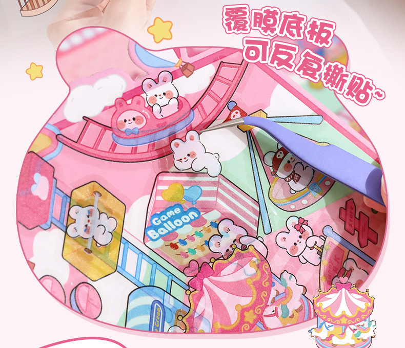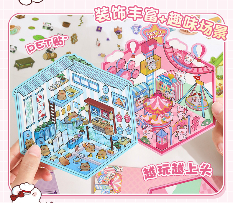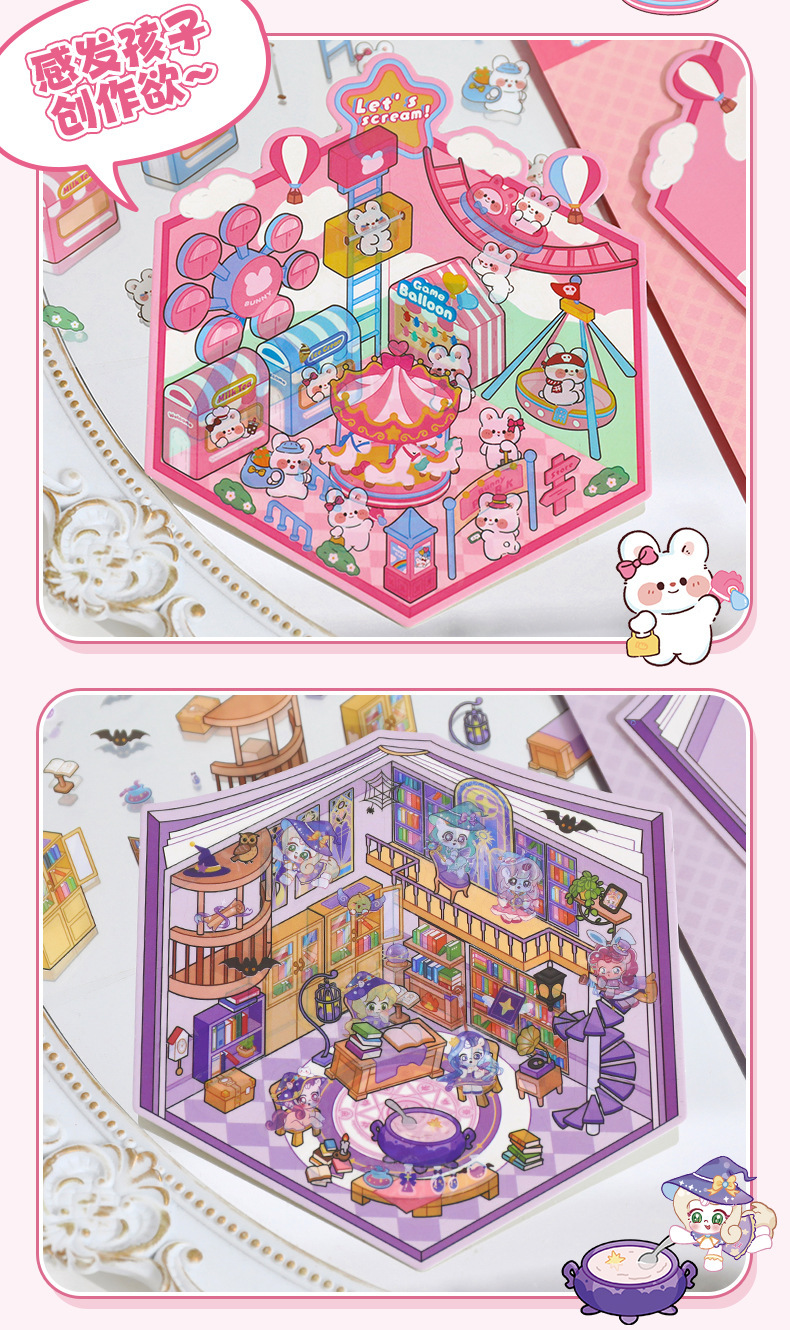 귀여운 풍경 스티커 창조적 인 만화 한국 미니어처 장면 DIY 손 계정 스티커 3D 입체 풍경 콜라주스토어 가기