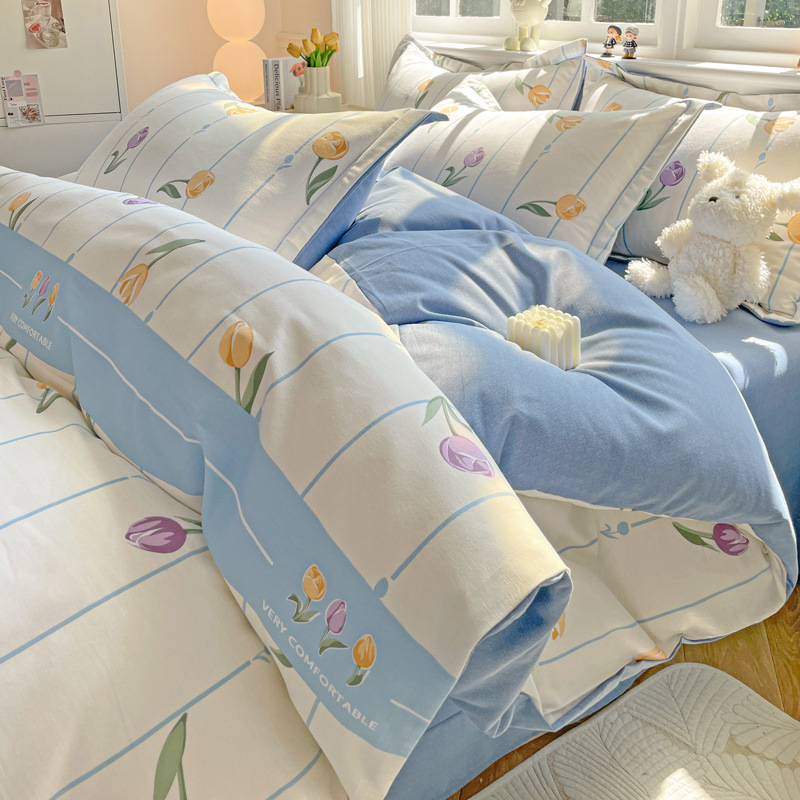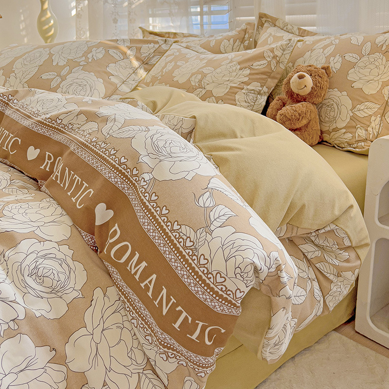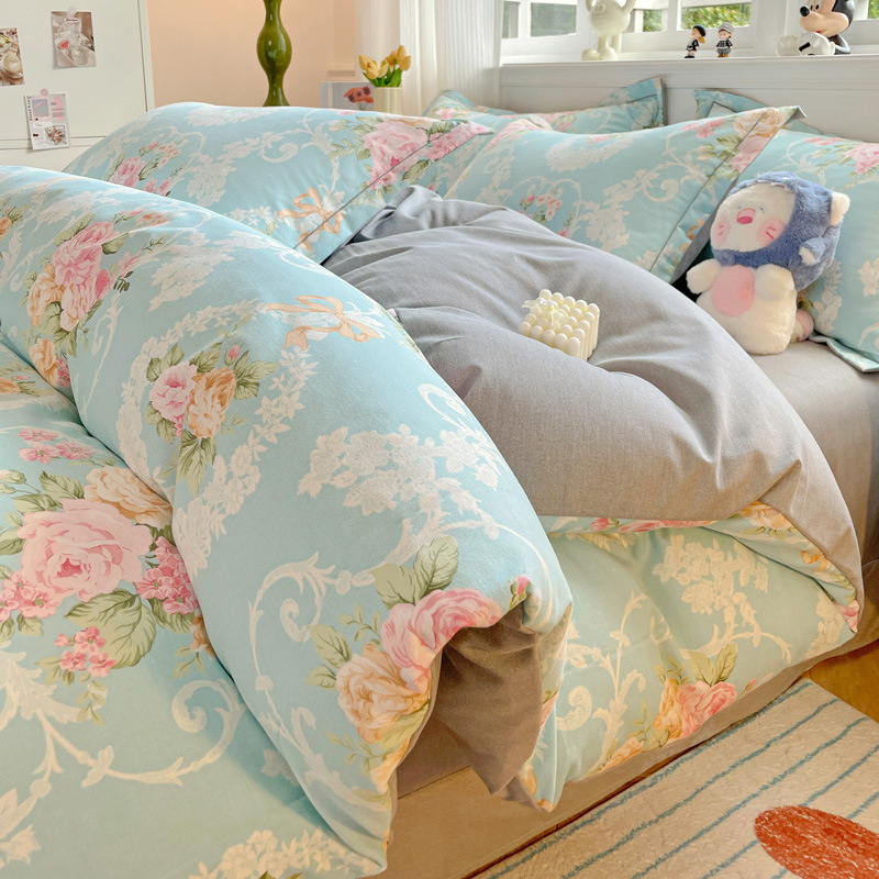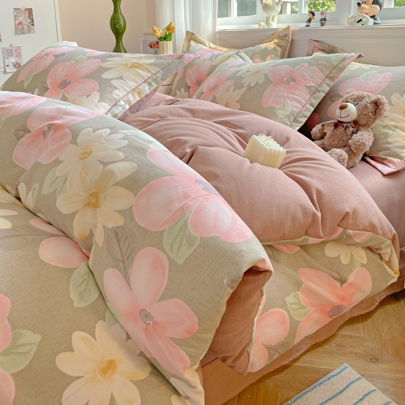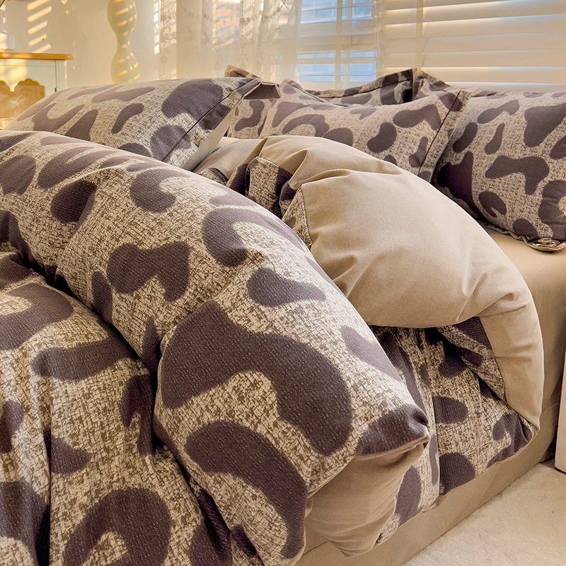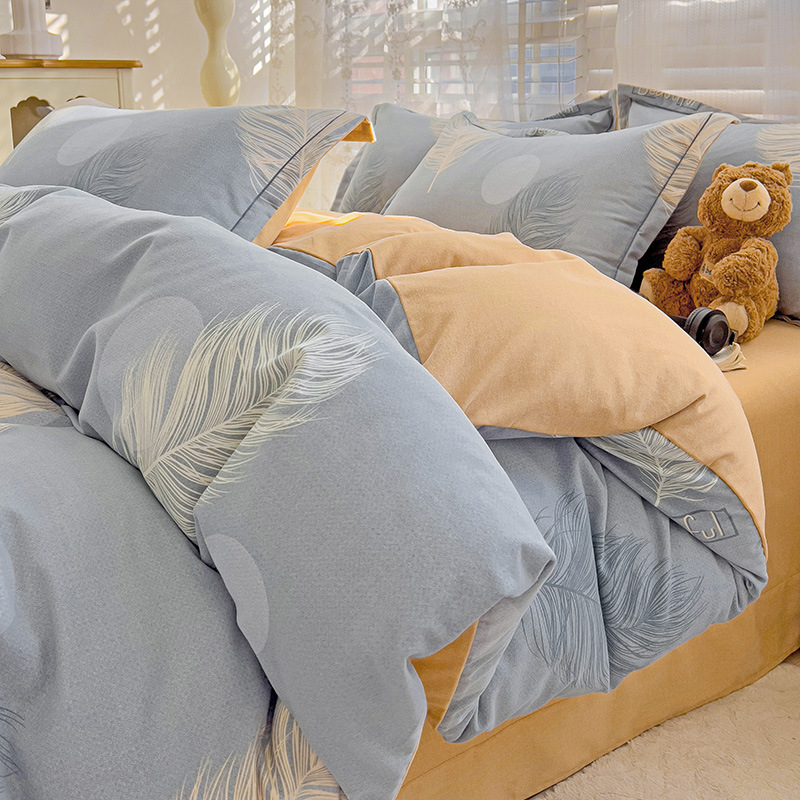 가을과 겨울 두꺼운 면화 제트 인쇄 샌딩 4 피스 면화 침대 시트 퀼트 커버 가정 기숙사 선물 도매