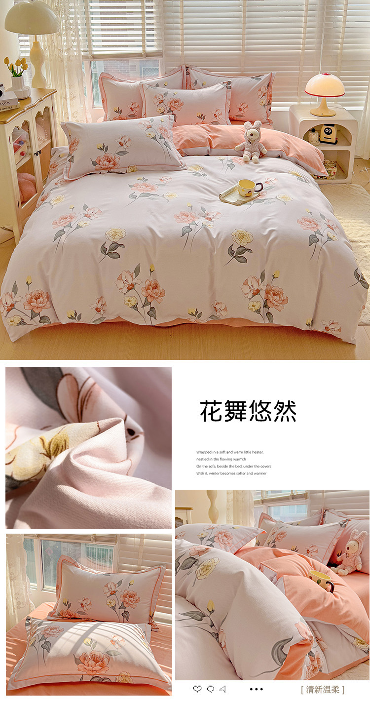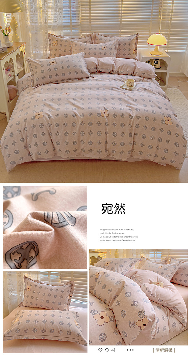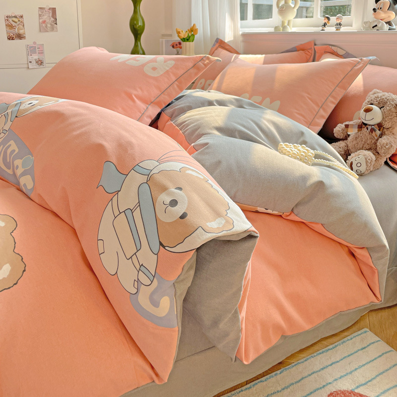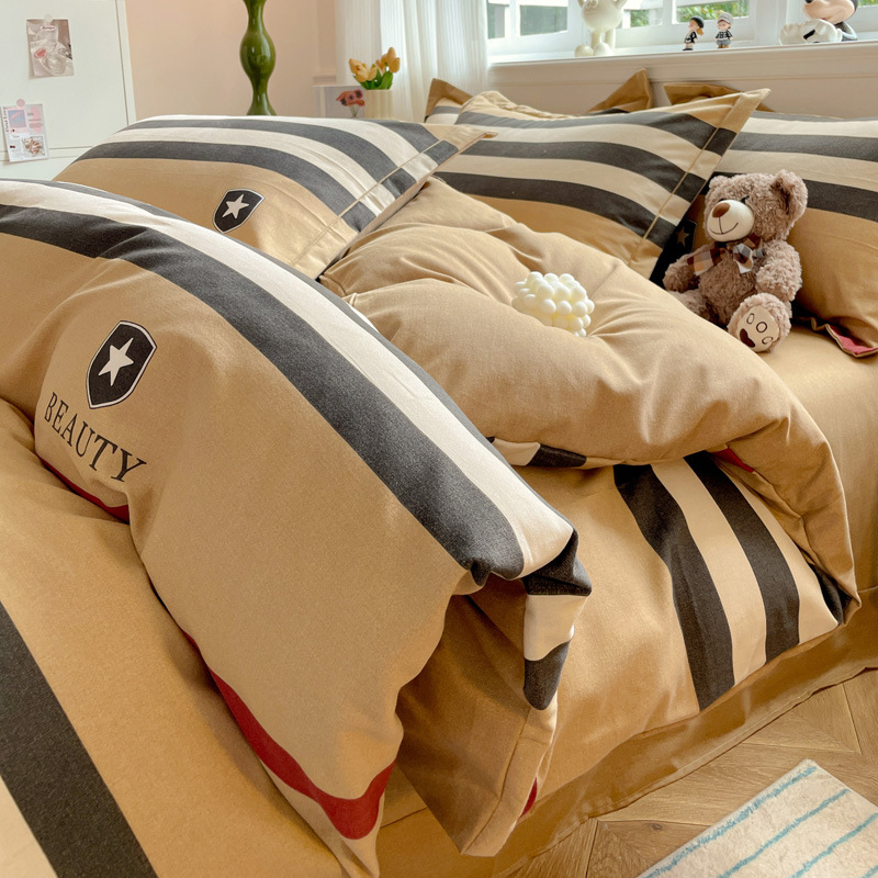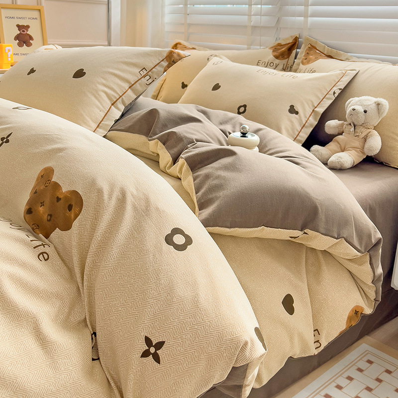 가을과 겨울 두꺼운 면화 제트 인쇄 샌딩 4 피스 면화 침대 시트 퀼트 커버 가정 기숙사 선물 도매