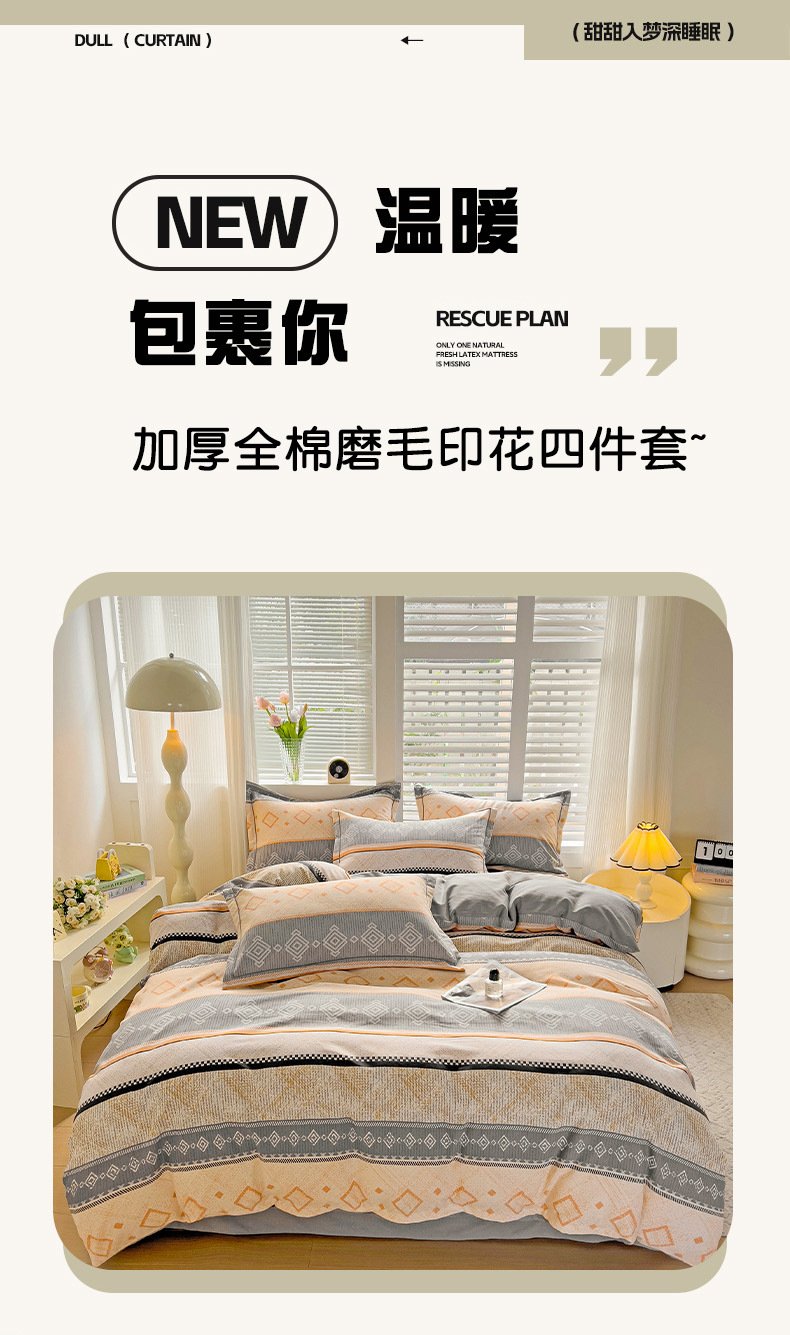 가을과 겨울 두꺼운 면화 제트 인쇄 샌딩 4 피스 면화 침대 시트 퀼트 커버 가정 기숙사 선물 도매스토어 가기