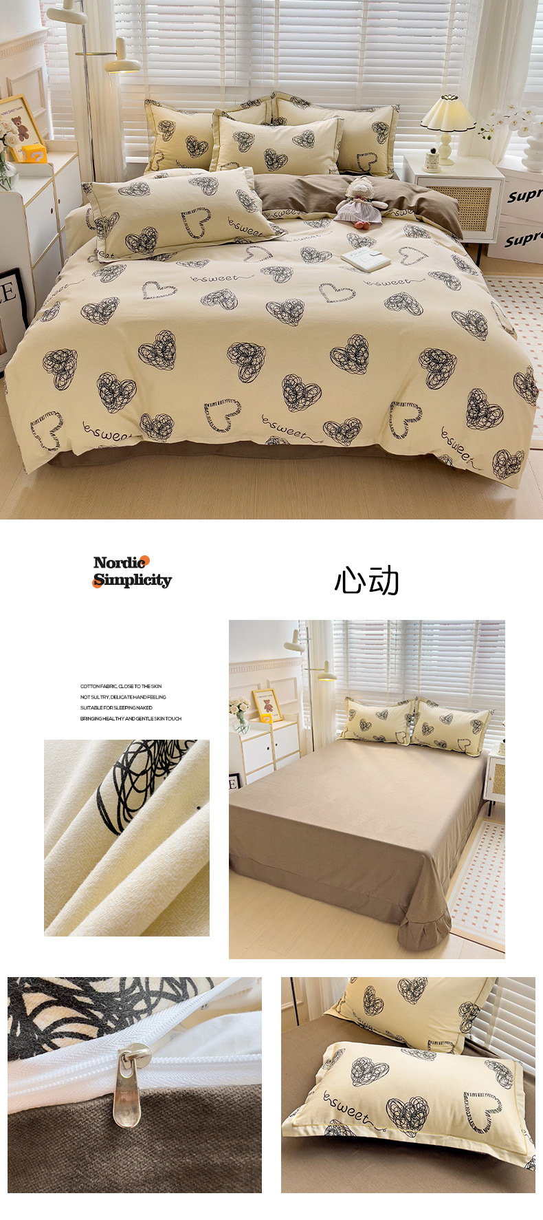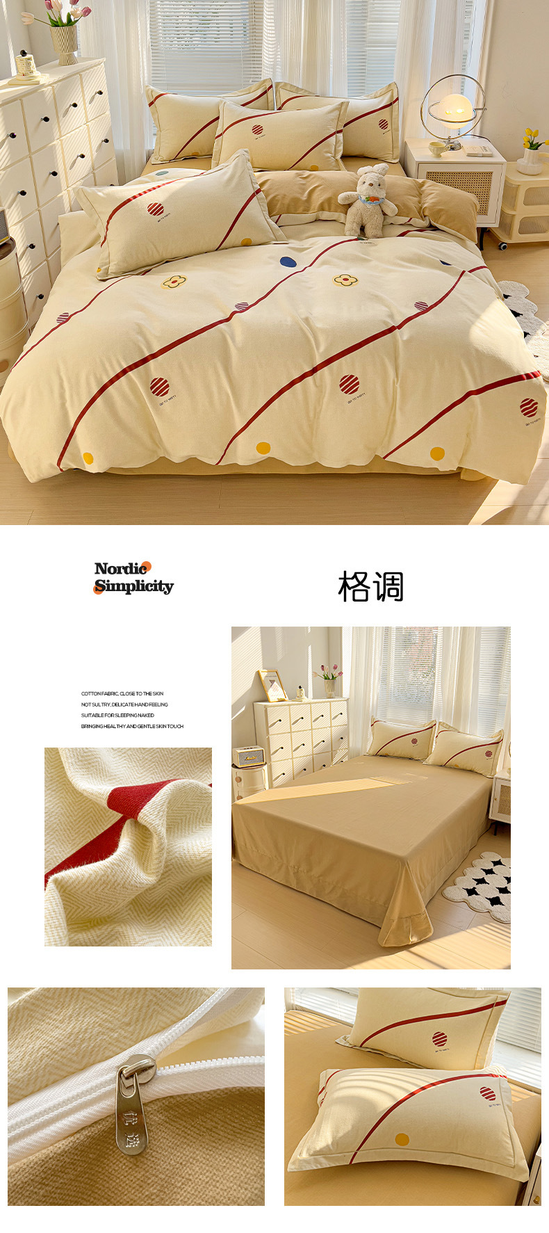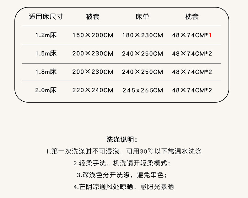 • 1.5m 침대 시트 4종 세트(이불커버 200*230cm, 침대 시트 245*250cm)