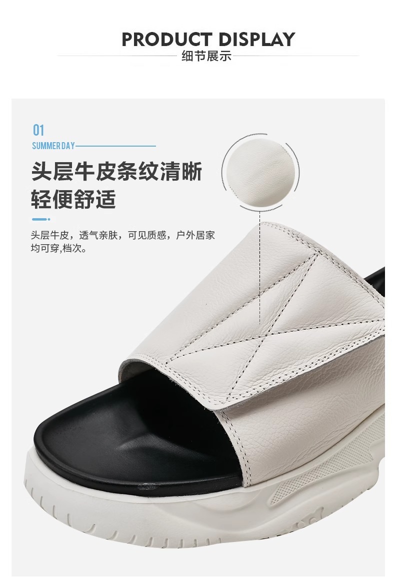 정품 가죽 슬리퍼 남성용 아웃웨어 패션 캐주얼 플랫폼 여름 샌들 및 슬리퍼 남성 슬리퍼 베트남 통기성 비치 슈즈