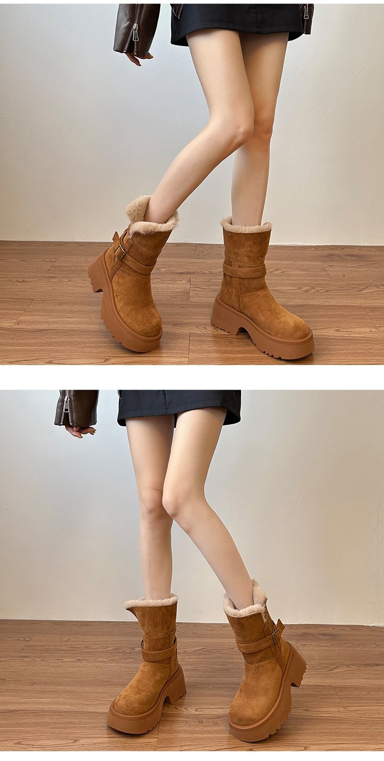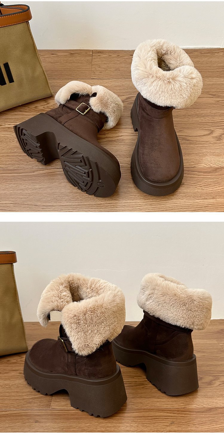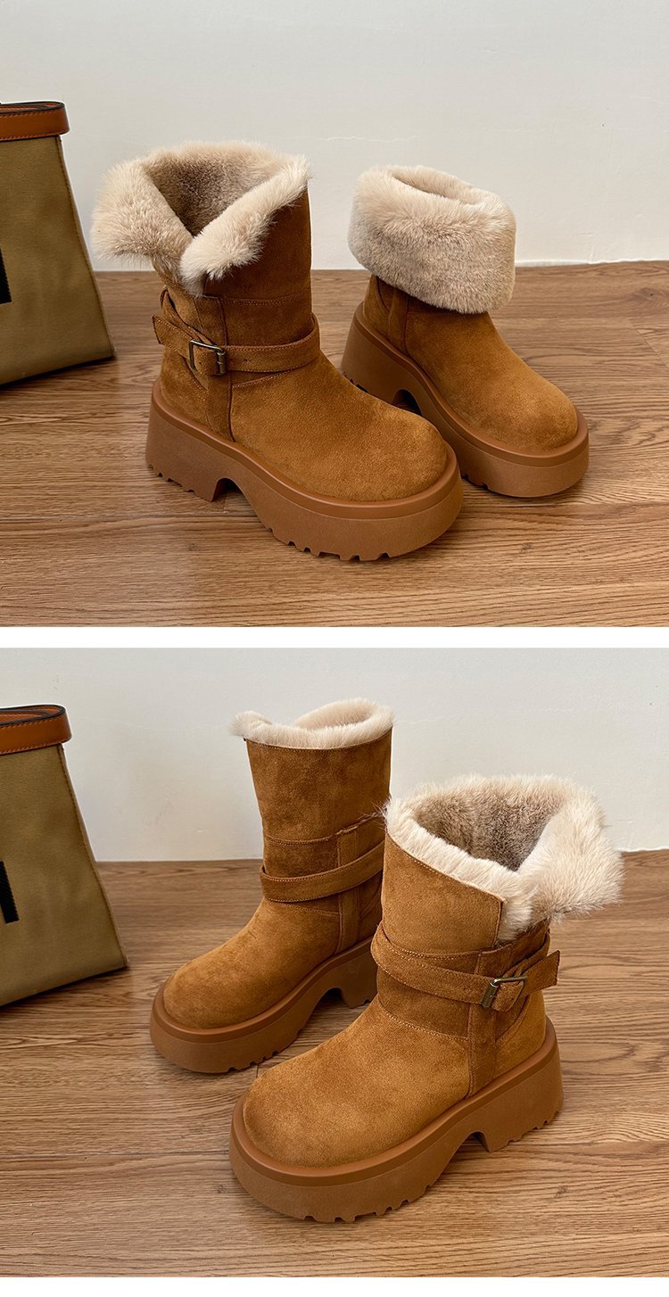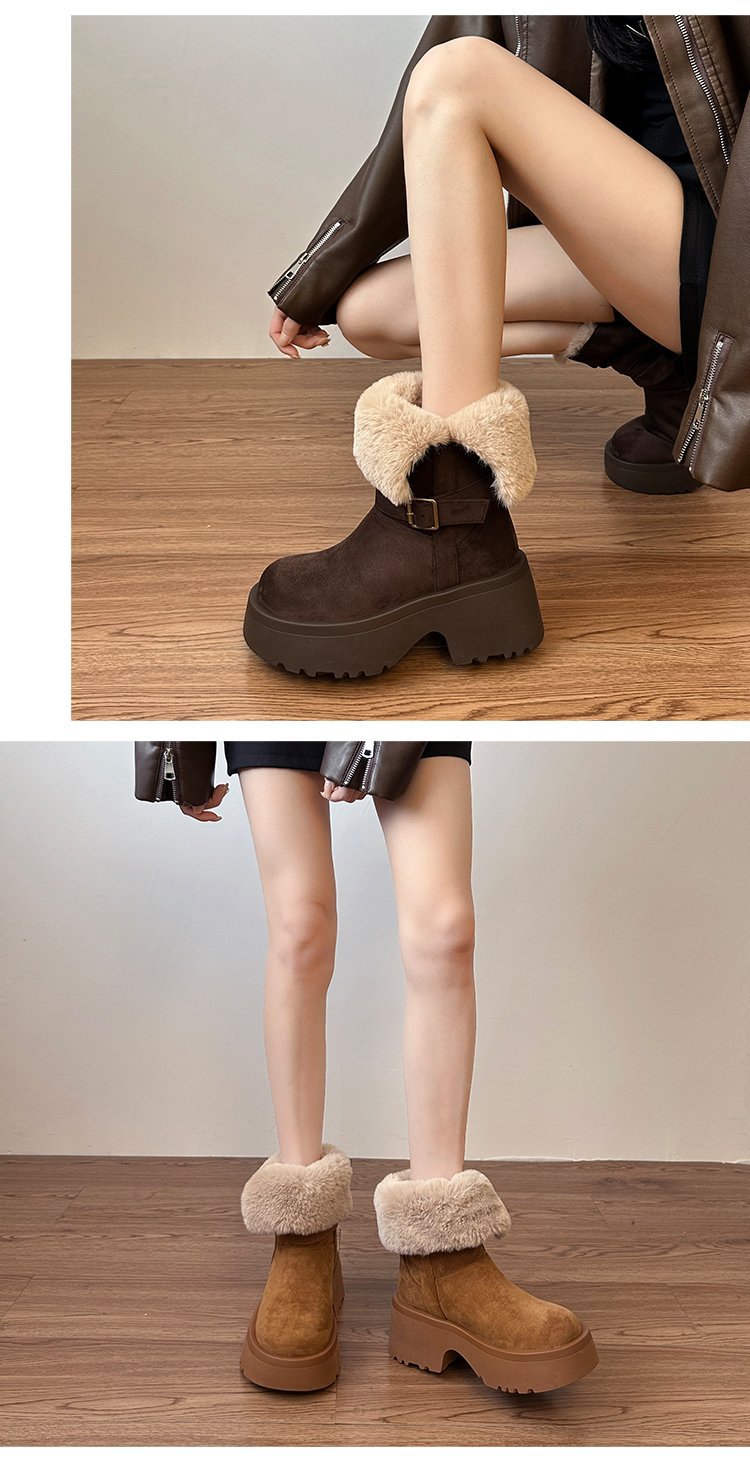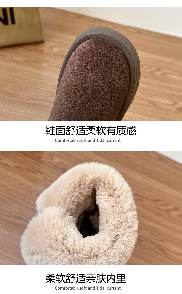 2024 새로운 두꺼운 밑창 스노우 부츠 겨울 새로운 라운드 헤드 조커 기모 두꺼운 투웨어 스웨이드 짧은 튜브 스노우 코튼스토어 가기