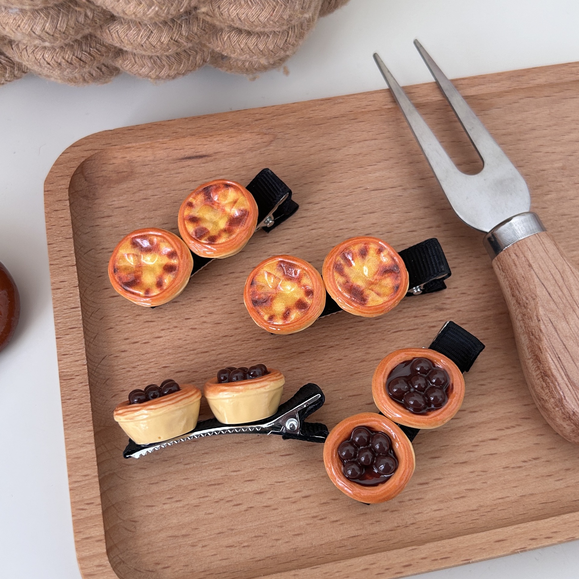 재미있는 시뮬레이션 달걀 타르트 음식 놀이 머리핀 귀여운 재미있는 미니어처 디저트 헤어 액세서리 헤어핀 포르투갈 달걀 타르트 오리 지폐 클립