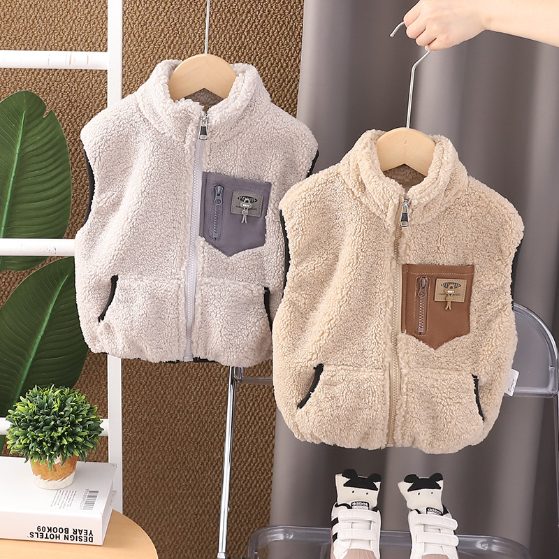 아기 스웨터 조끼 2024 가을과 겨울 새로운 소년 소녀 외국 스타일 기모 양복 조끼 어린이 따뜻한 겉옷스토어 가기