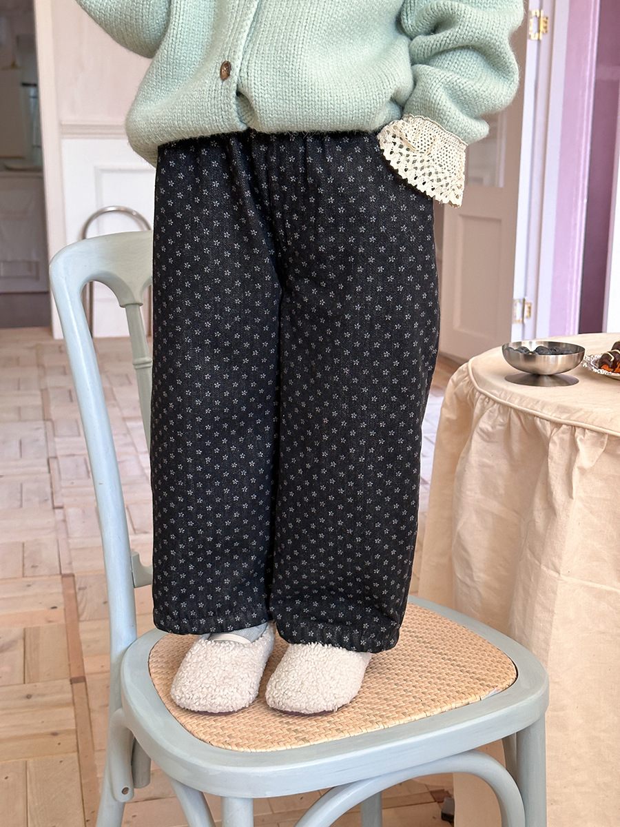 재고정리【플리스 안감】겨울 바지 아동복 여아 유아 한국 스타일 캐주얼 패셔너블 꽃무늬 전면 프린트 데님 팬츠스토어 가기