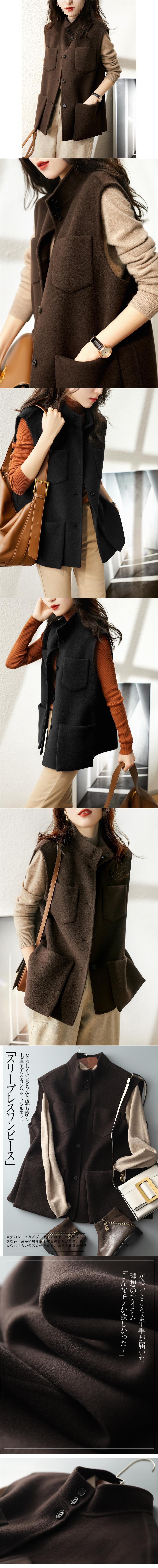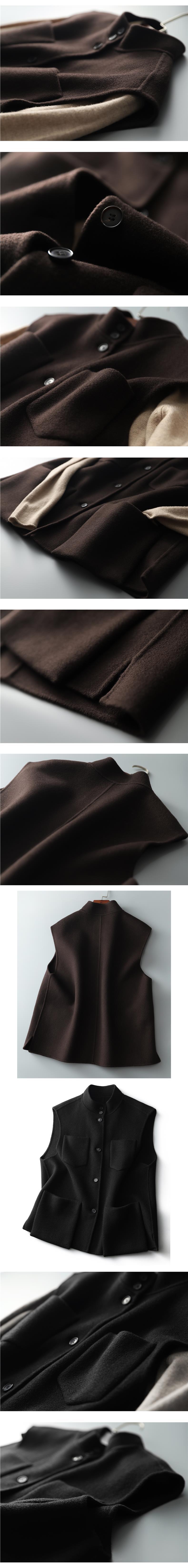 대외 무역 빅 플러스 사이즈 여성 캐시미어 트위드 조끼 가을과 겨울 느슨한 스탠드 칼라 양면 트위드 조끼 코트