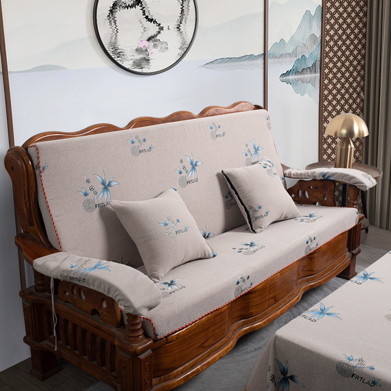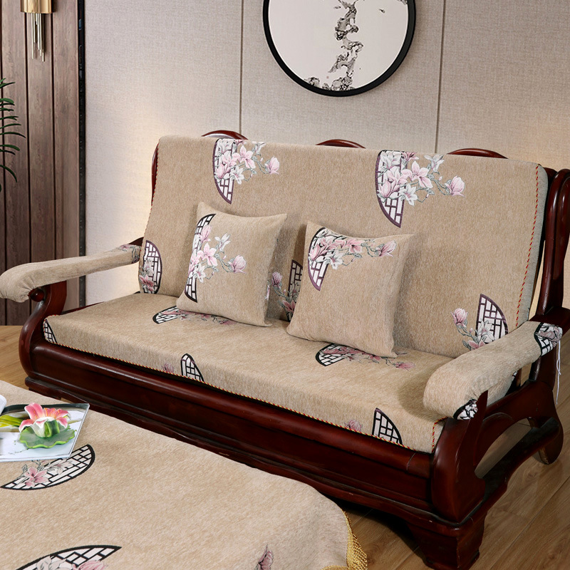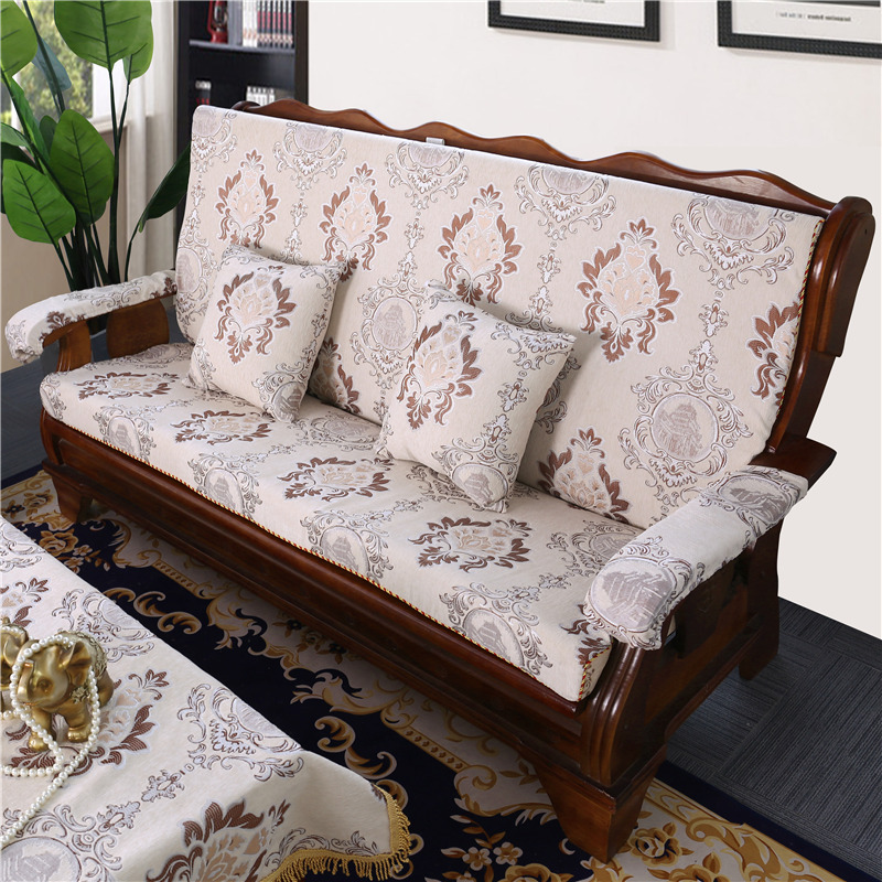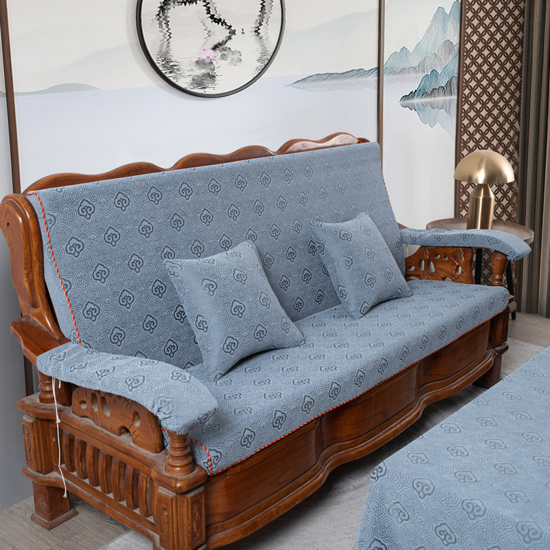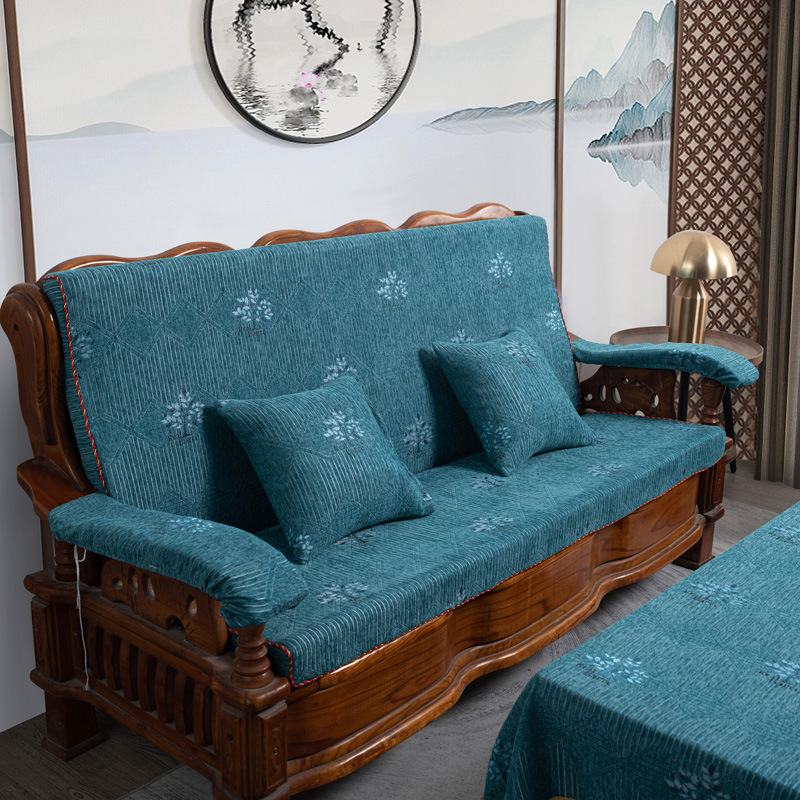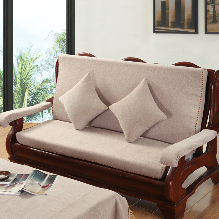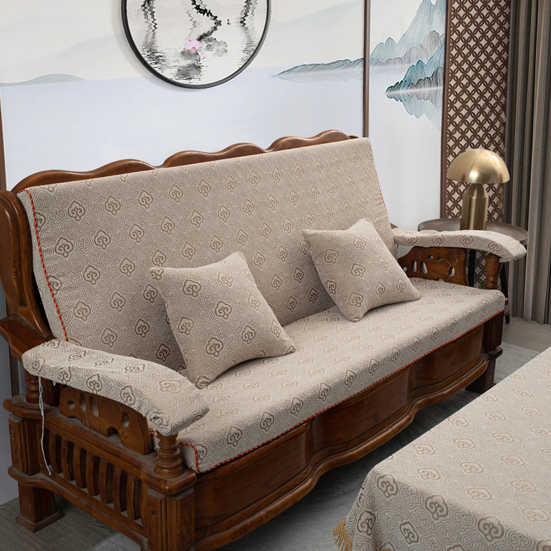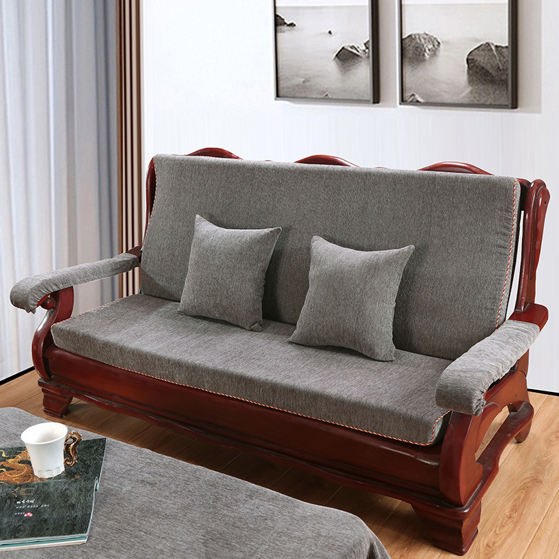 두꺼운 마호가니 단단한 나무 머리 등받이 중국 연방 의자 봄과 가을 미끄럼 방지 스폰지가있는 구식 3 인용 소파 쿠션