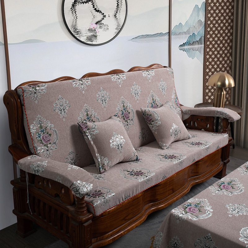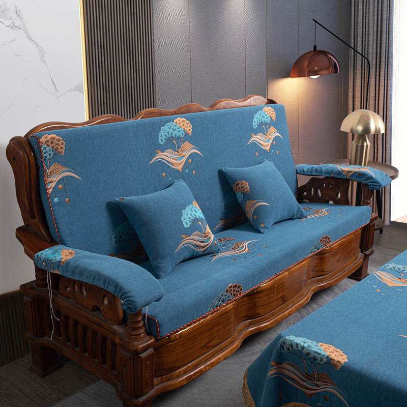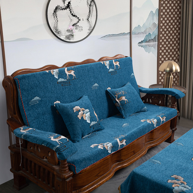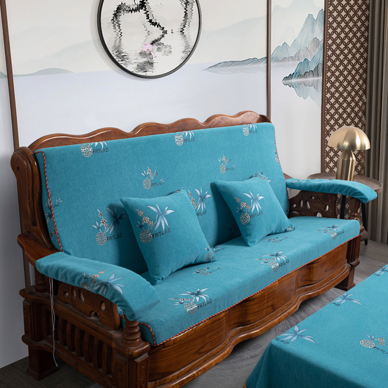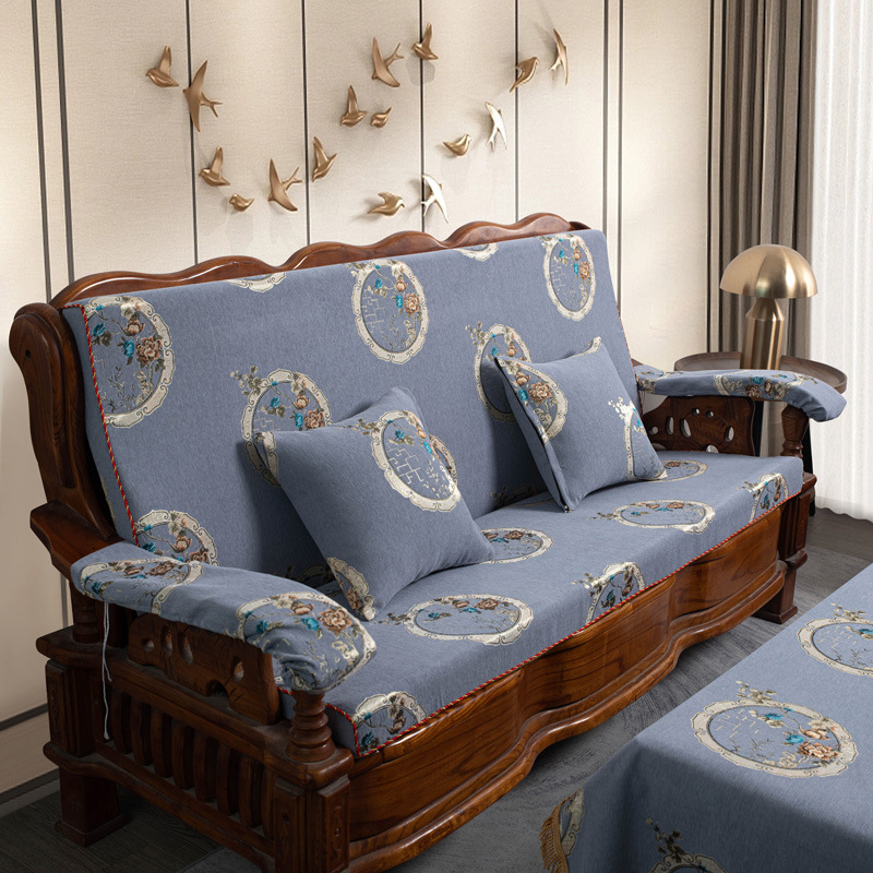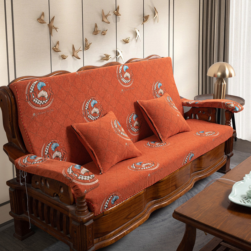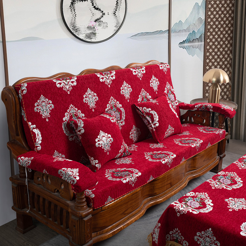두꺼운 마호가니 단단한 나무 머리 등받이 중국 연방 의자 봄과 가을 미끄럼 방지 스폰지가있는 구식 3 인용 소파 쿠션