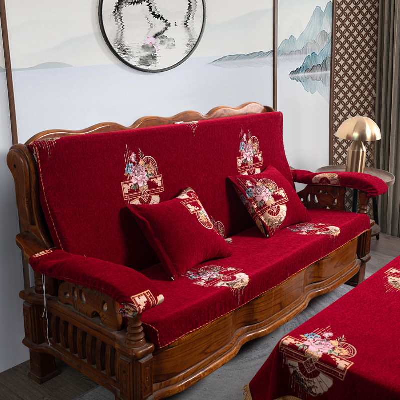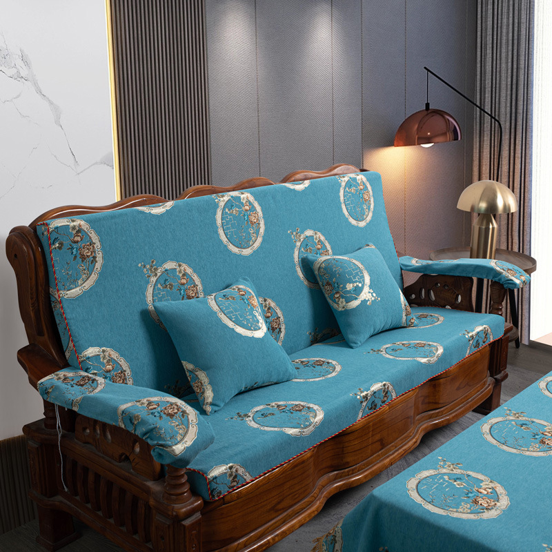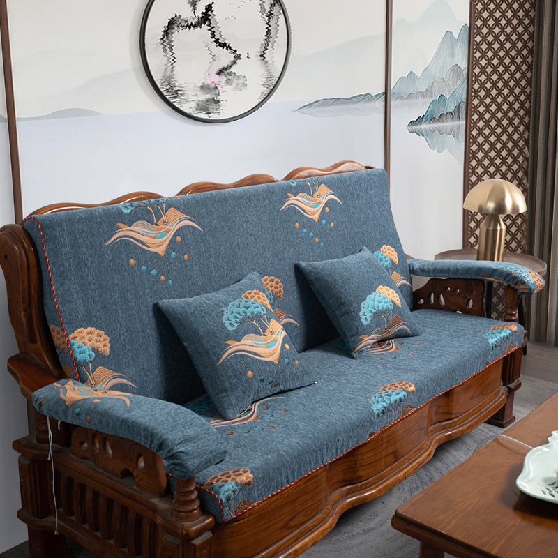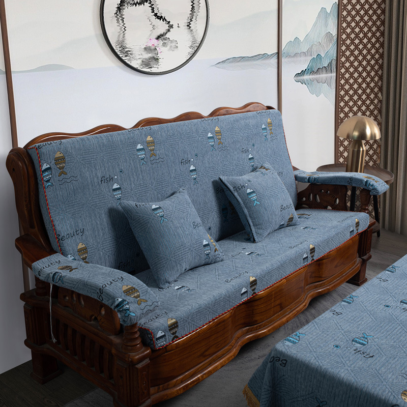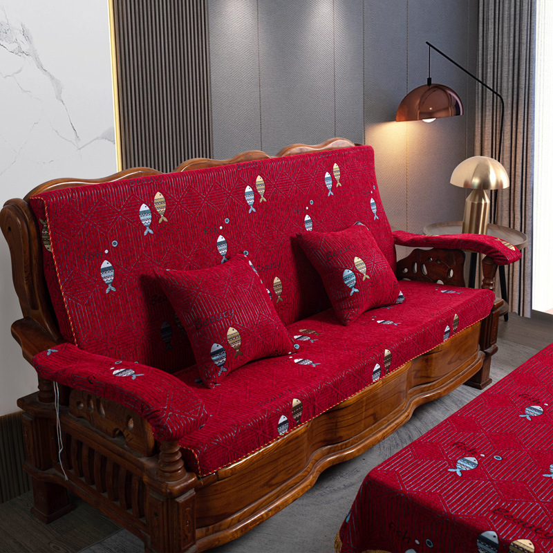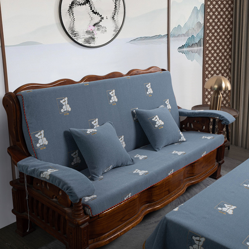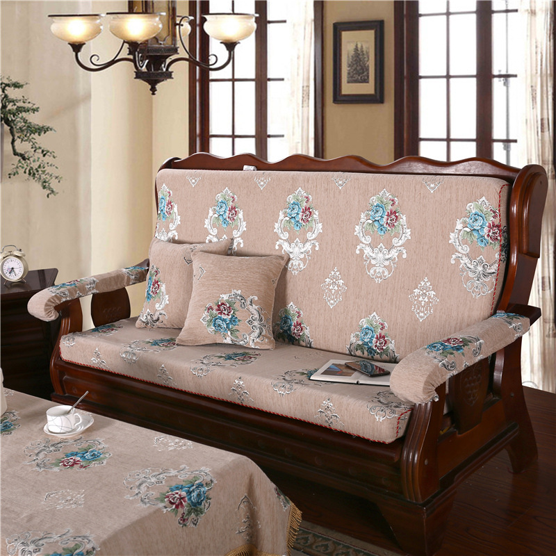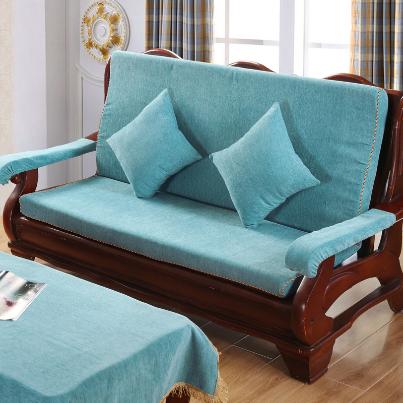 두꺼운 마호가니 단단한 나무 머리 등받이 중국 연방 의자 봄과 가을 미끄럼 방지 스폰지가있는 구식 3 인용 소파 쿠션