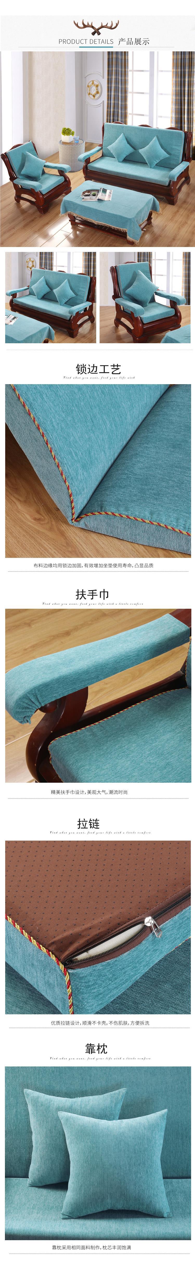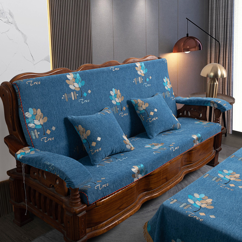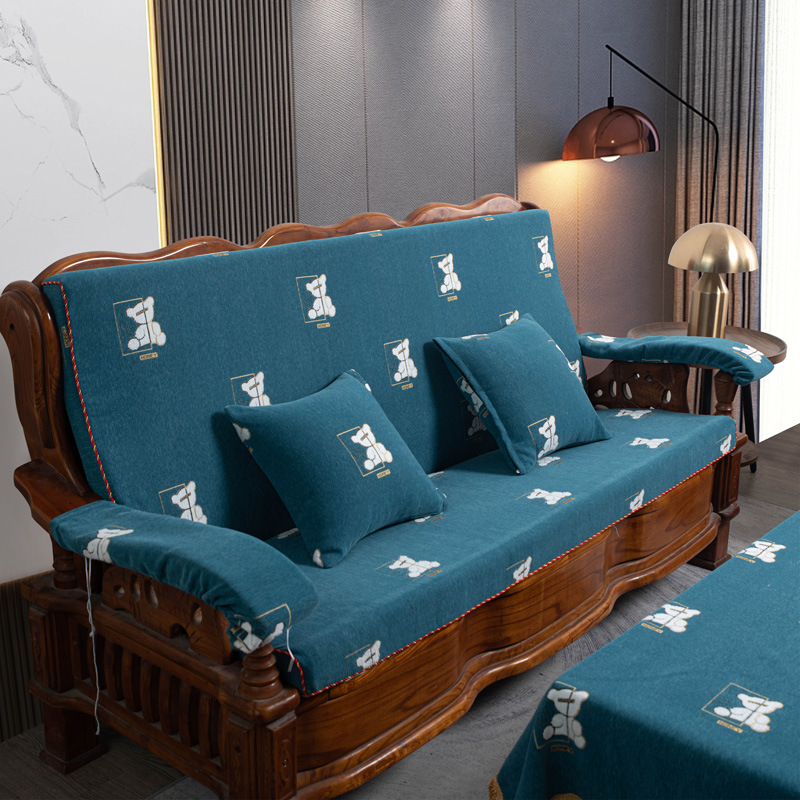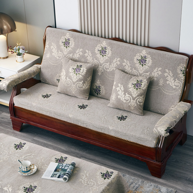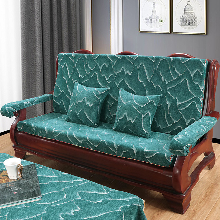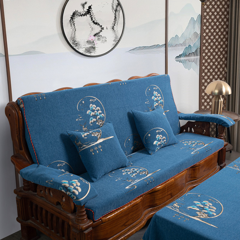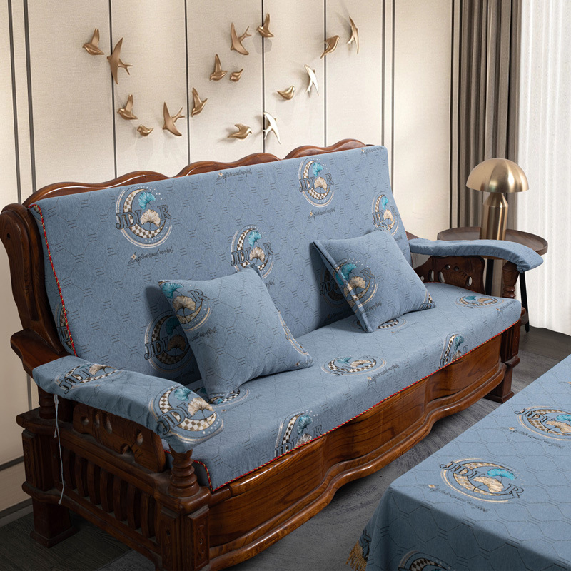 두꺼운 마호가니 단단한 나무 머리 등받이 중국 연방 의자 봄과 가을 미끄럼 방지 스폰지가있는 구식 3 인용 소파 쿠션
